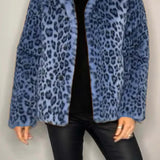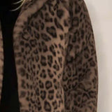 Full Size Leopard Furry Collared Neck Long Sleeve Coat