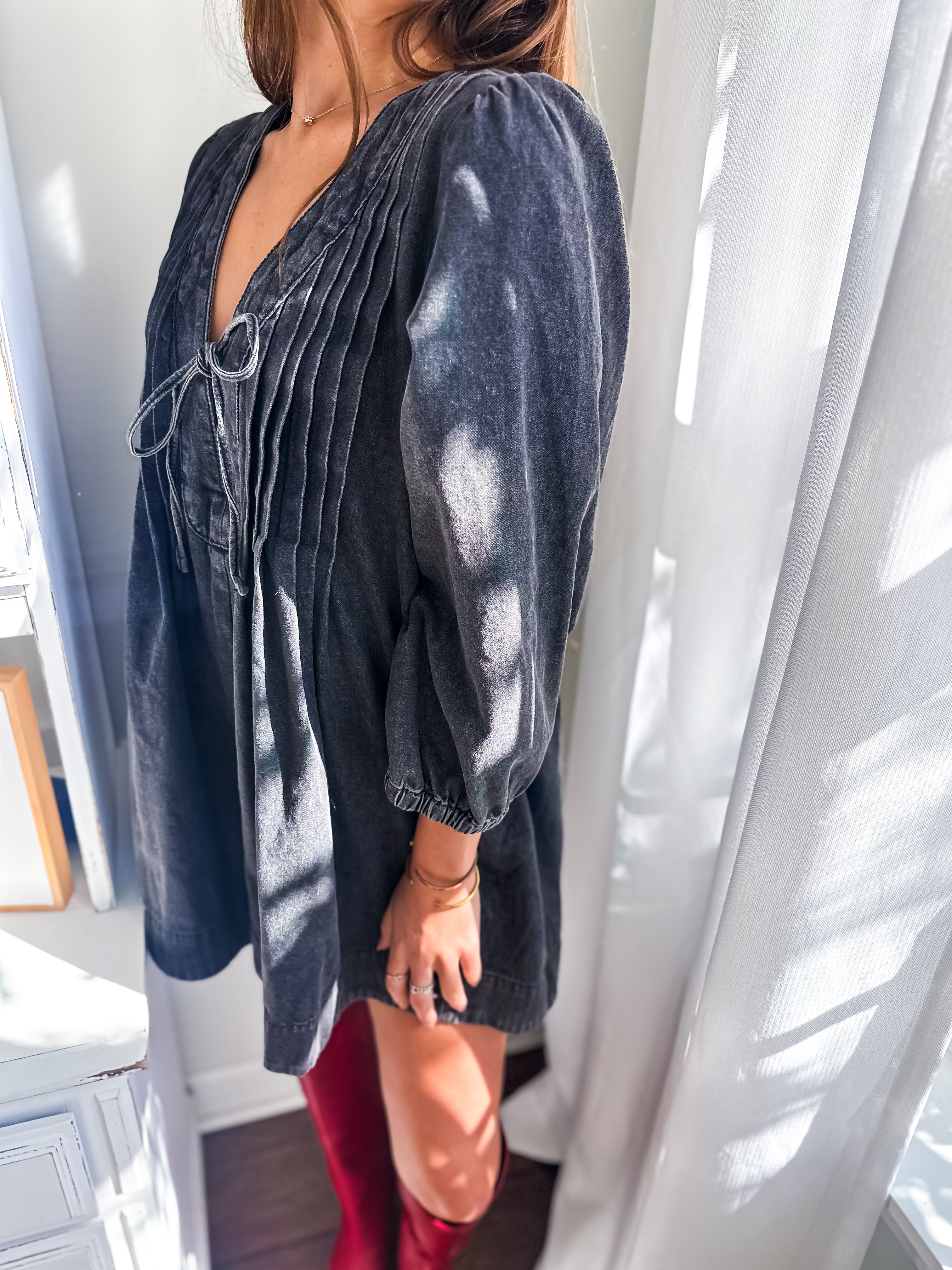 -Deep v-neck with string tie