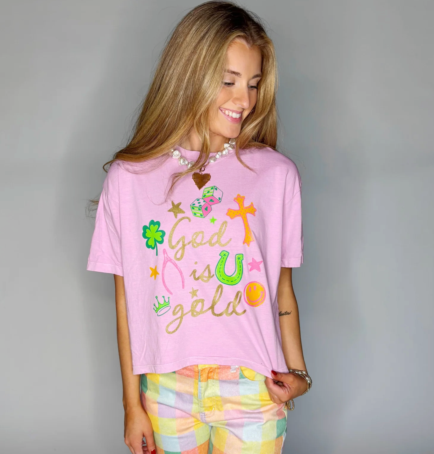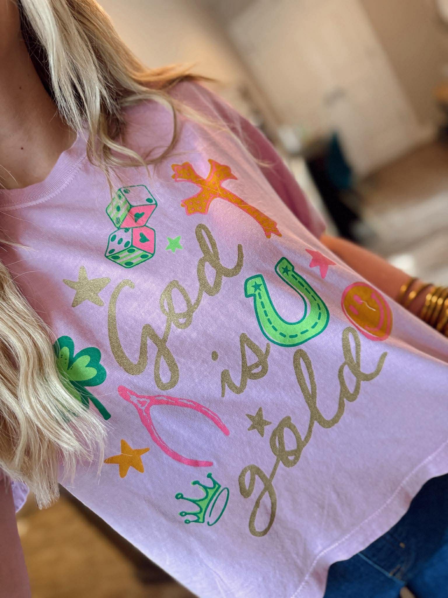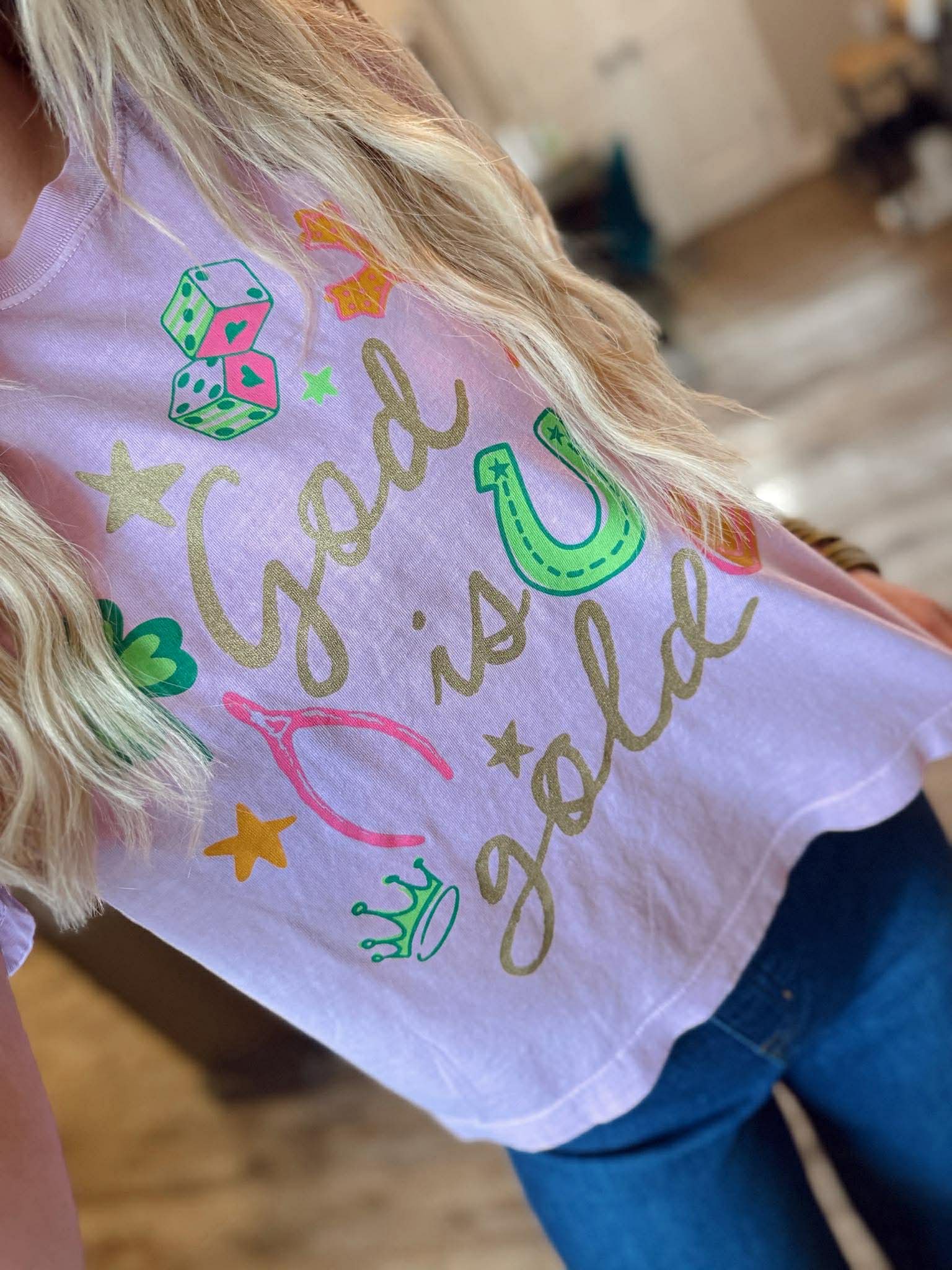 God is Gold Crop Tee - Pink