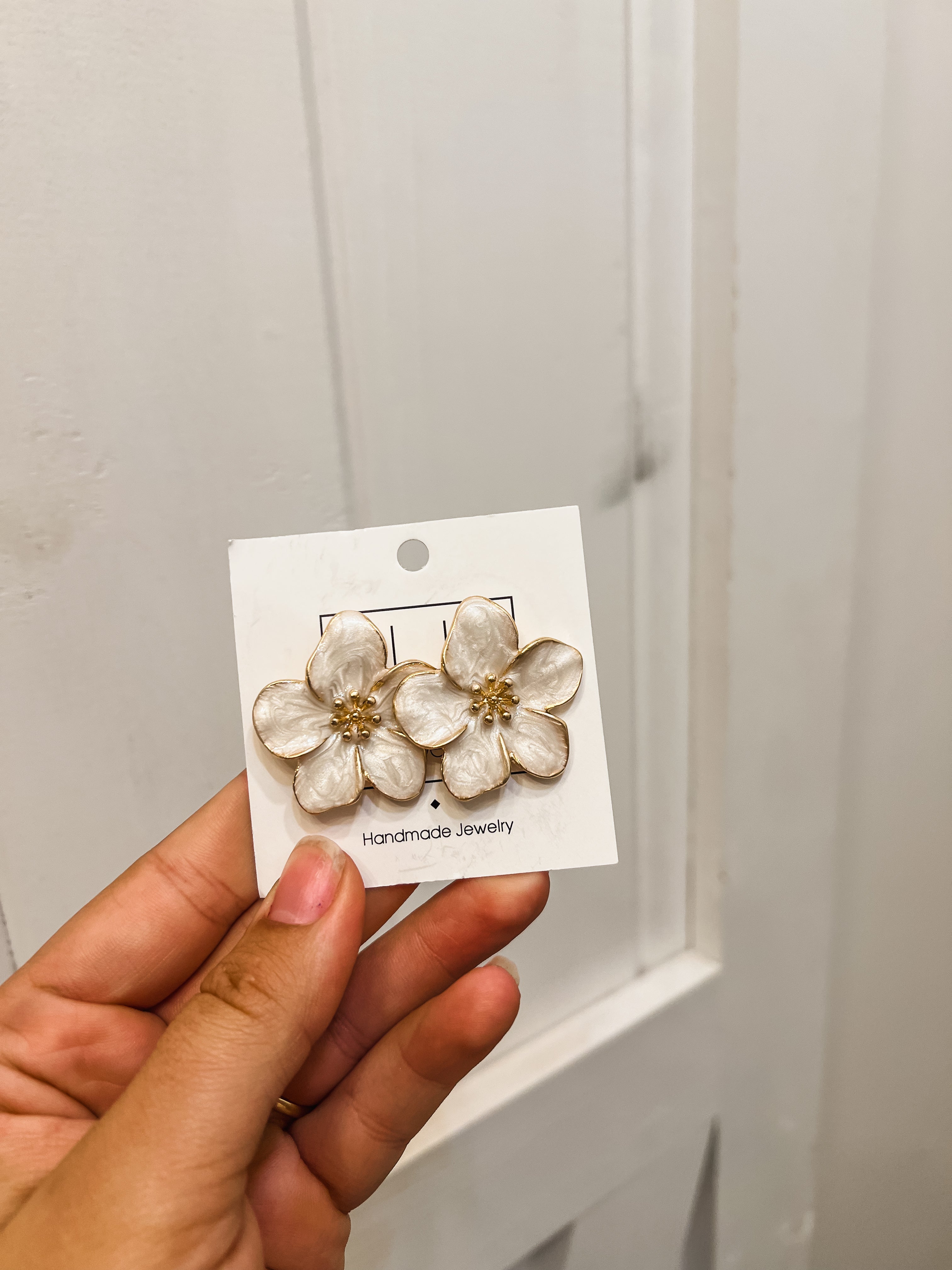 Medium size flower stud earring with a creamy, marble look to it through out the petals.