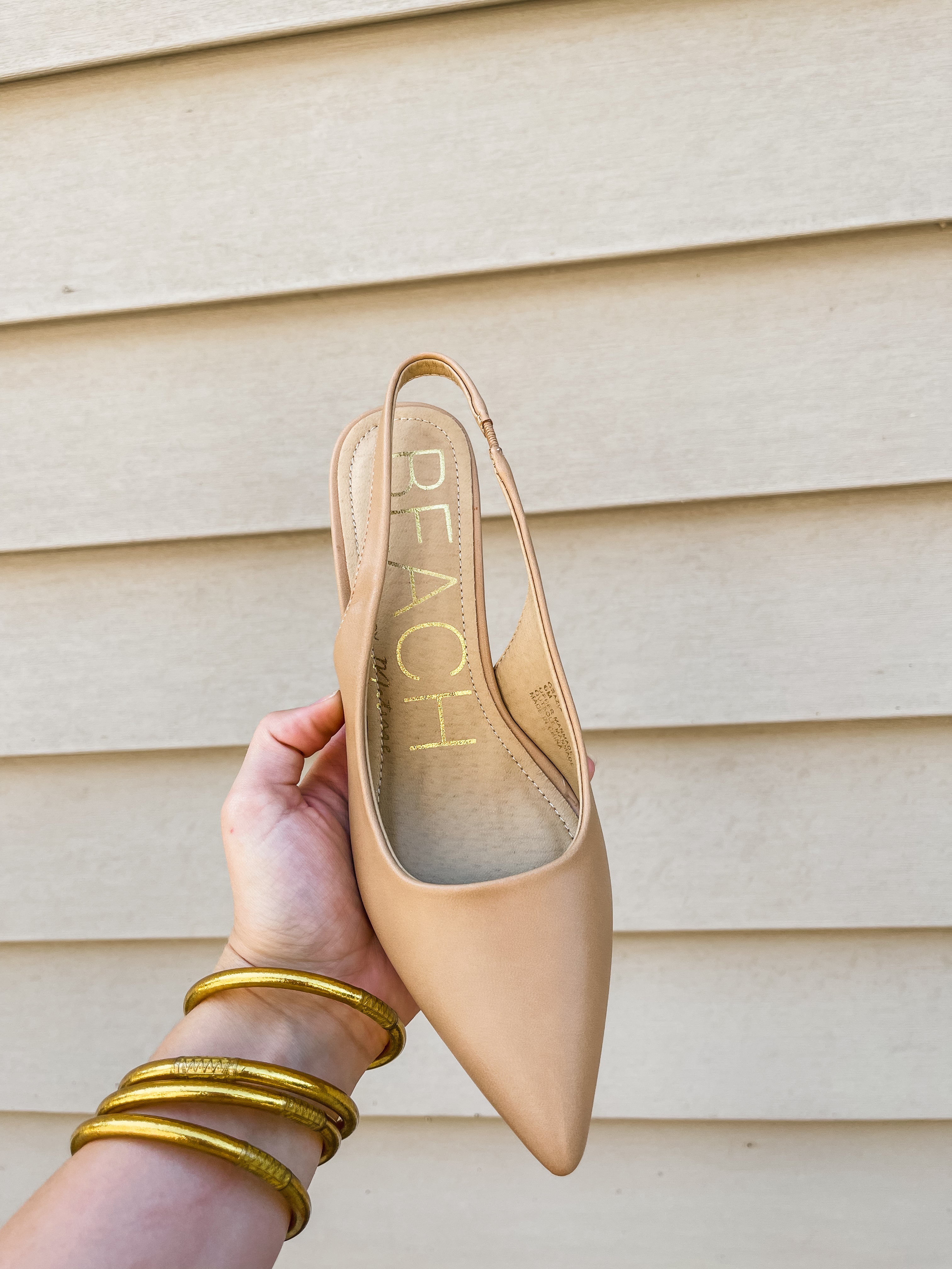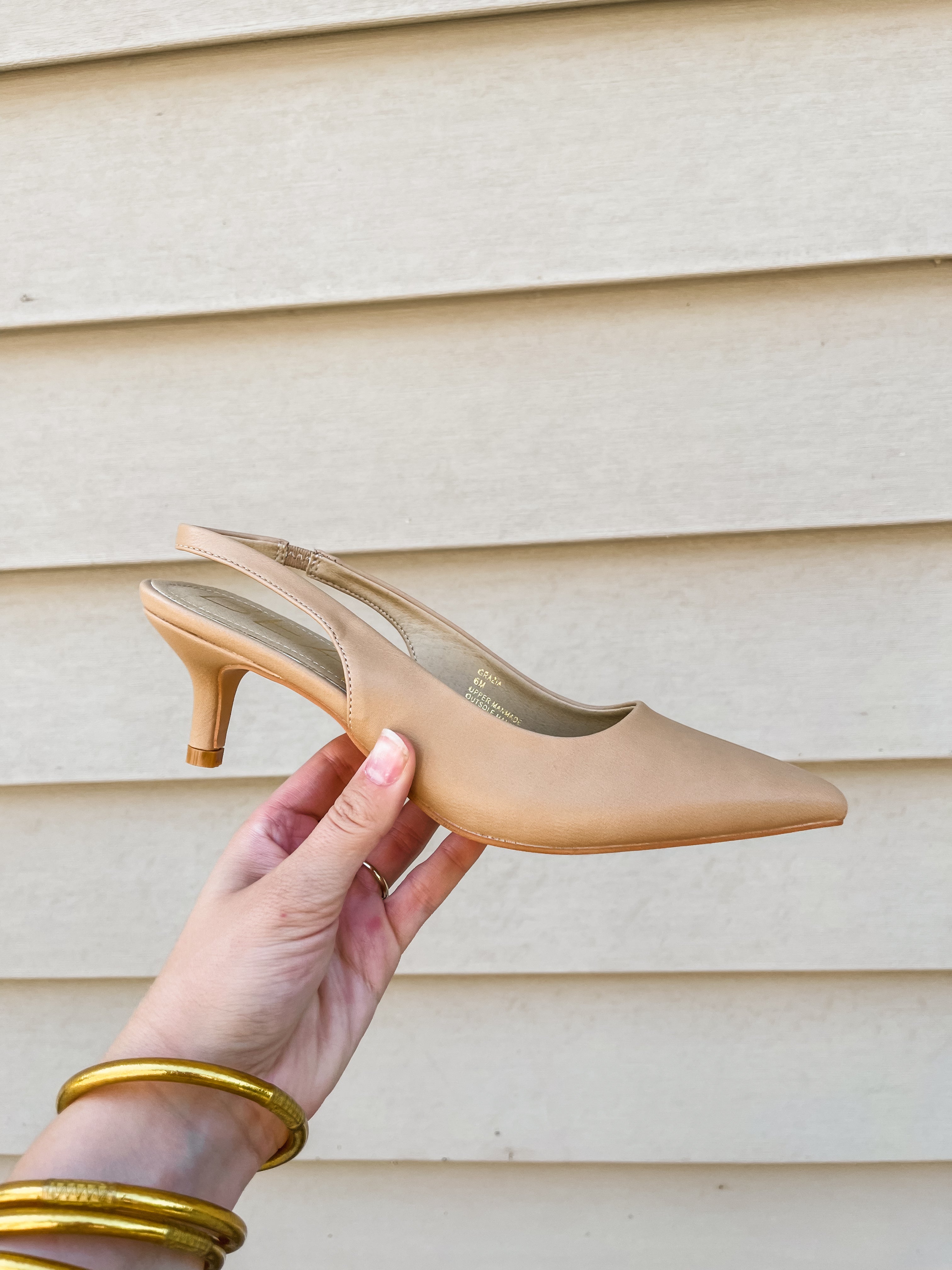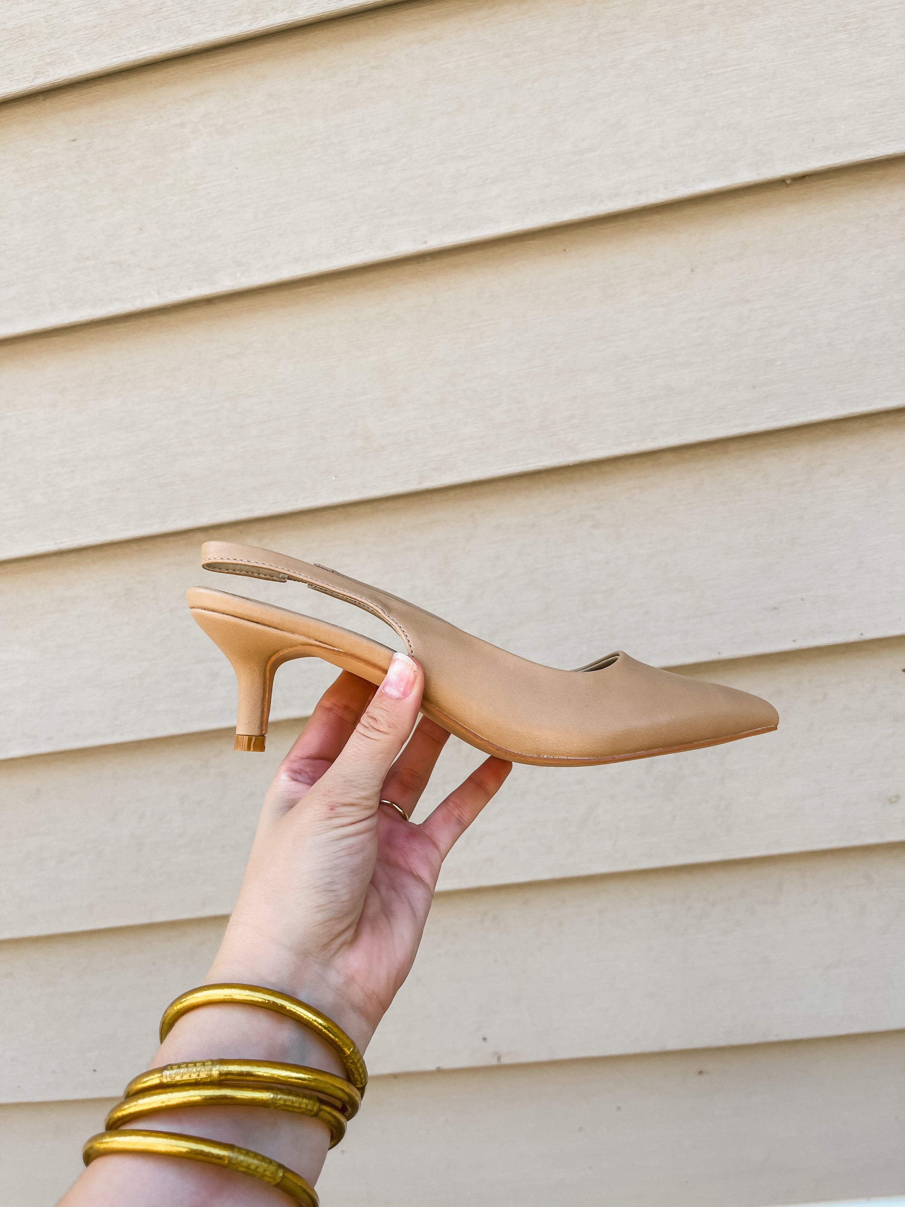 - Vegan slingback kitten heel.