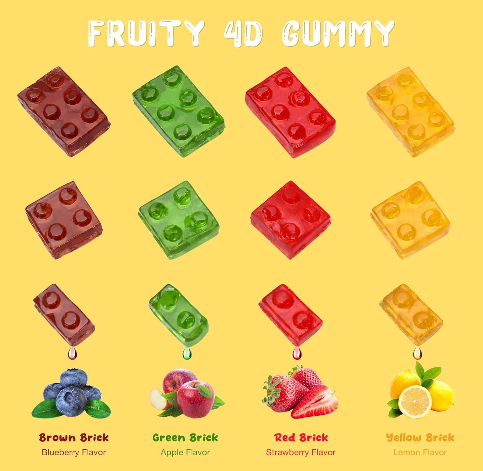 - CLASSICAL BRICK: Our gummy blocks are party-perfect and double as charming cupcake toppers. Available in 2-hole, 4-hole, and 6-hole 4D blocks gummy varieties, they add a timeless touch to any occasion.