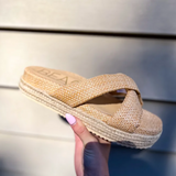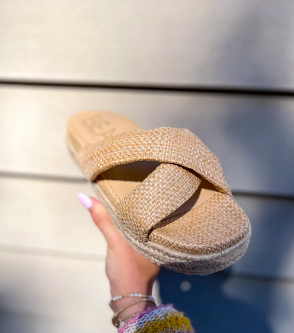 Slight platform tan slip on sandal. these are aigret natural shoe and can pair so easily with all your summer outfits. dress these up or down for a casual summer day, or even to dinner.