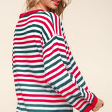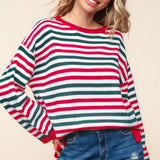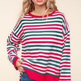 Haptics Full Size Striped Contrast Side Slit Knit Top