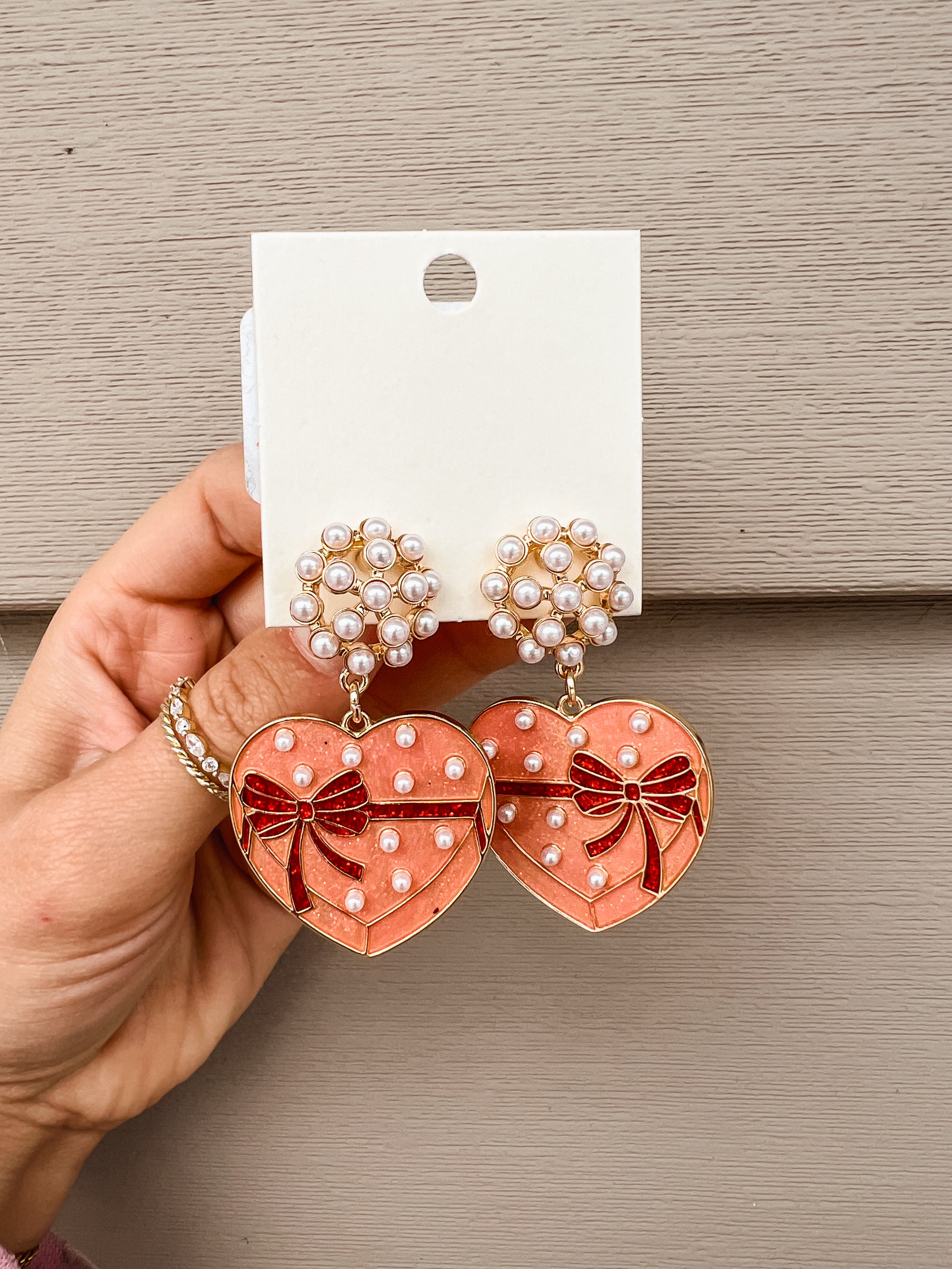 Heart Chocolate Box Earrings - Pink - Final Sale