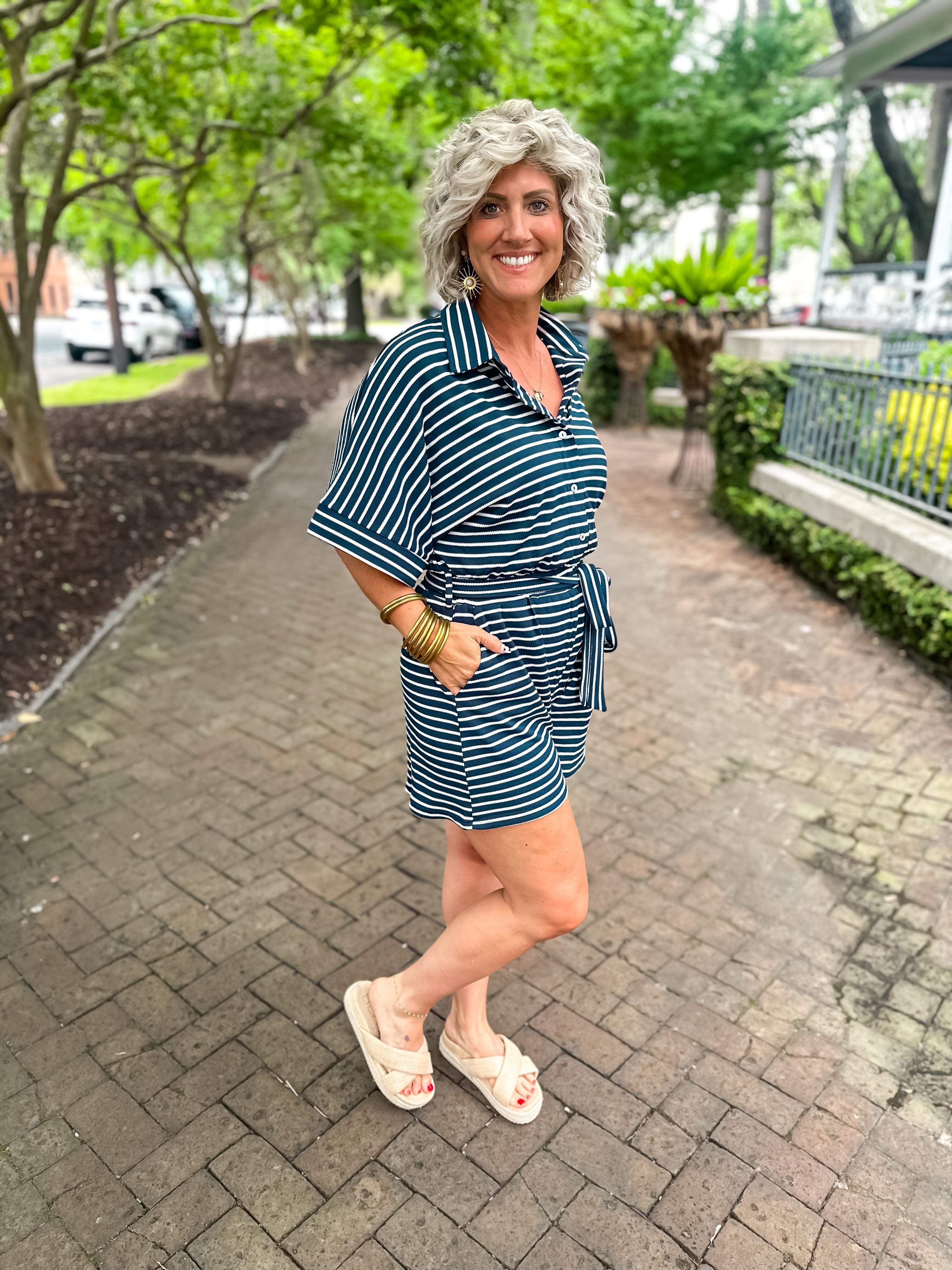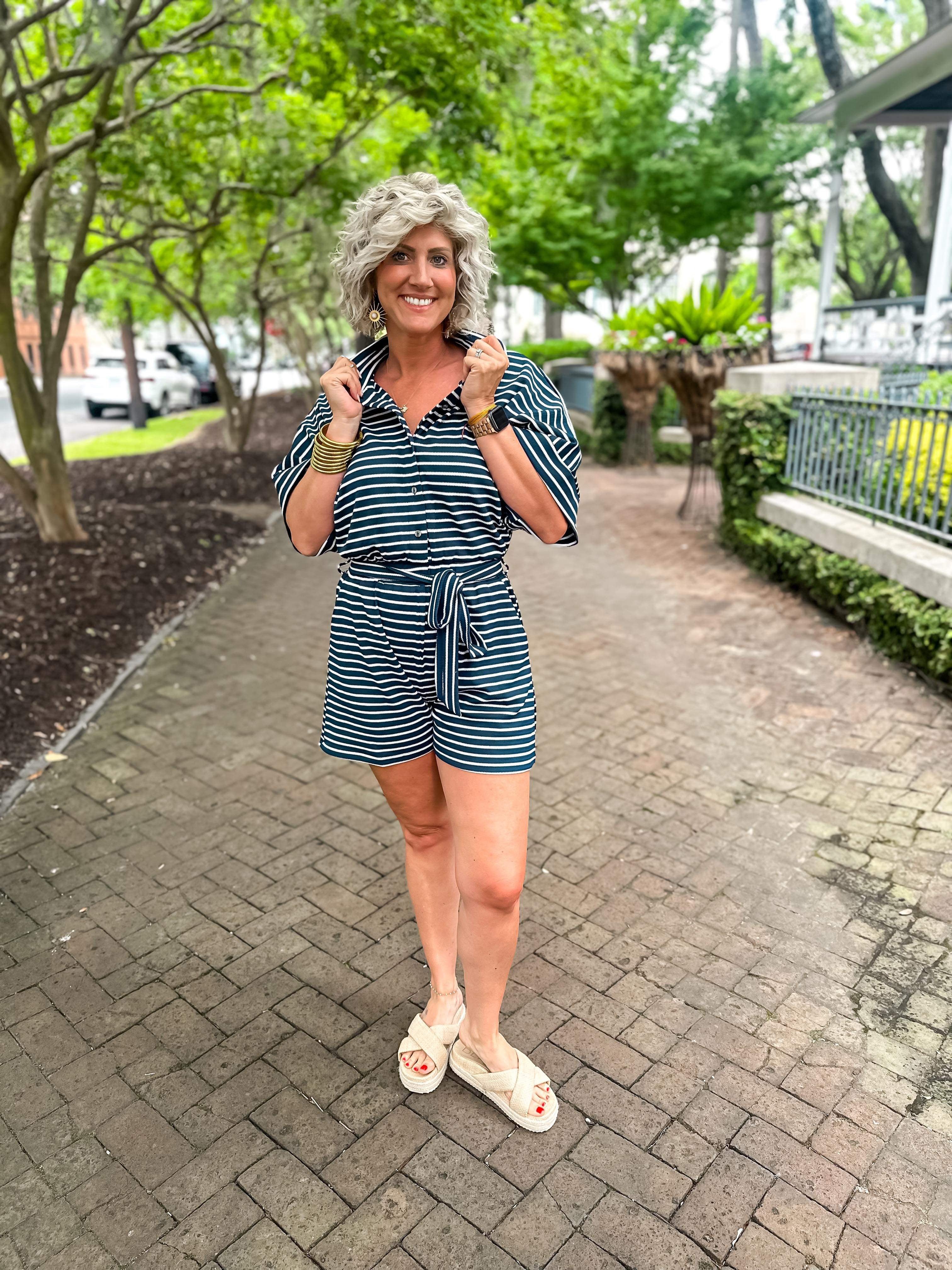 Cutest everyday romper - easy to throw on and go. Tie feature - elastic waist.