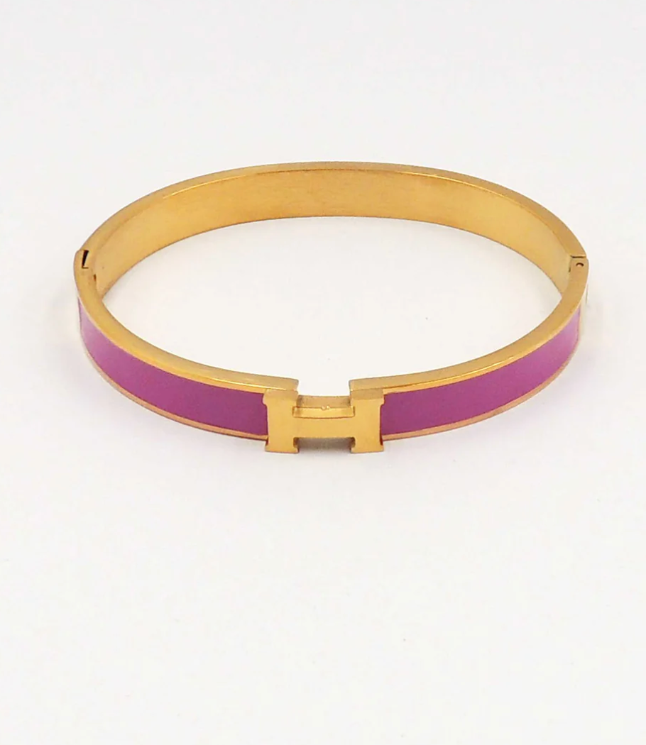 Hot Pink WP Stainless Steel Gold H Bangle - Final Sale
