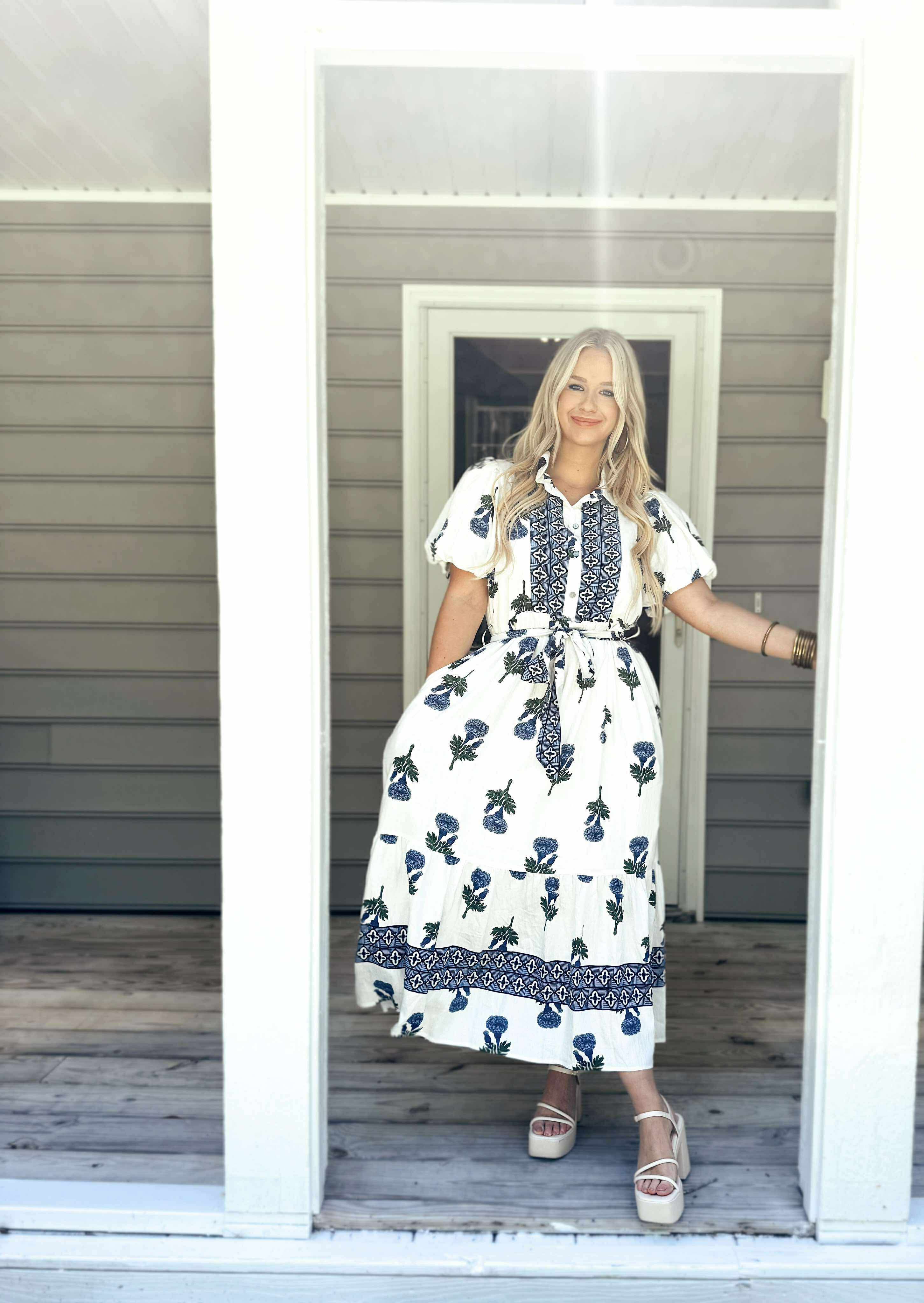 Hydrangea Heaven Midi Dress - Blue