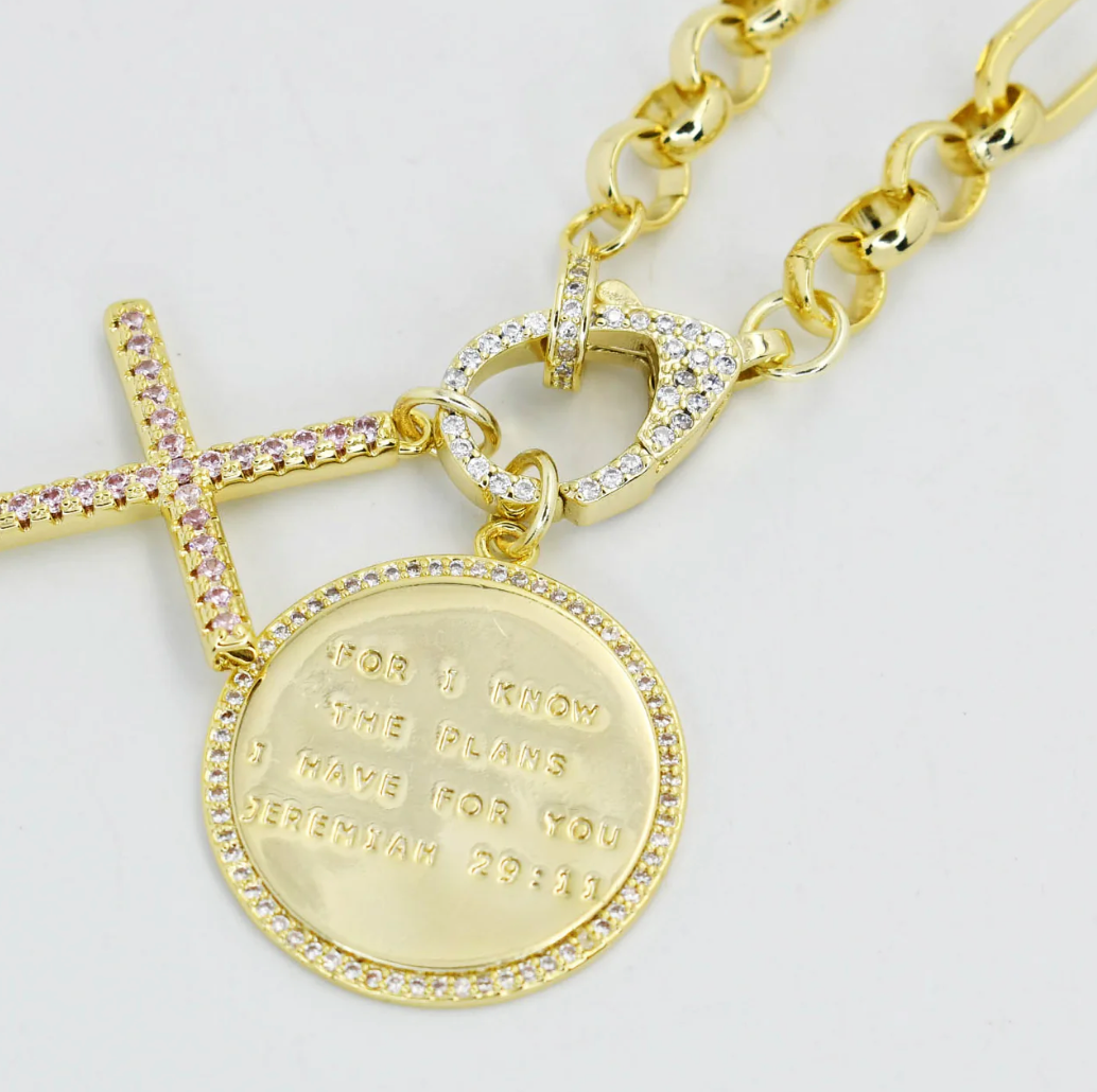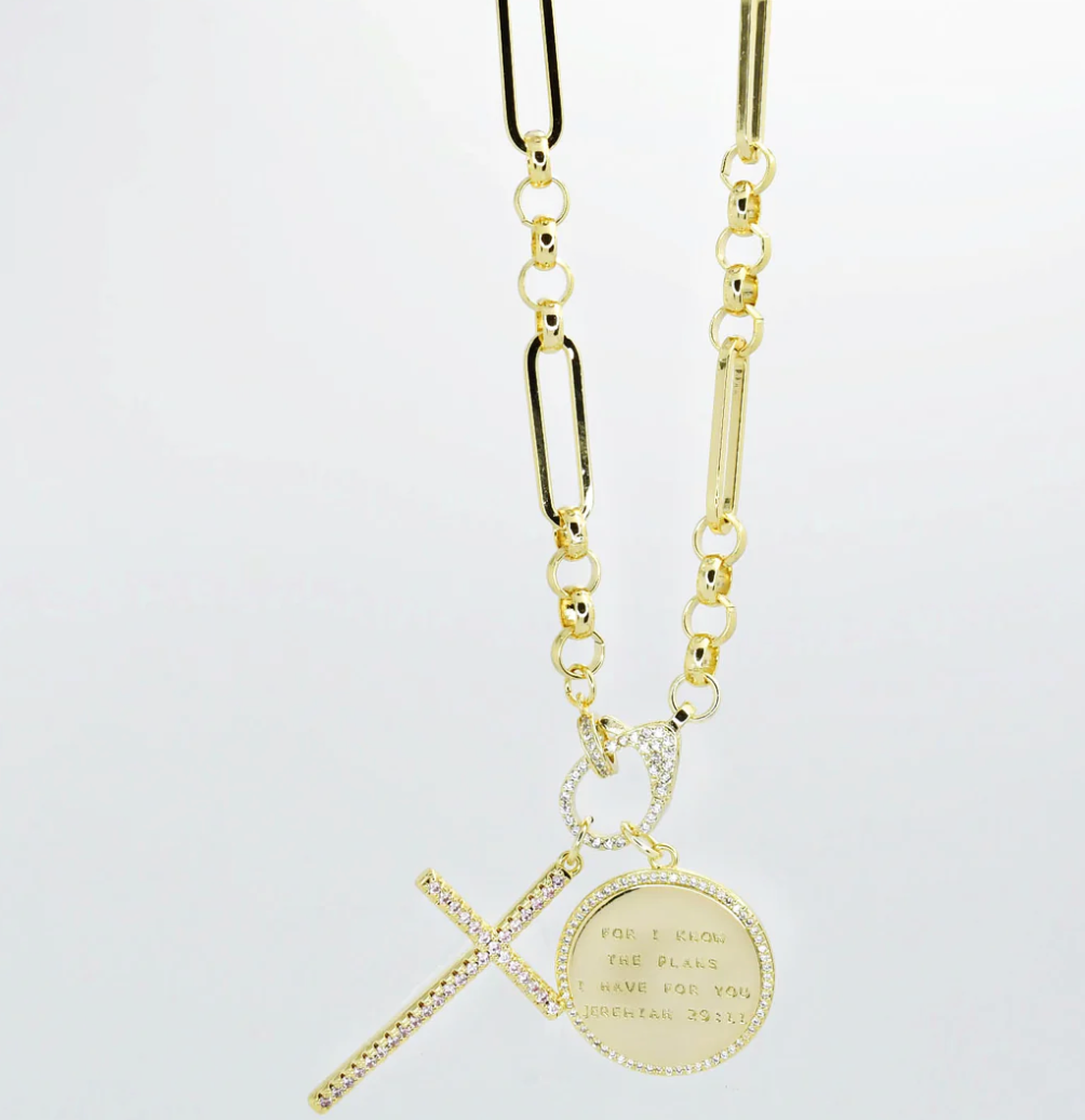 Jeremiah 29:11 With Cross Necklace - Gold - Final Sale