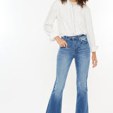 These high-rise jeans in medium stone wash are the perfect combination of style and comfort. Made with stretchy denim, they ensure a flattering fit and ease of movement. Featuring a classic 5-pocket design and a zipper fly, the frayed hem adds a trendy, relaxed vibe. Ideal for casual outings, these jeans can be paired with everything from graphic tees to cozy sweaters.