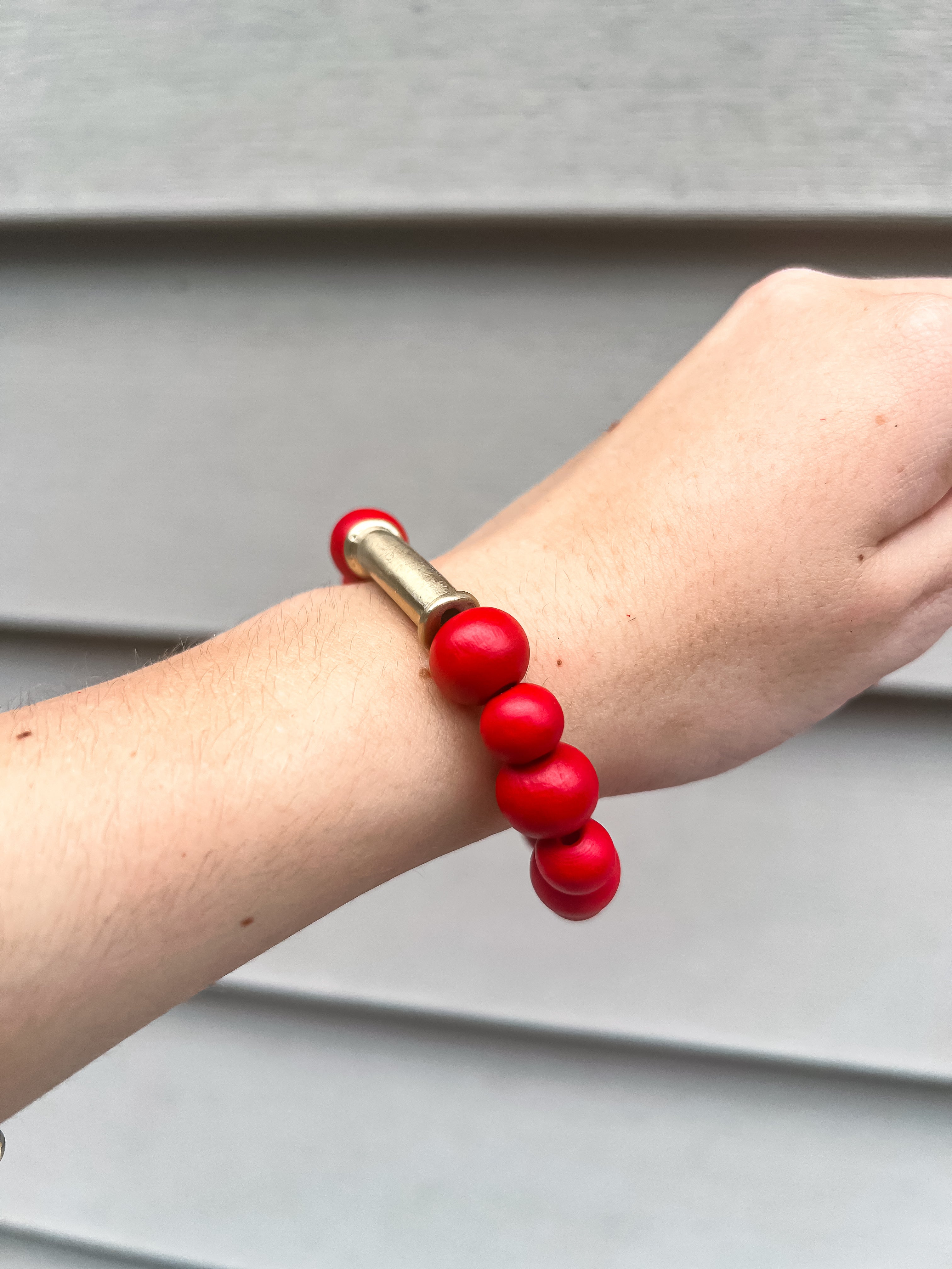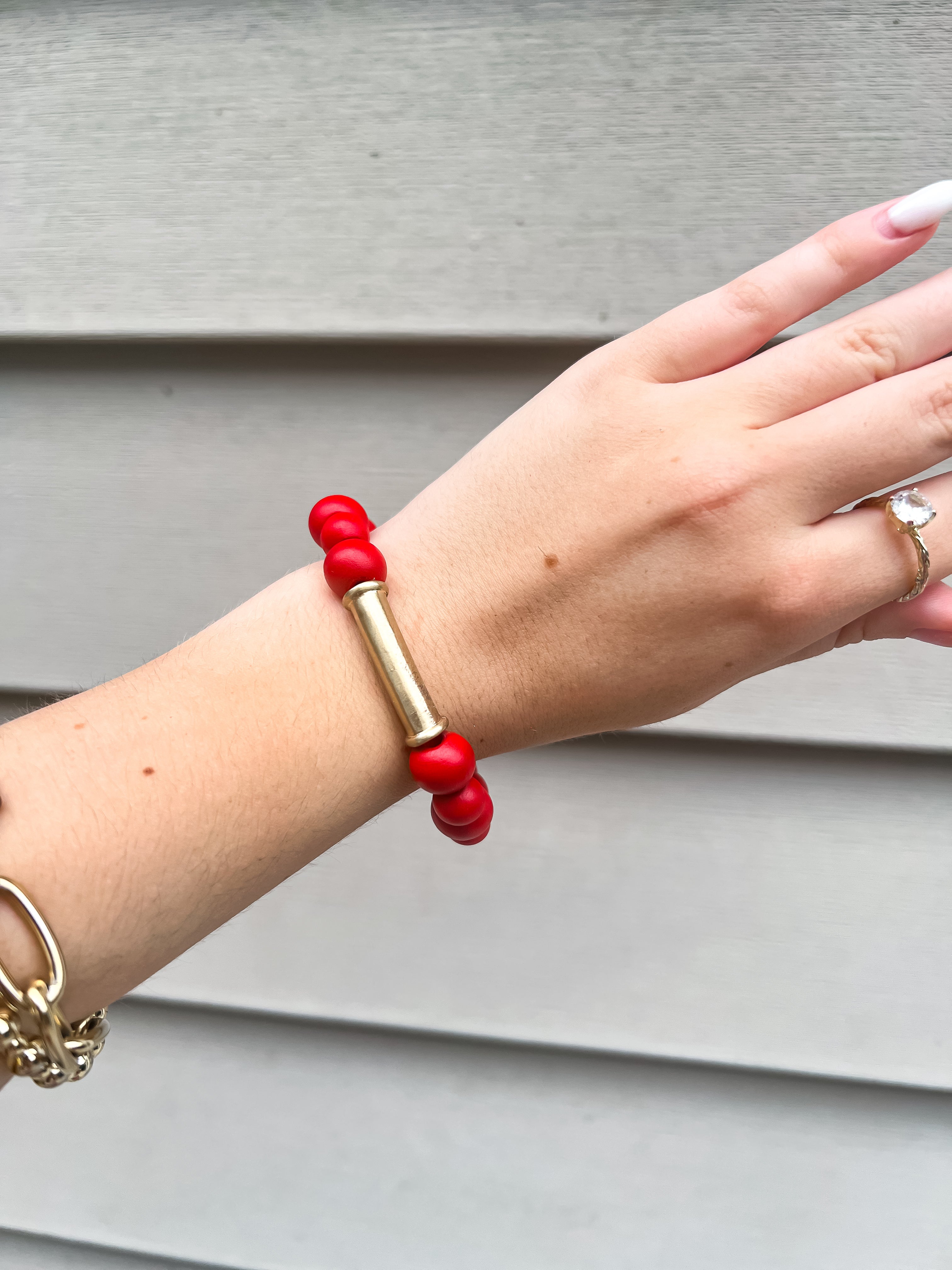 7" Stretch Wood Beaded Bracelets with Gold Accents