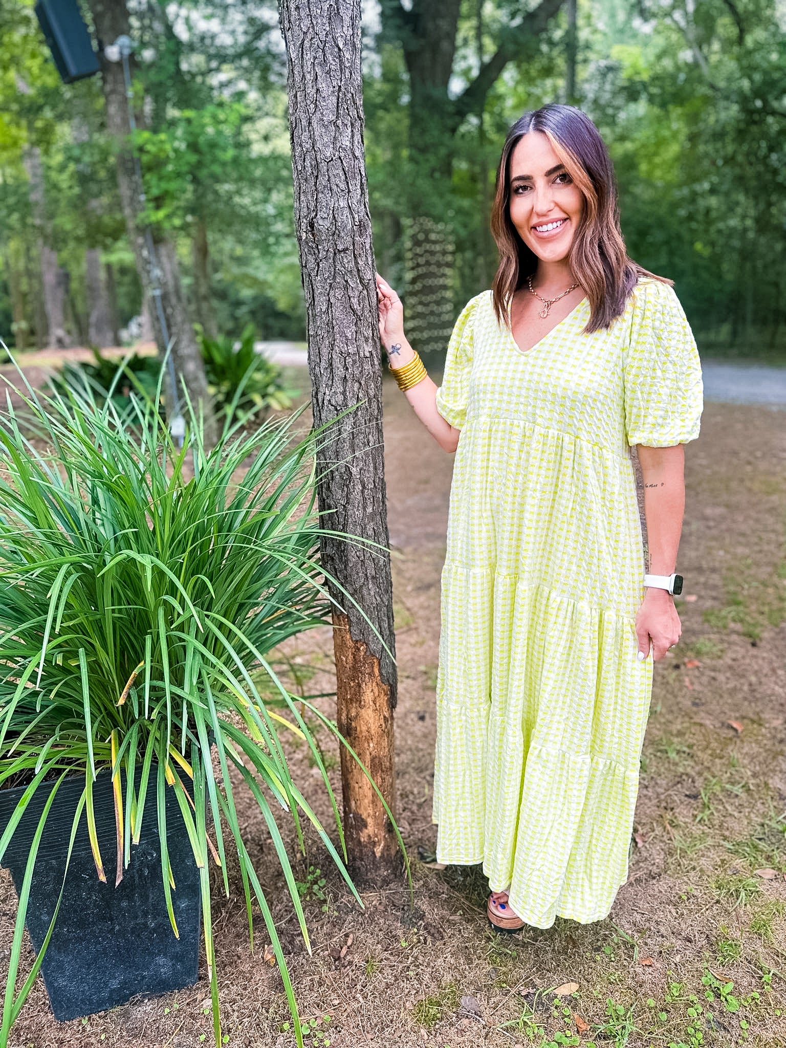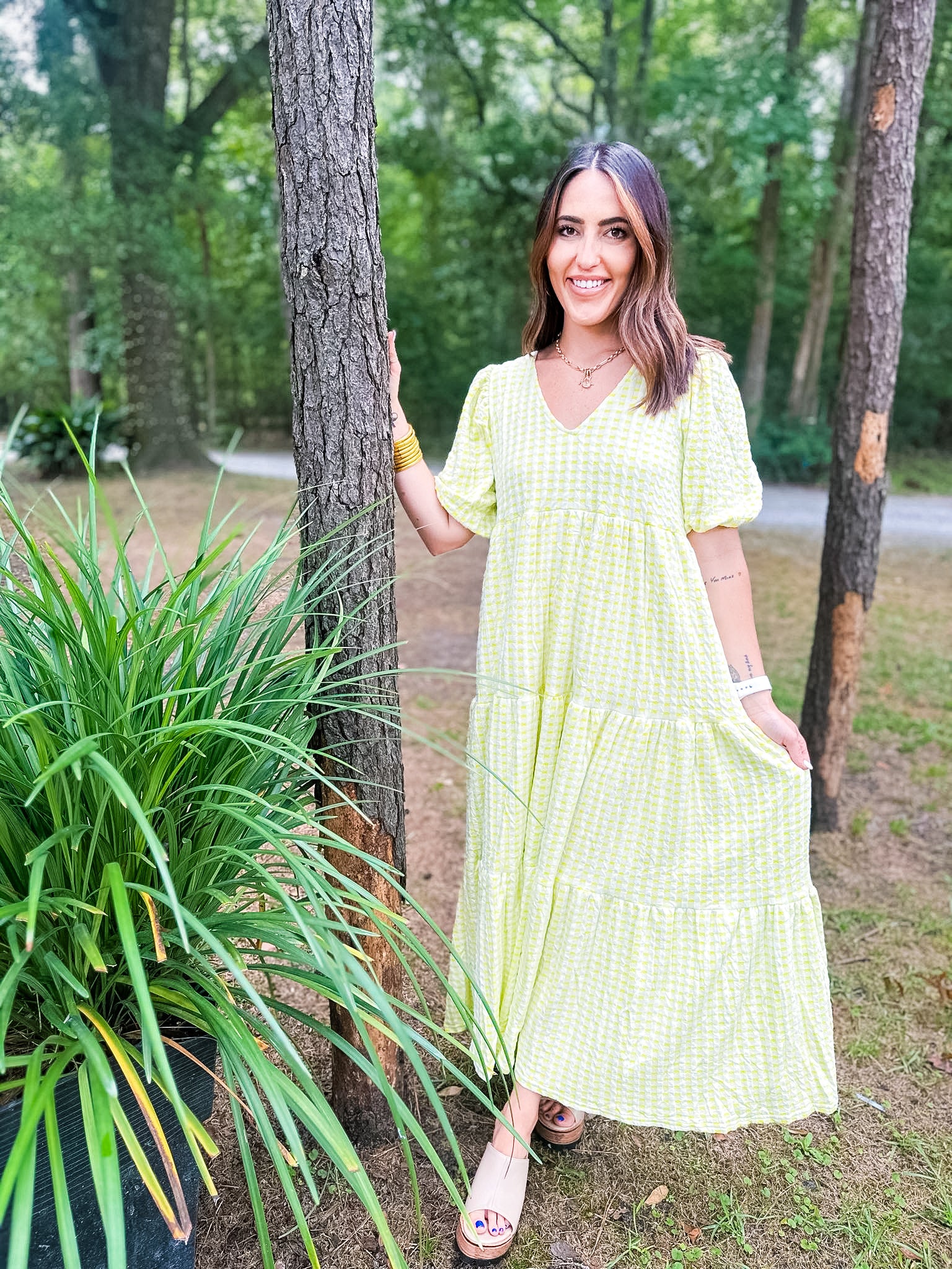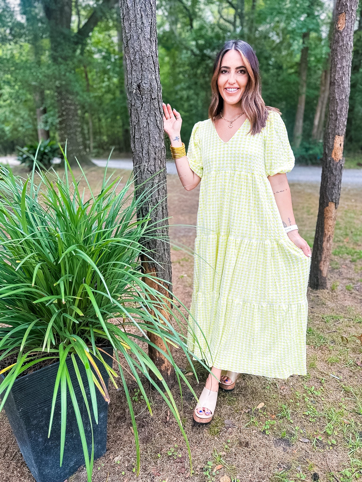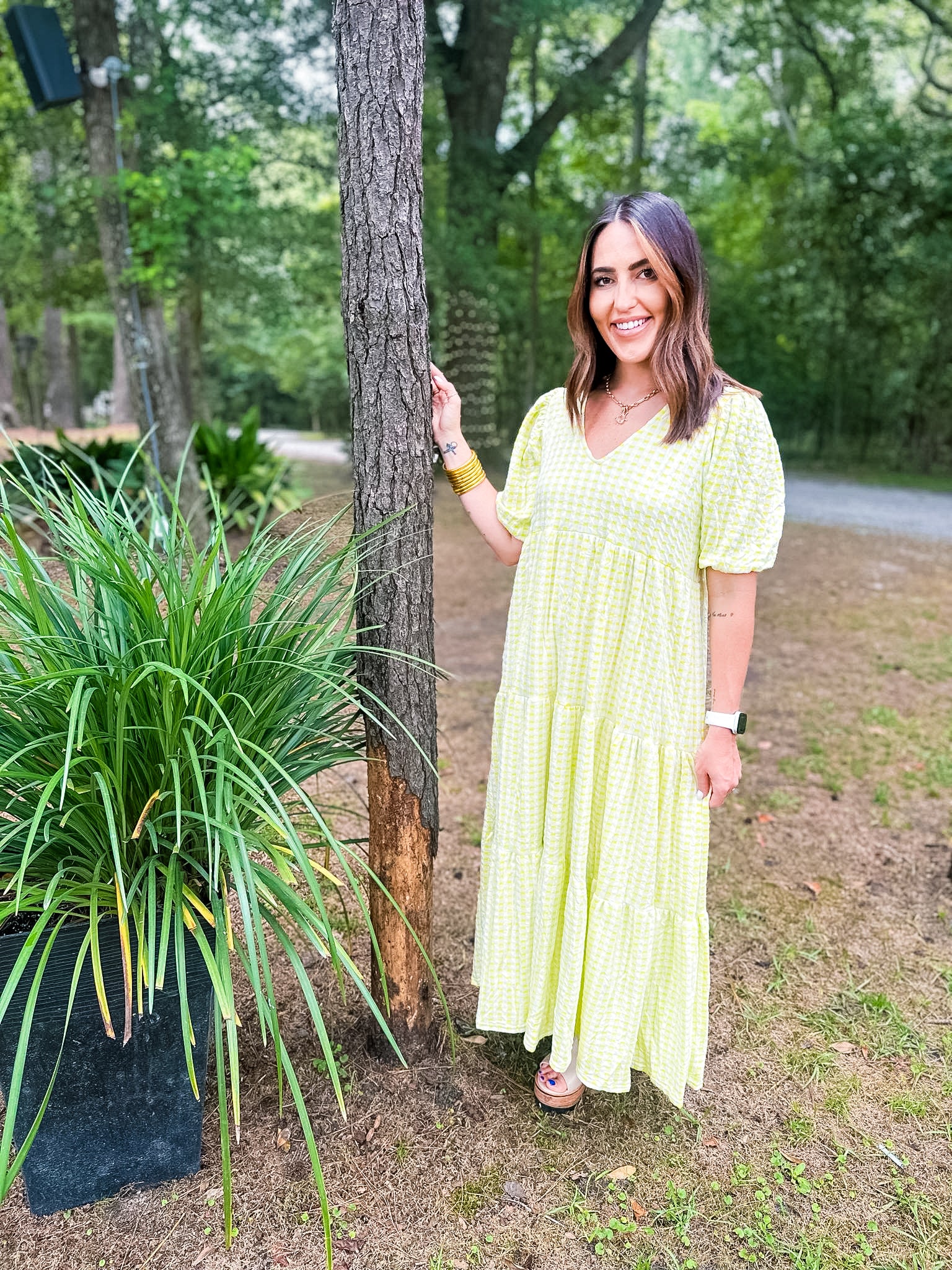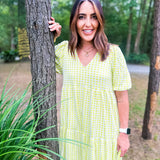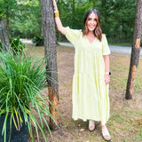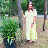 Karlie Check Plaid Jacquard Puff Sleeve Maxi Dress - Yellow
