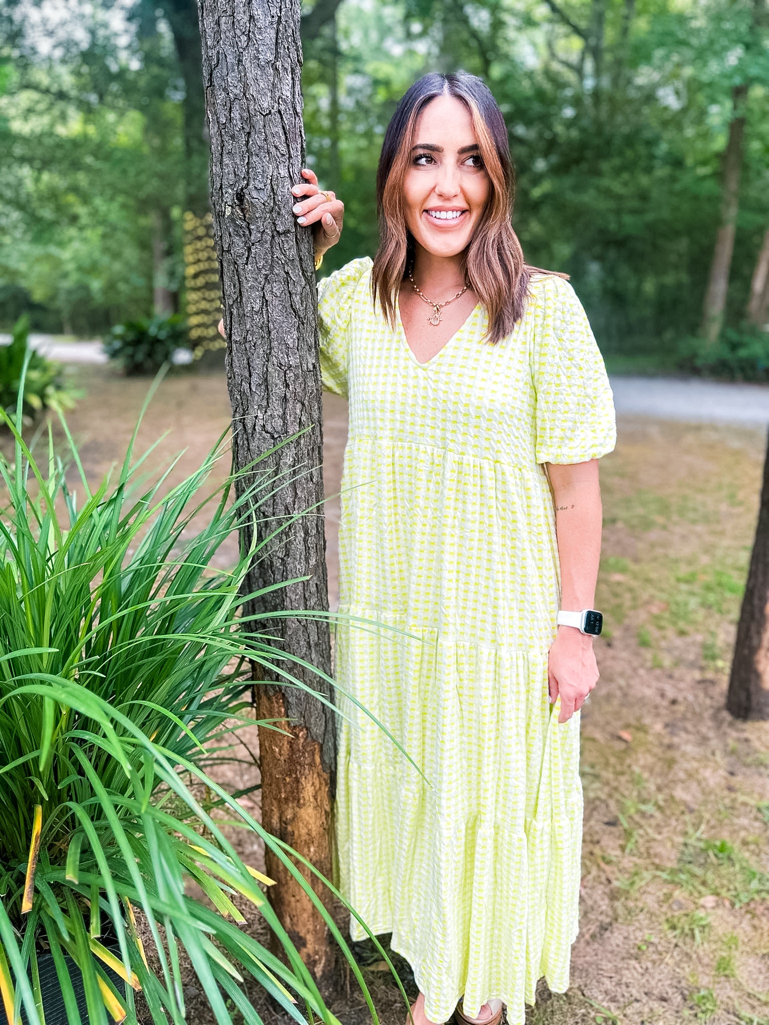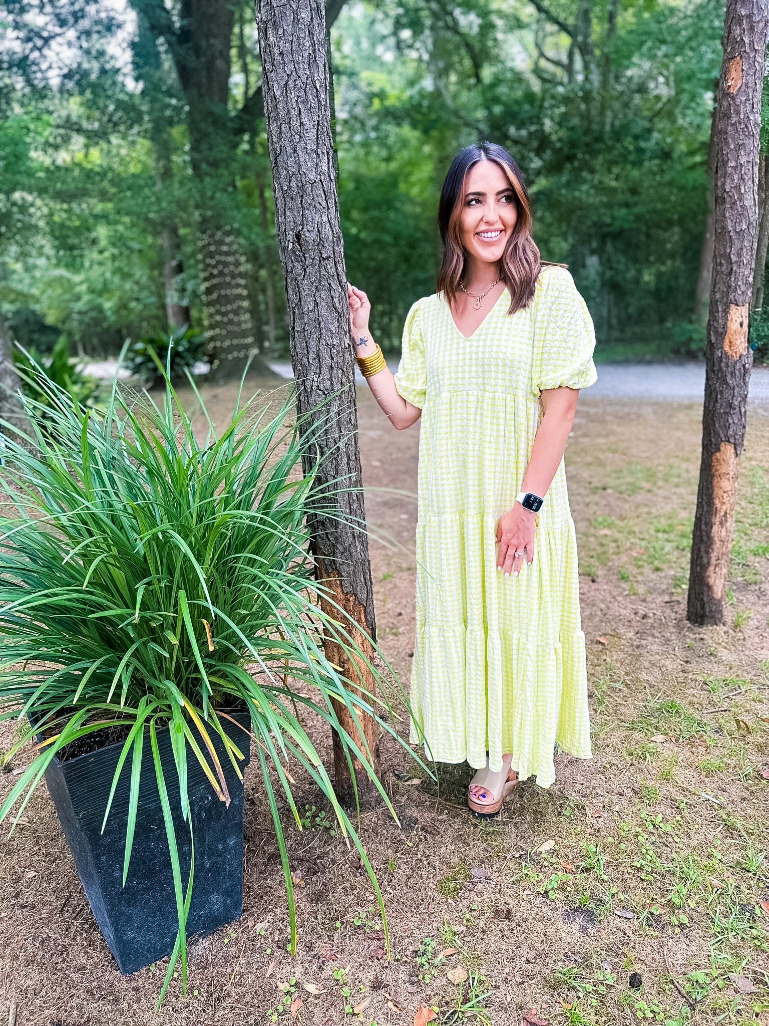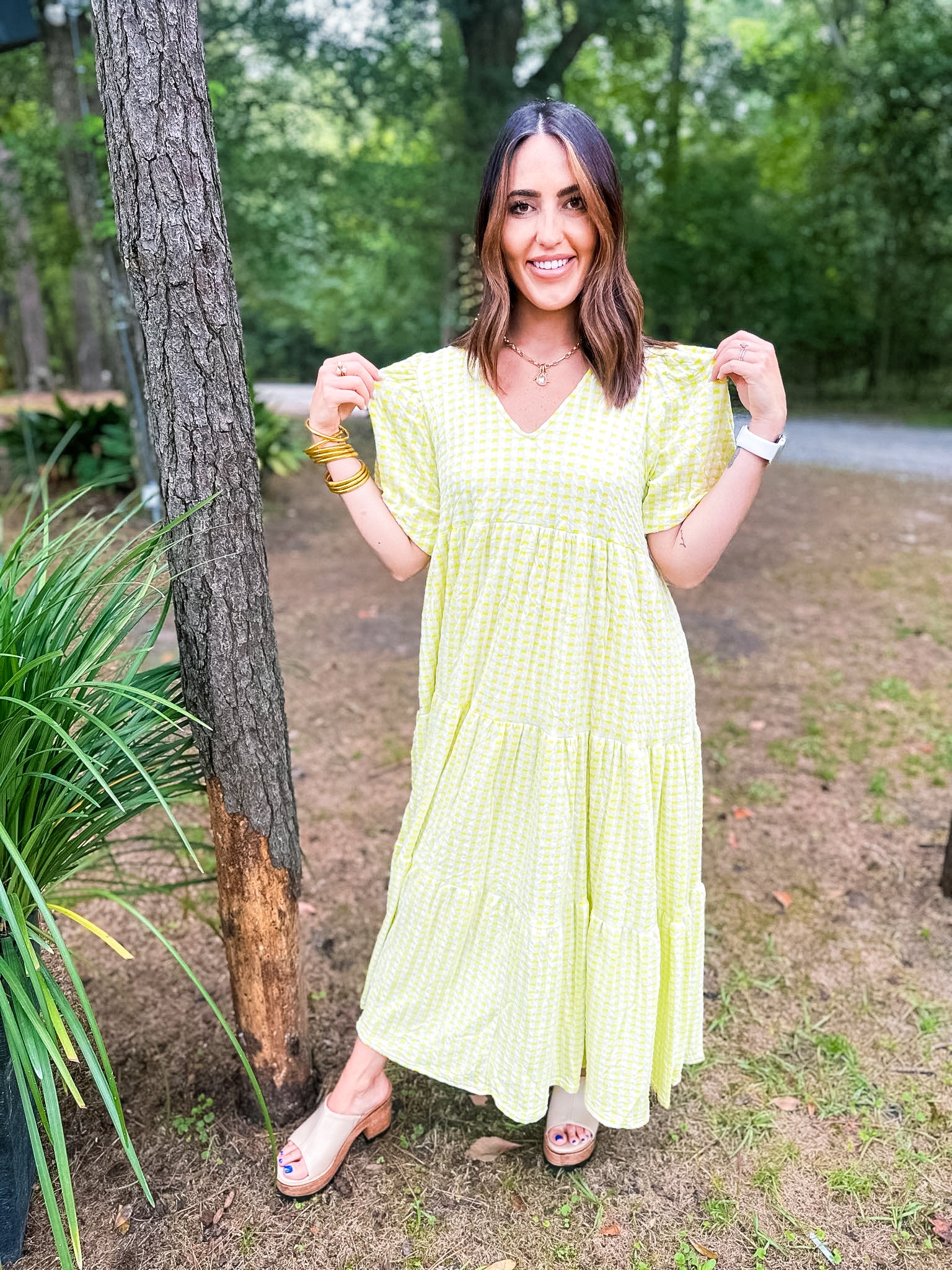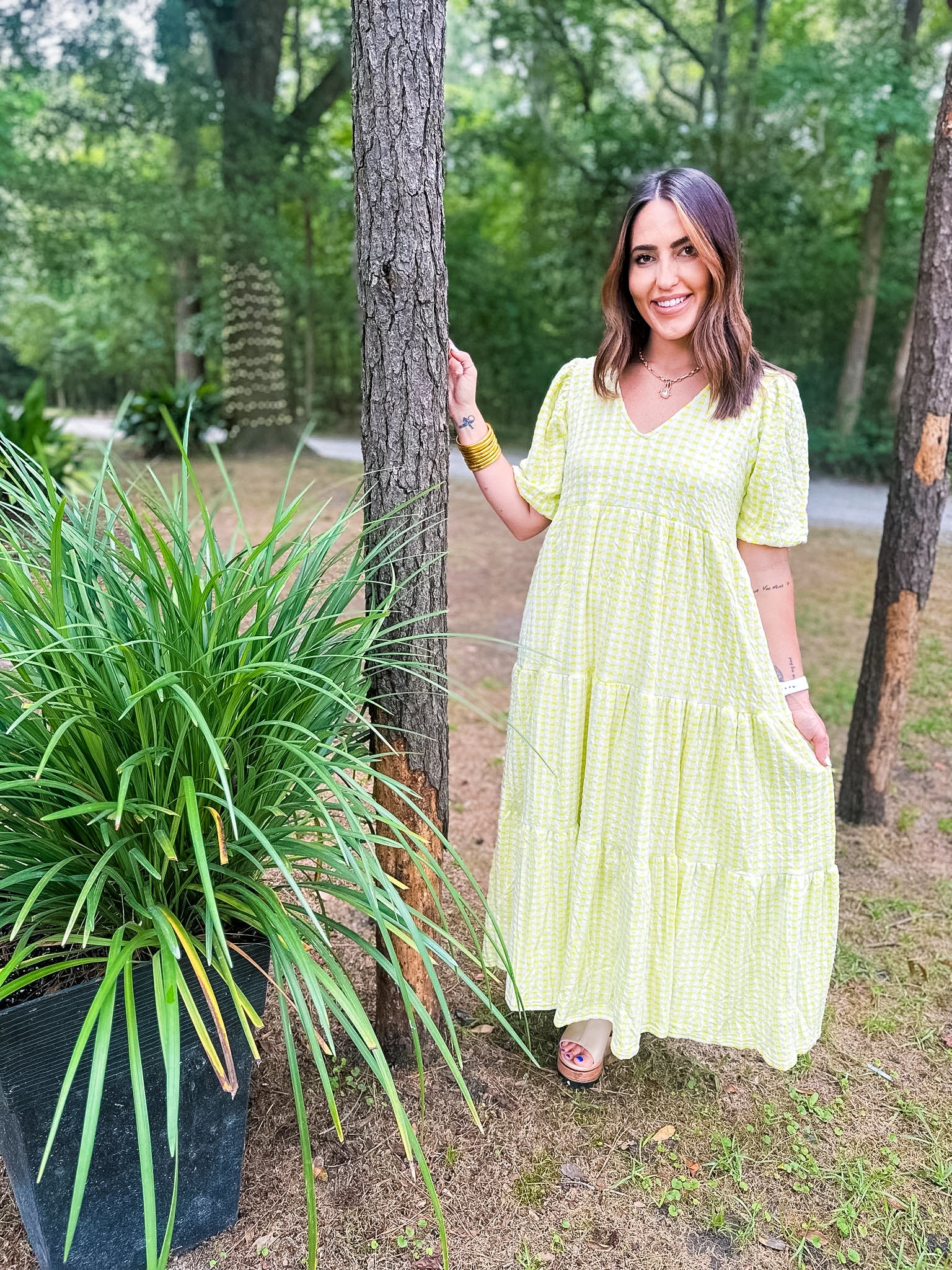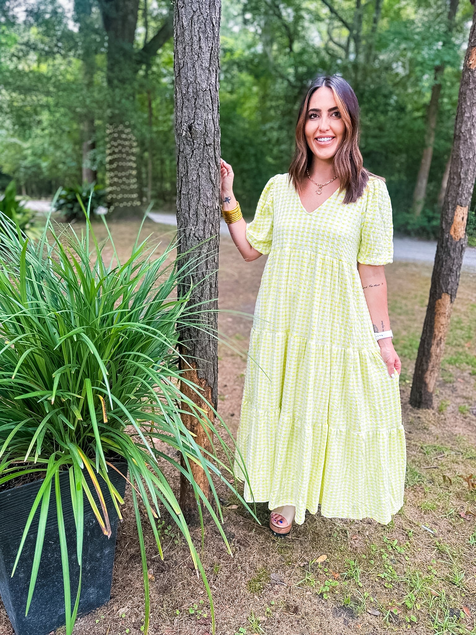 Karlie Check Plaid Jacquard Puff Sleeve Maxi Dress - Yellow