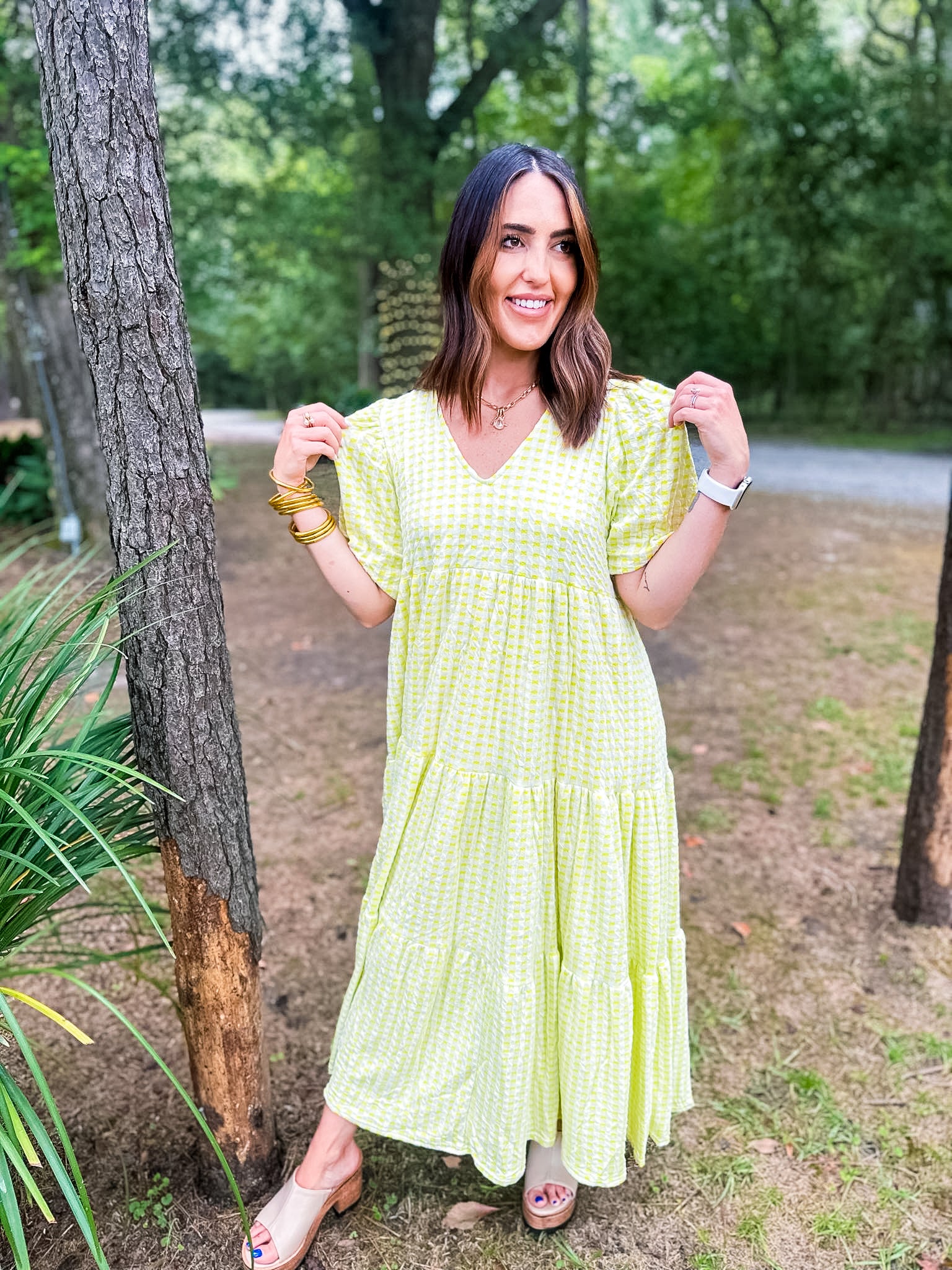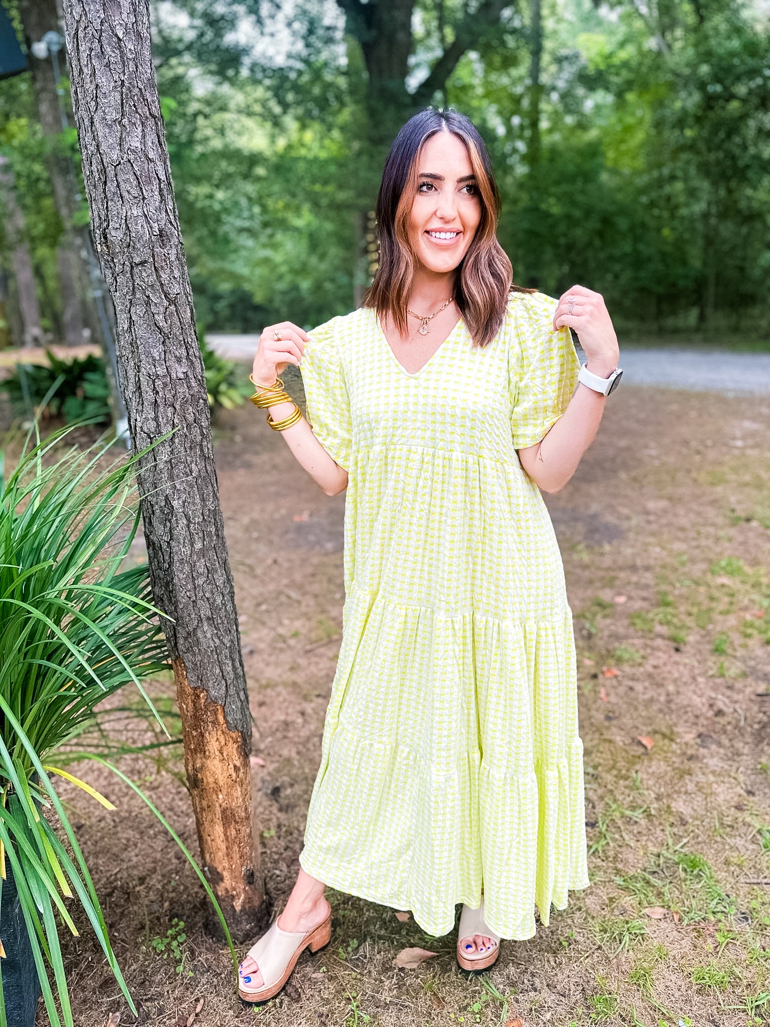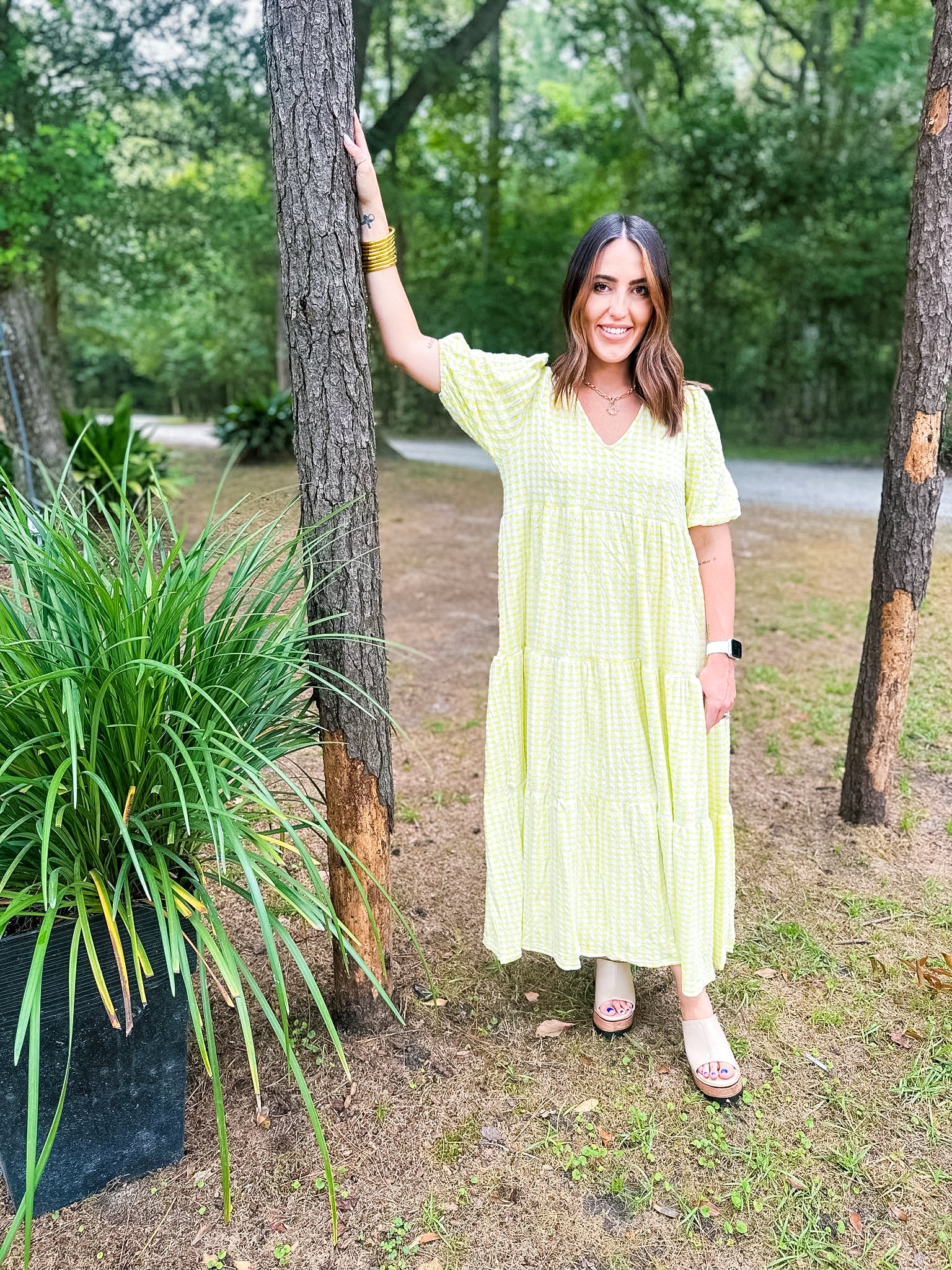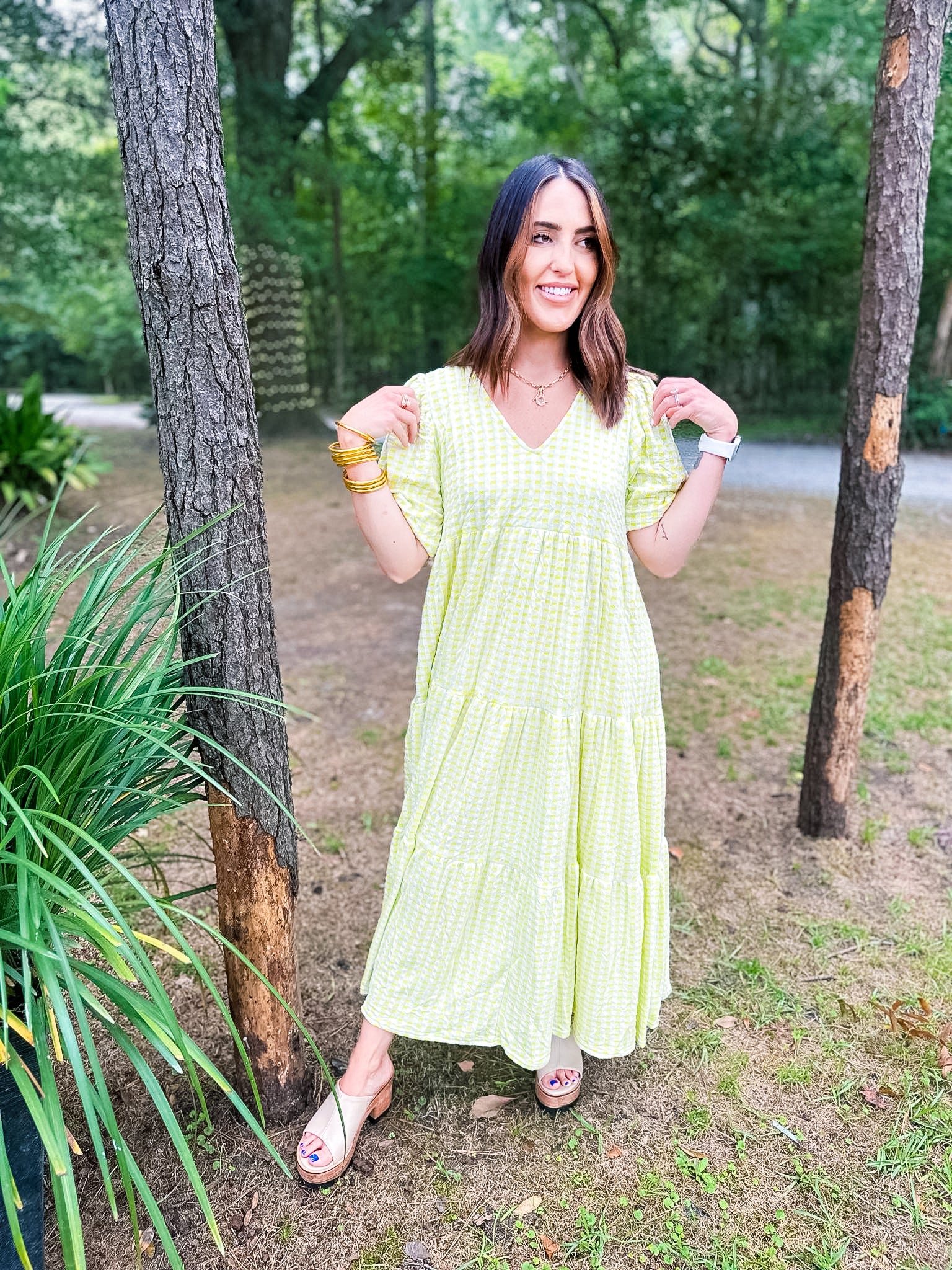 Karlie Check Plaid Jacquard Puff Sleeve Maxi Dress - Yellow