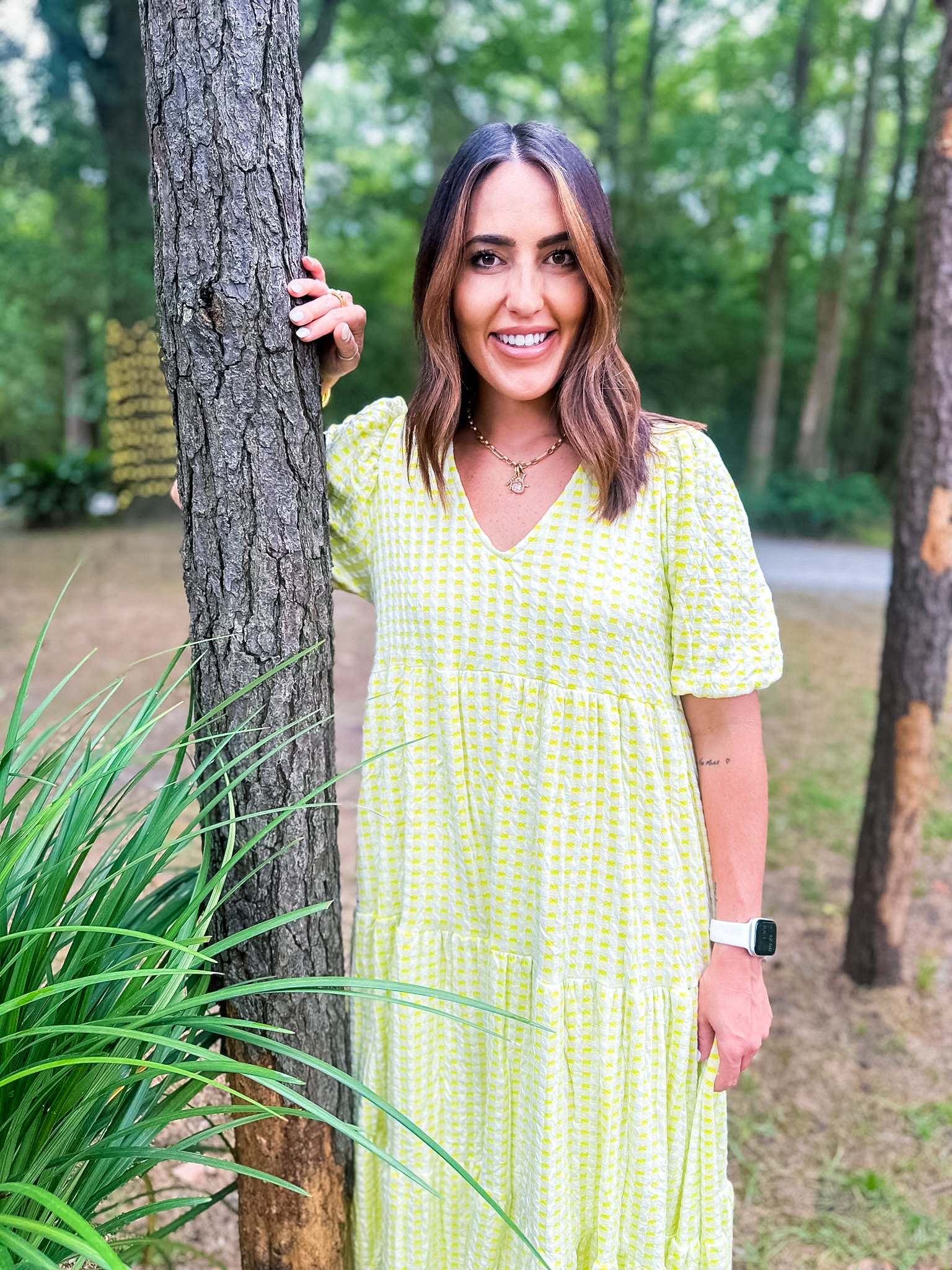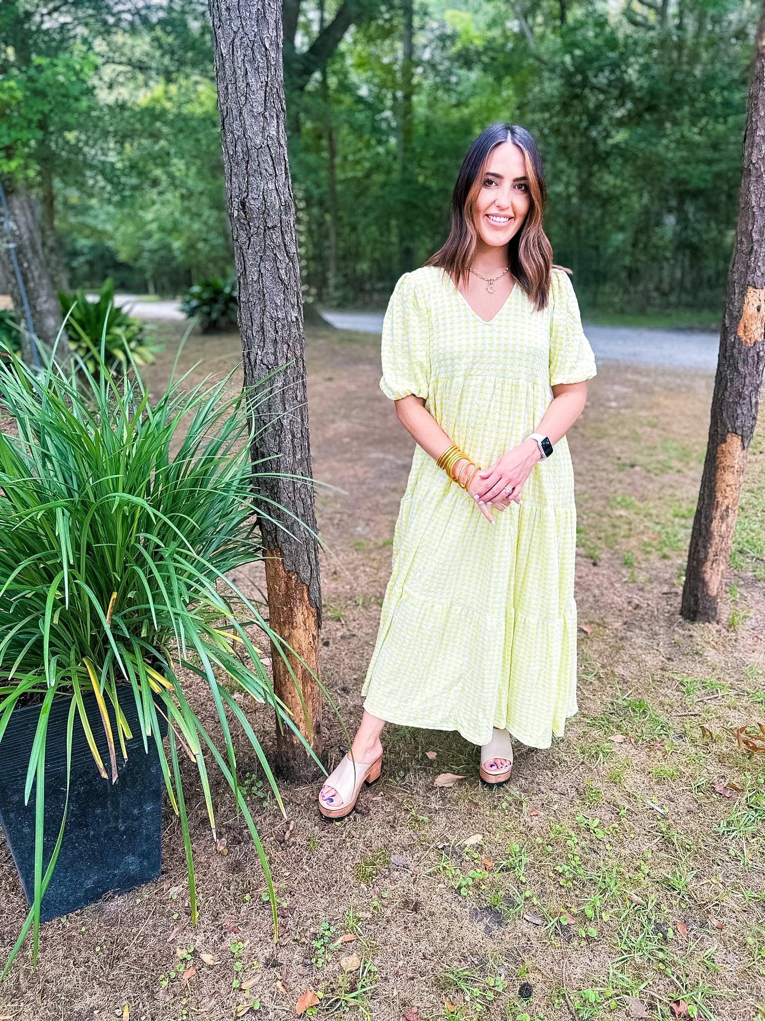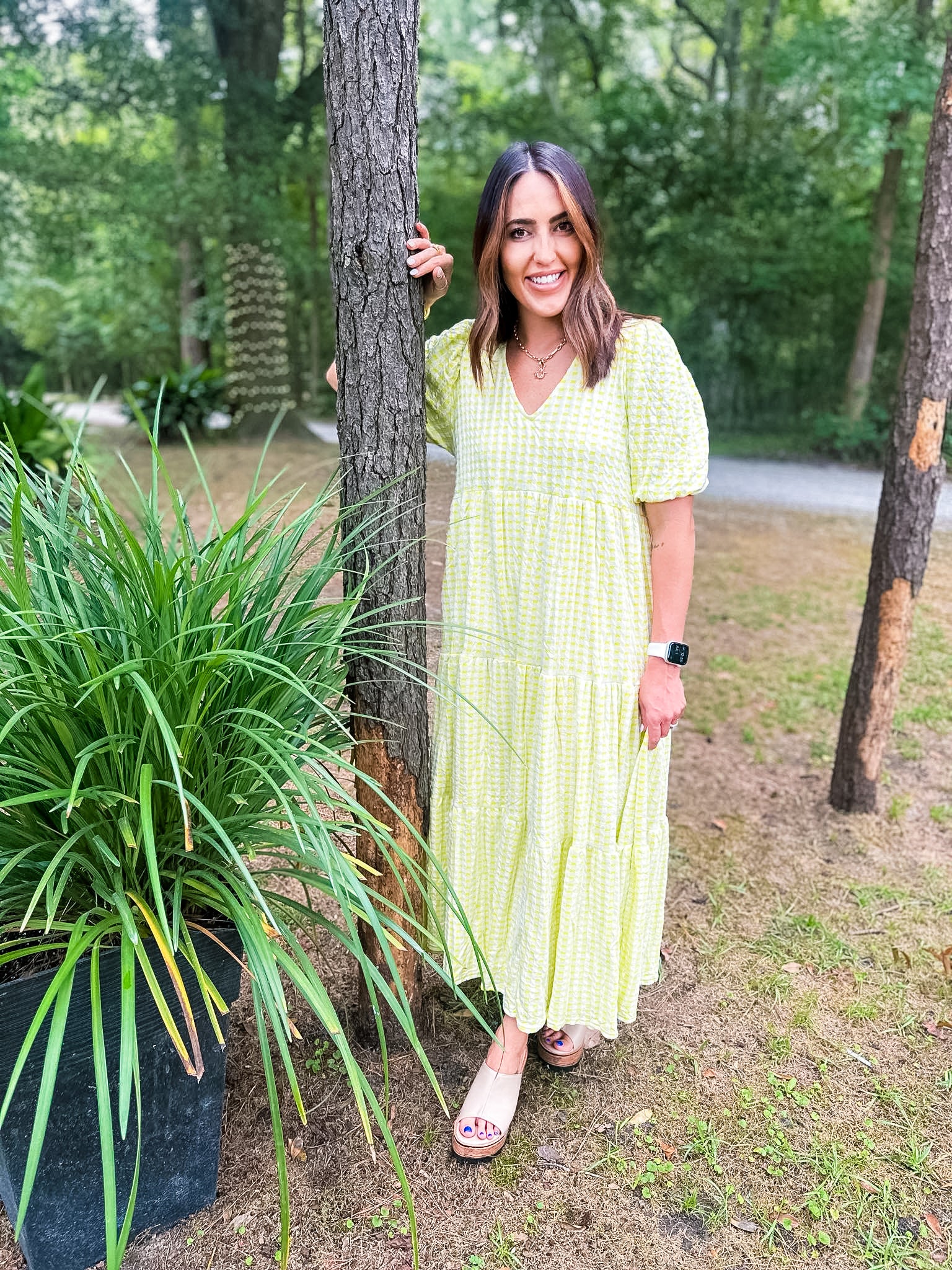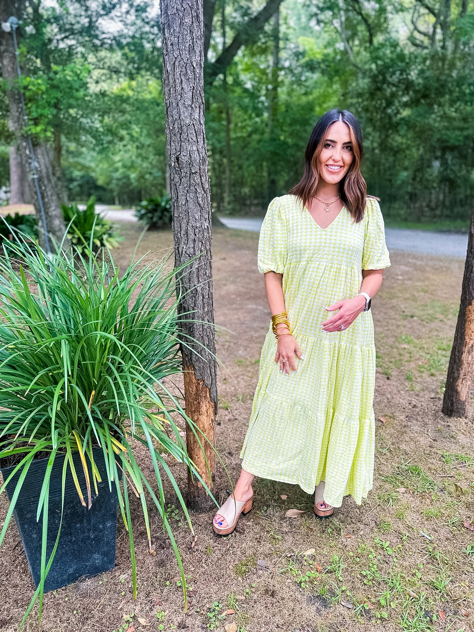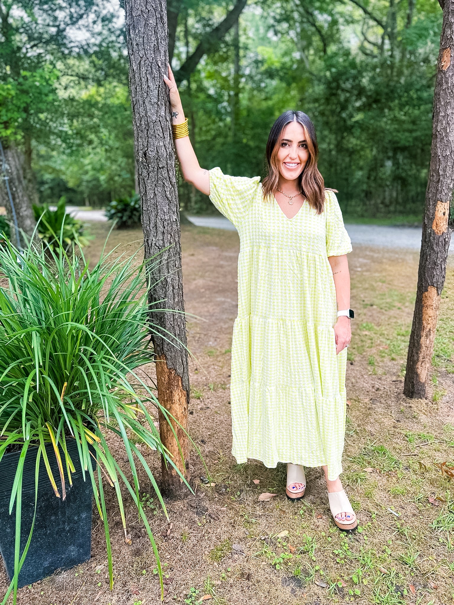 Karlie Check Plaid Jacquard Puff Sleeve Maxi Dress - Yellow