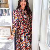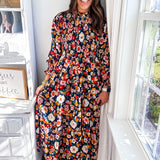 Karlie | London Floral Smock Tier Maxi Dress - Navy
