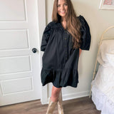 Karlie Solid Ruffle Dress - Black