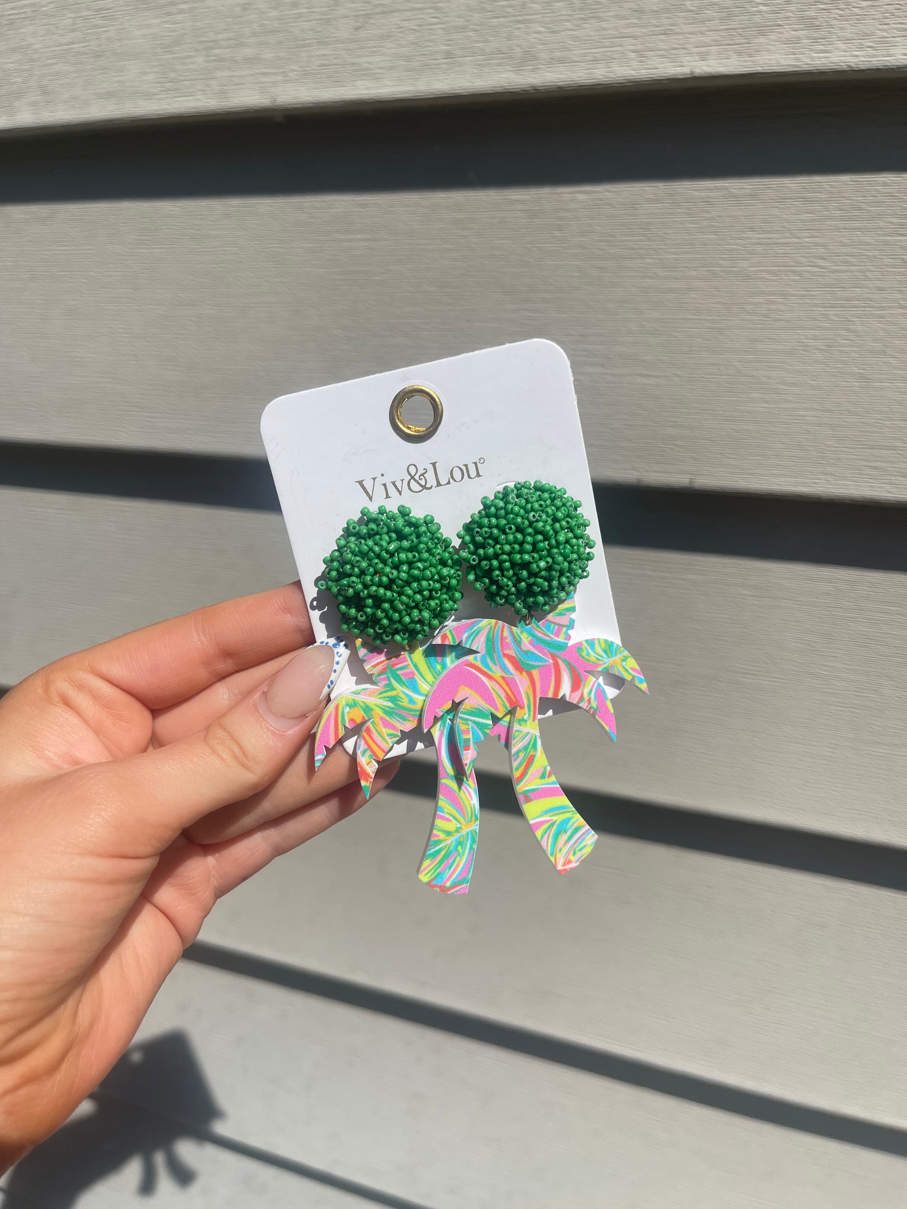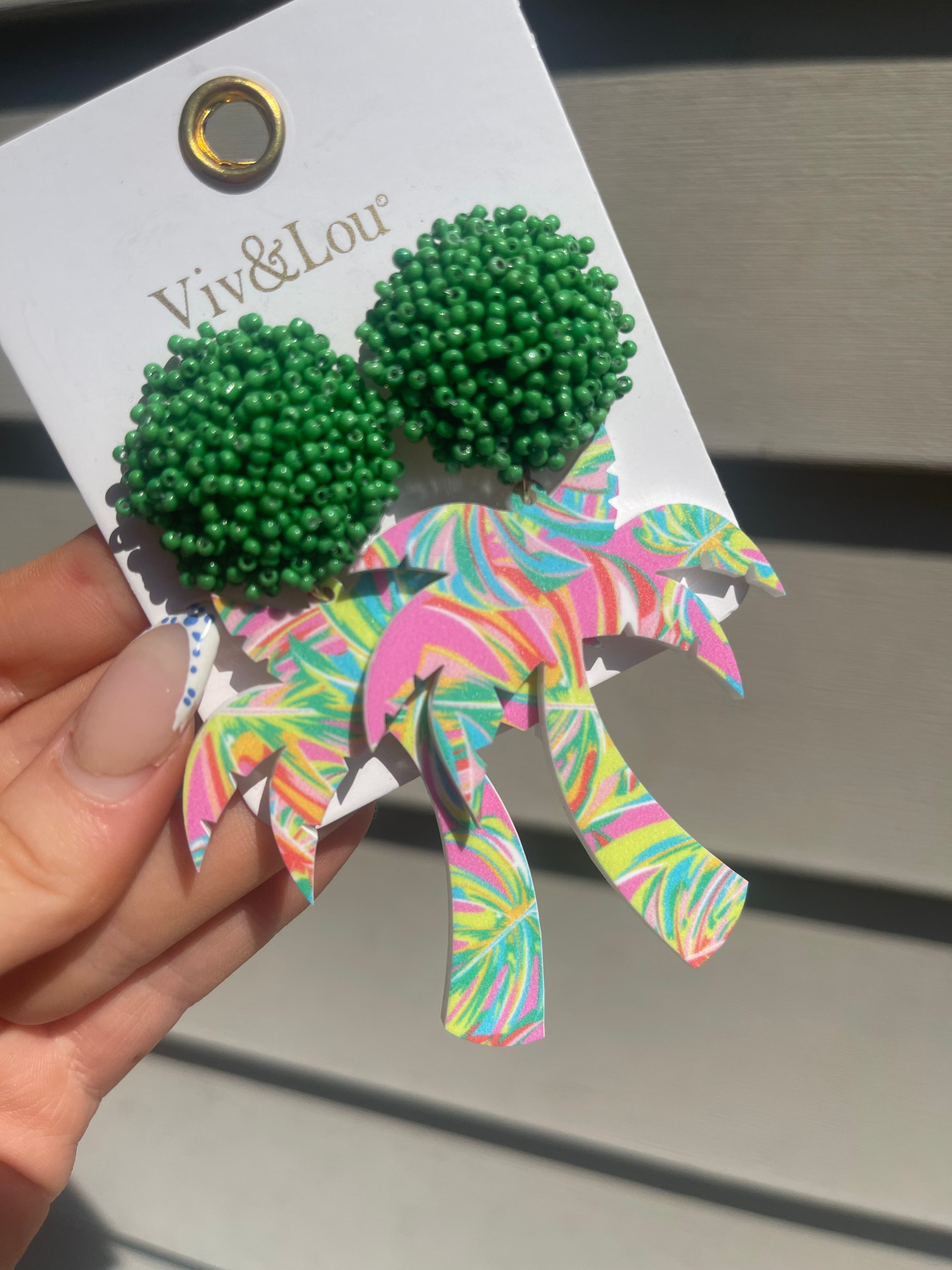 These adorable earrings feature a statement stud at the top and a fun design that is guaranteed compliments! 2.5" H Green Bead Post Earring Printed Let's Get Tropical Acrylic Design