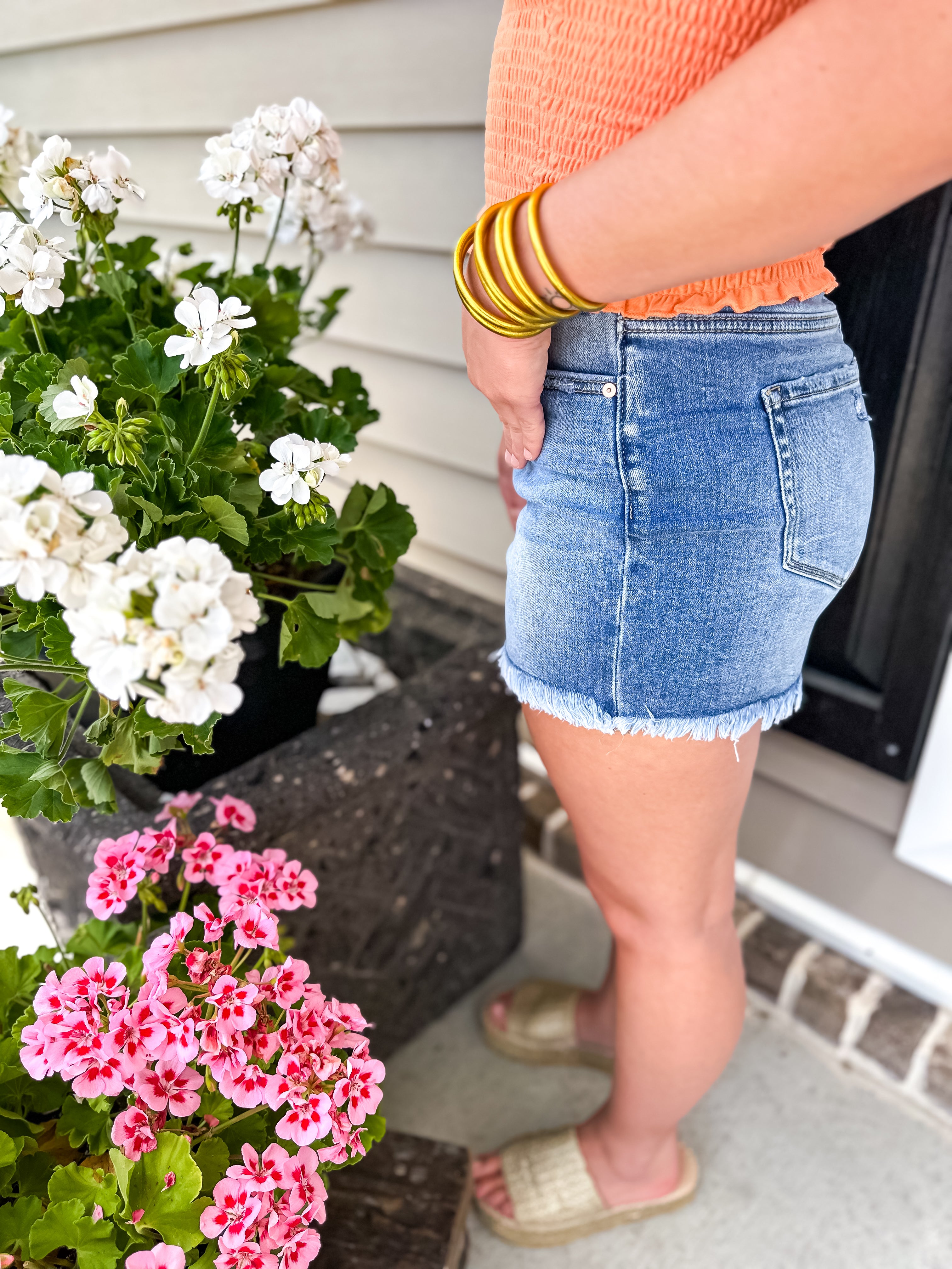 MID RISE RAW FRAYED HEM DENIM SHORTS