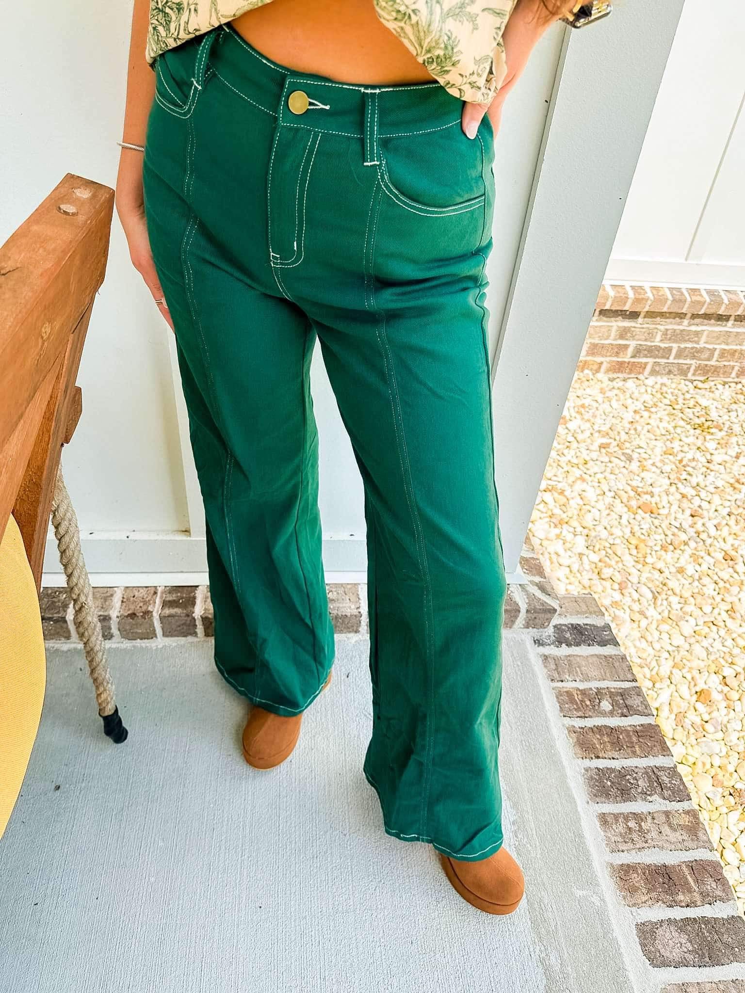 Denim high waisted wide leg pants featuring seam detail. Pockets at front and back. Belt loops. Unlined. Woven. Non-sheer. Lightweight.