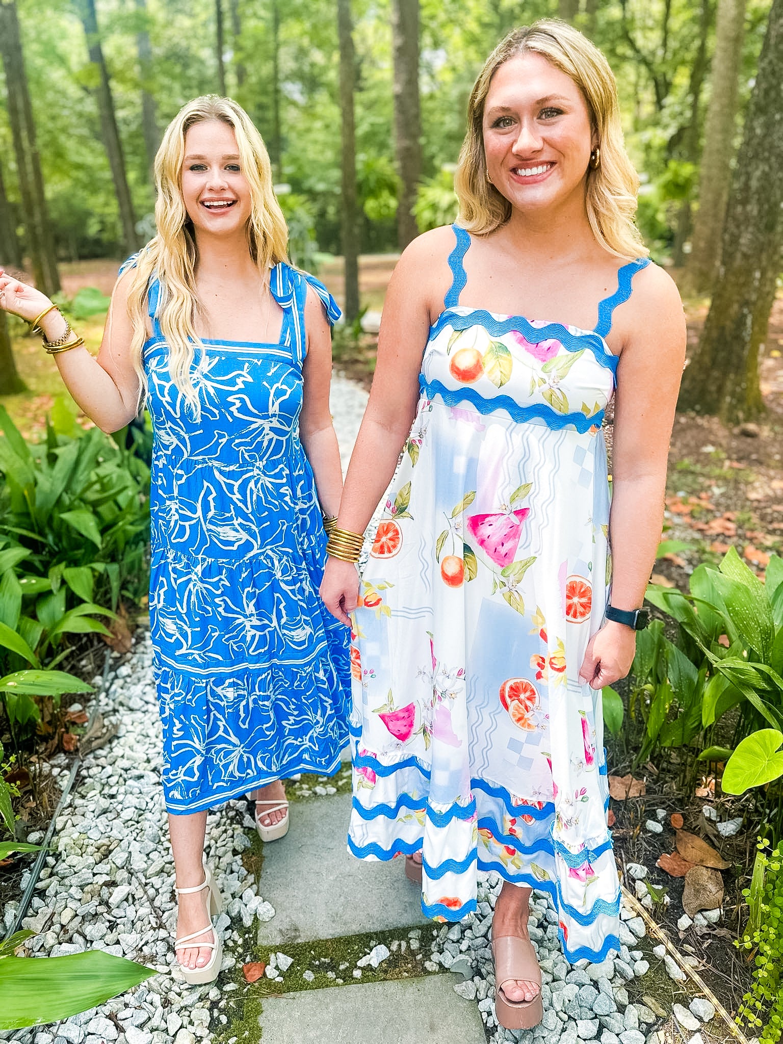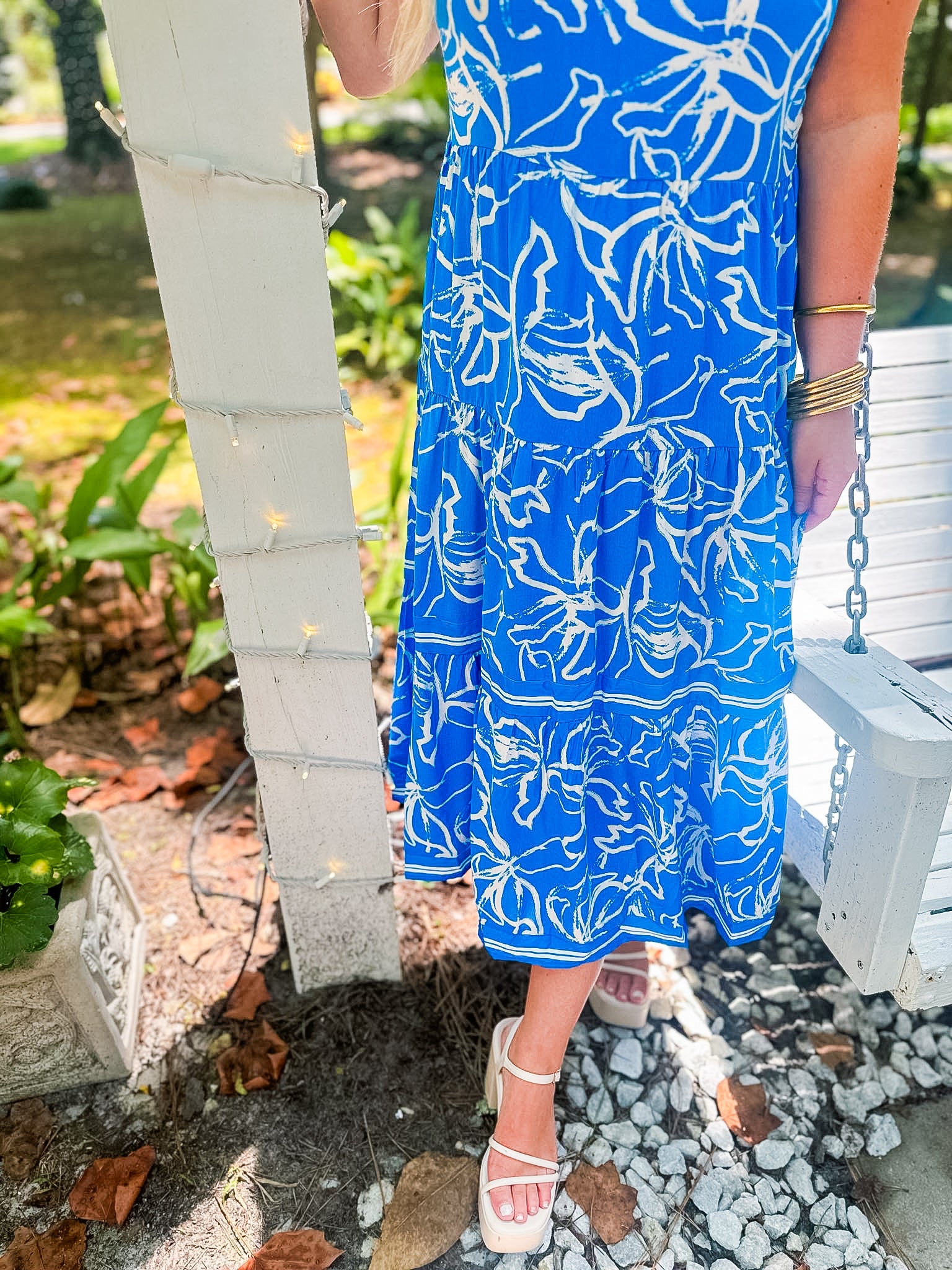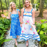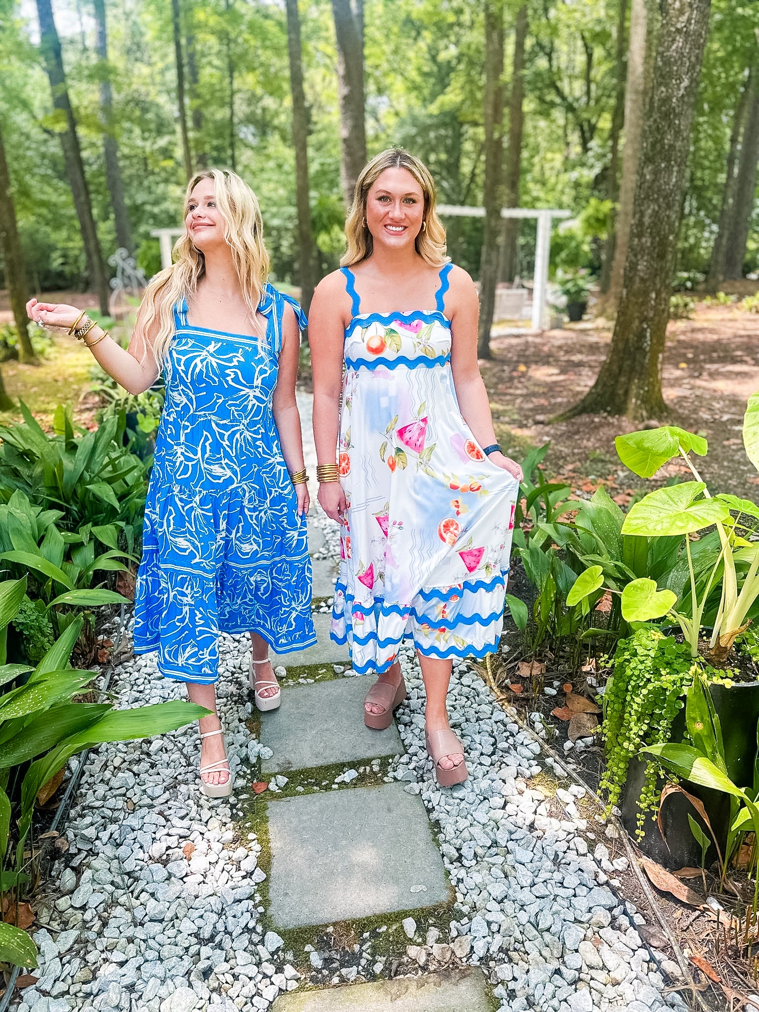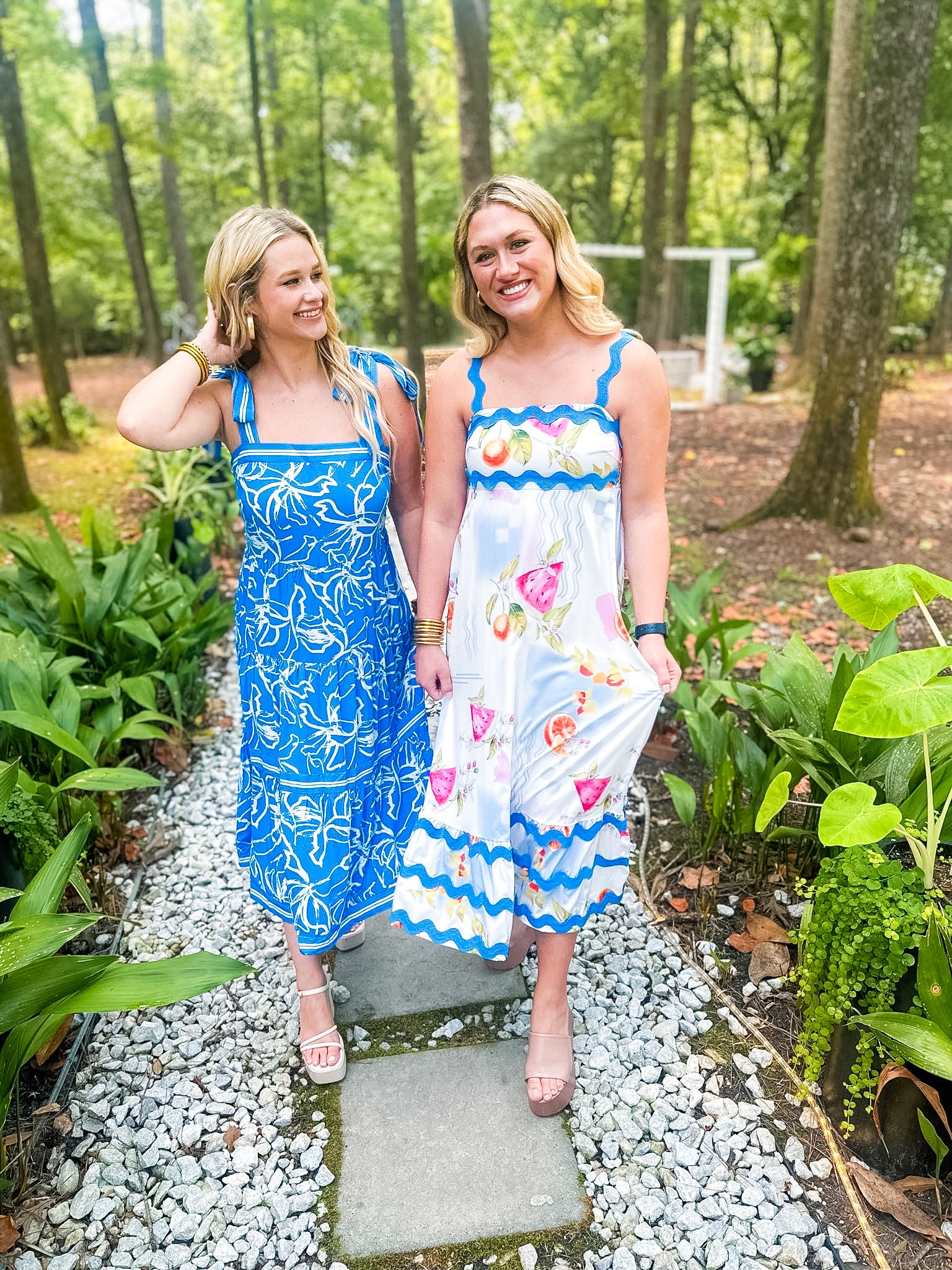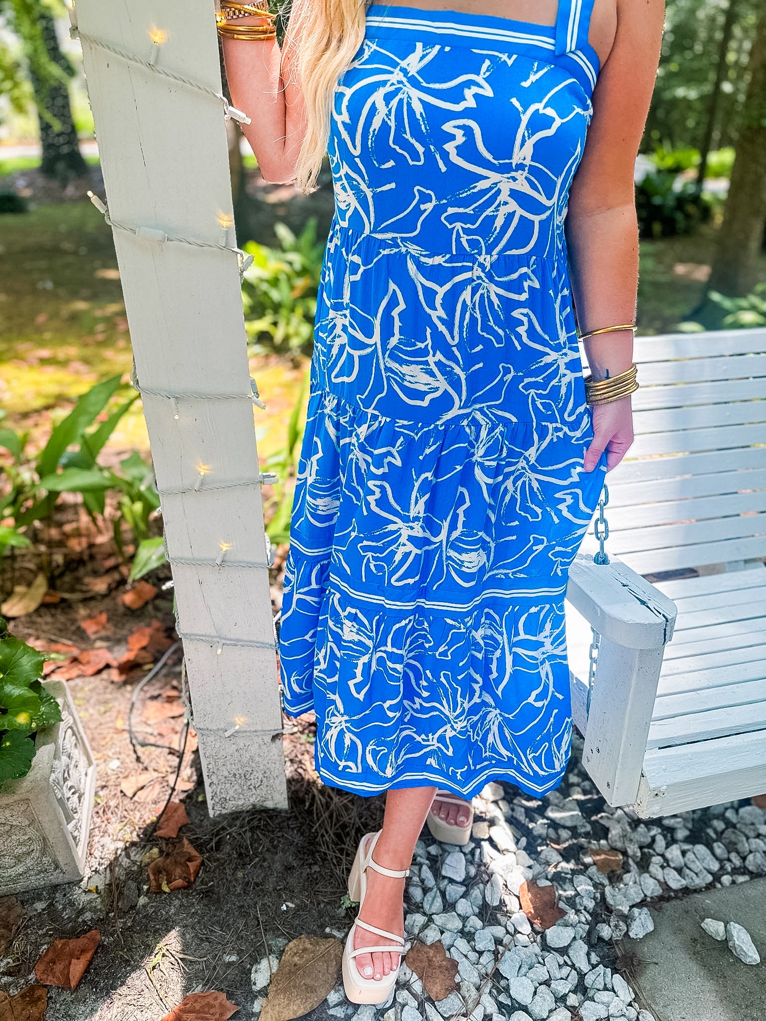 No Lining. Abstract spaghetti tie strap midid dress with stripe contrast.
