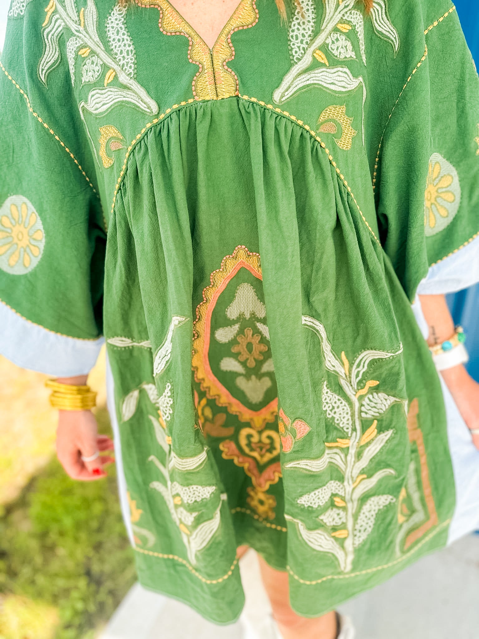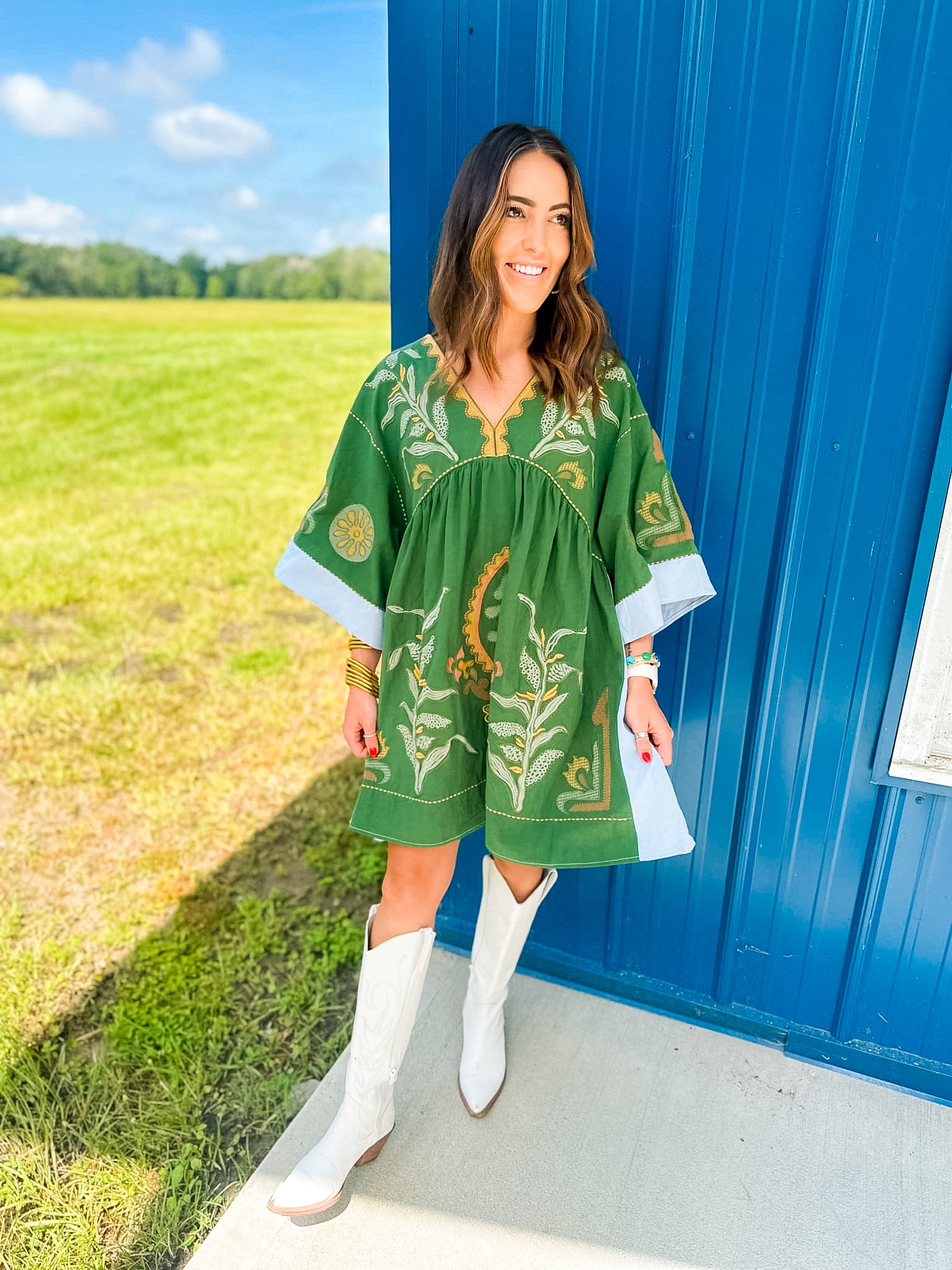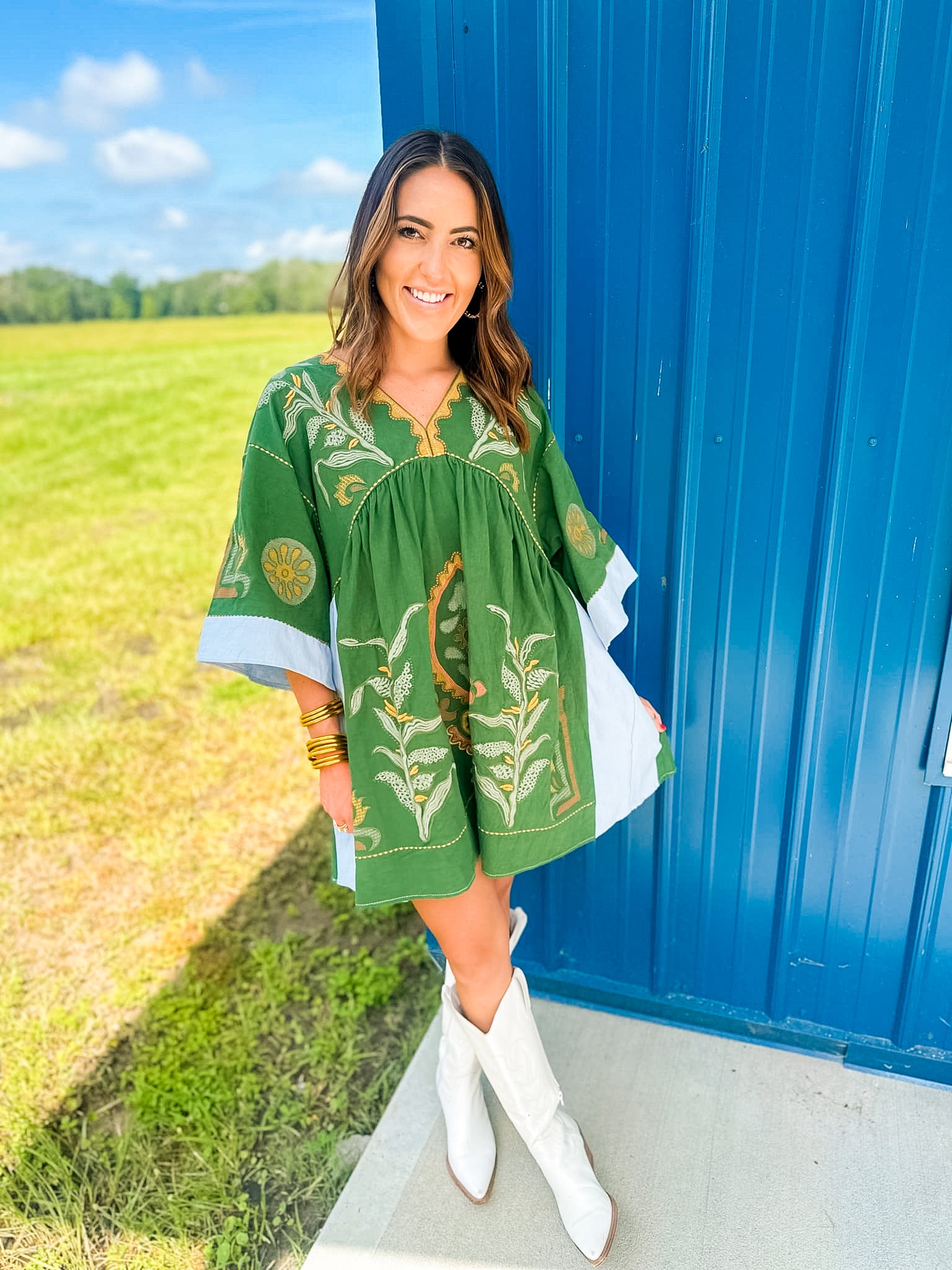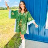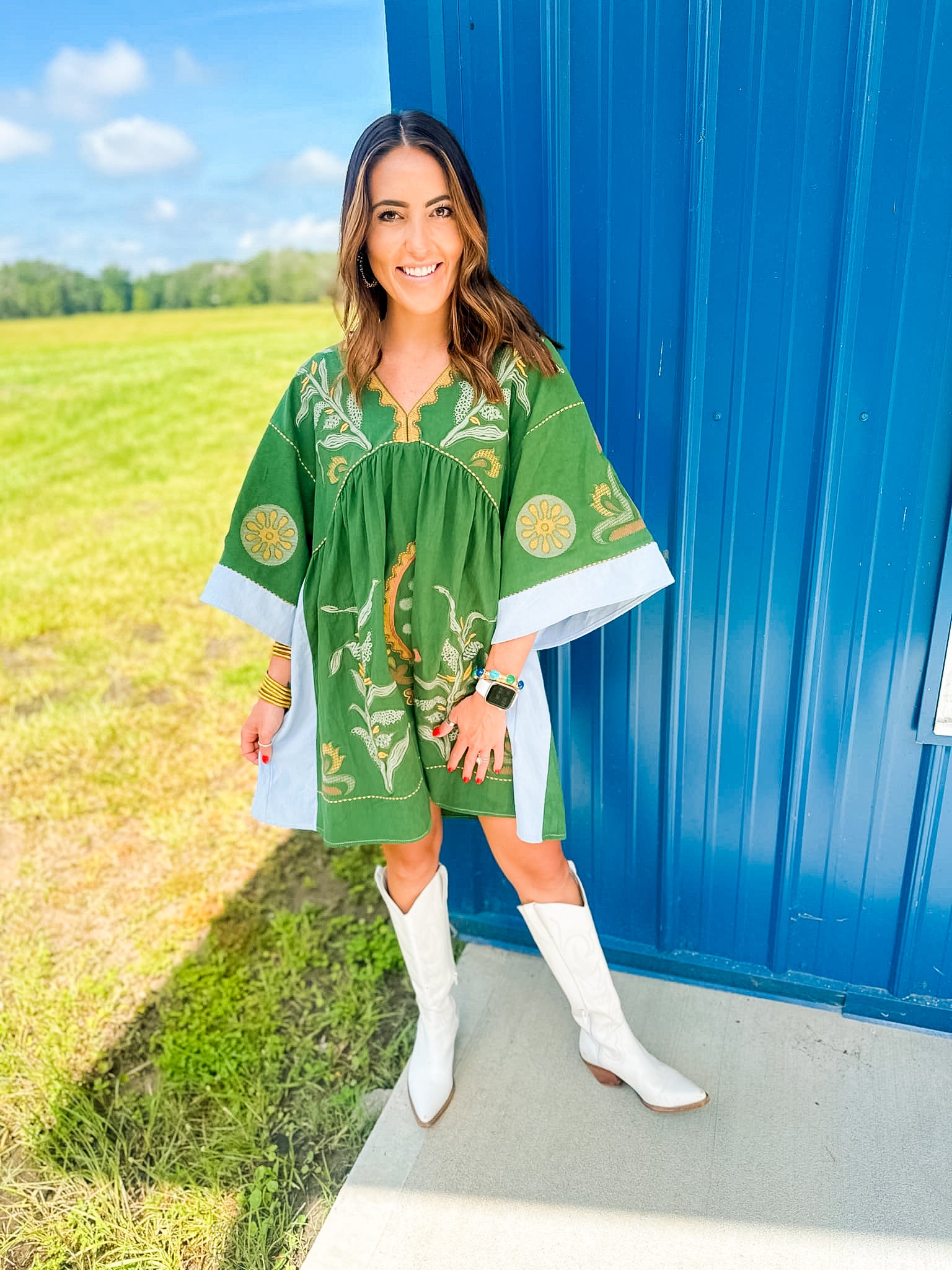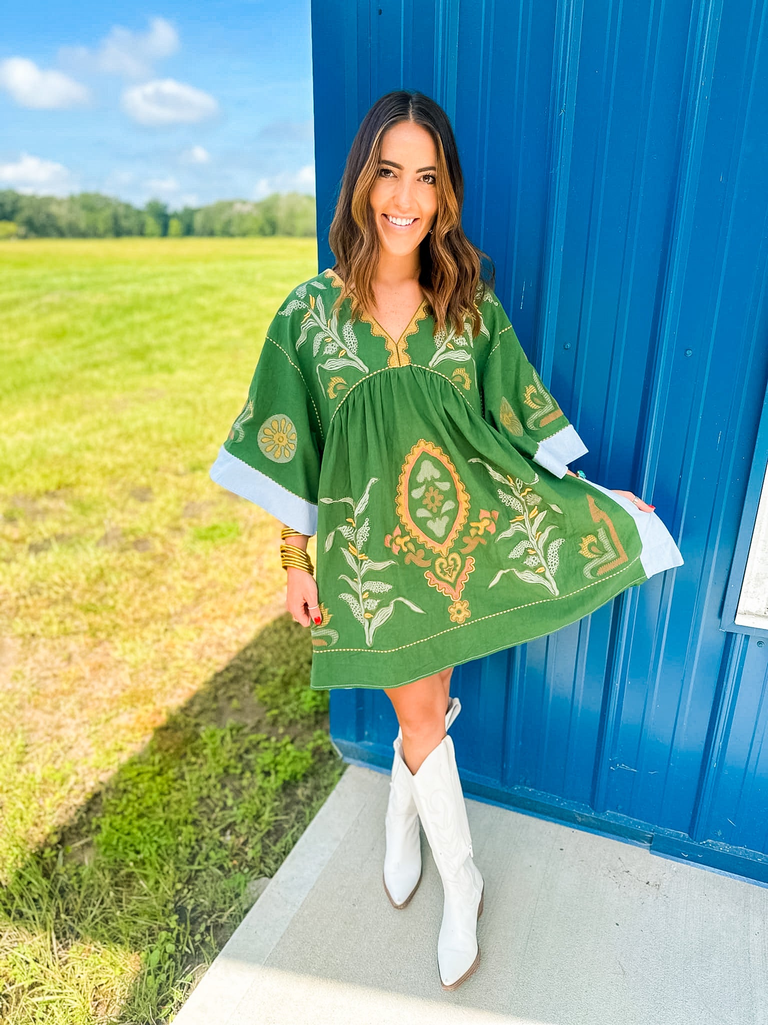 Introducing the Loved By You Embroidered Dress. This oversized, bright and colorful dress is perfect for embracing a fun and trendy boho style.