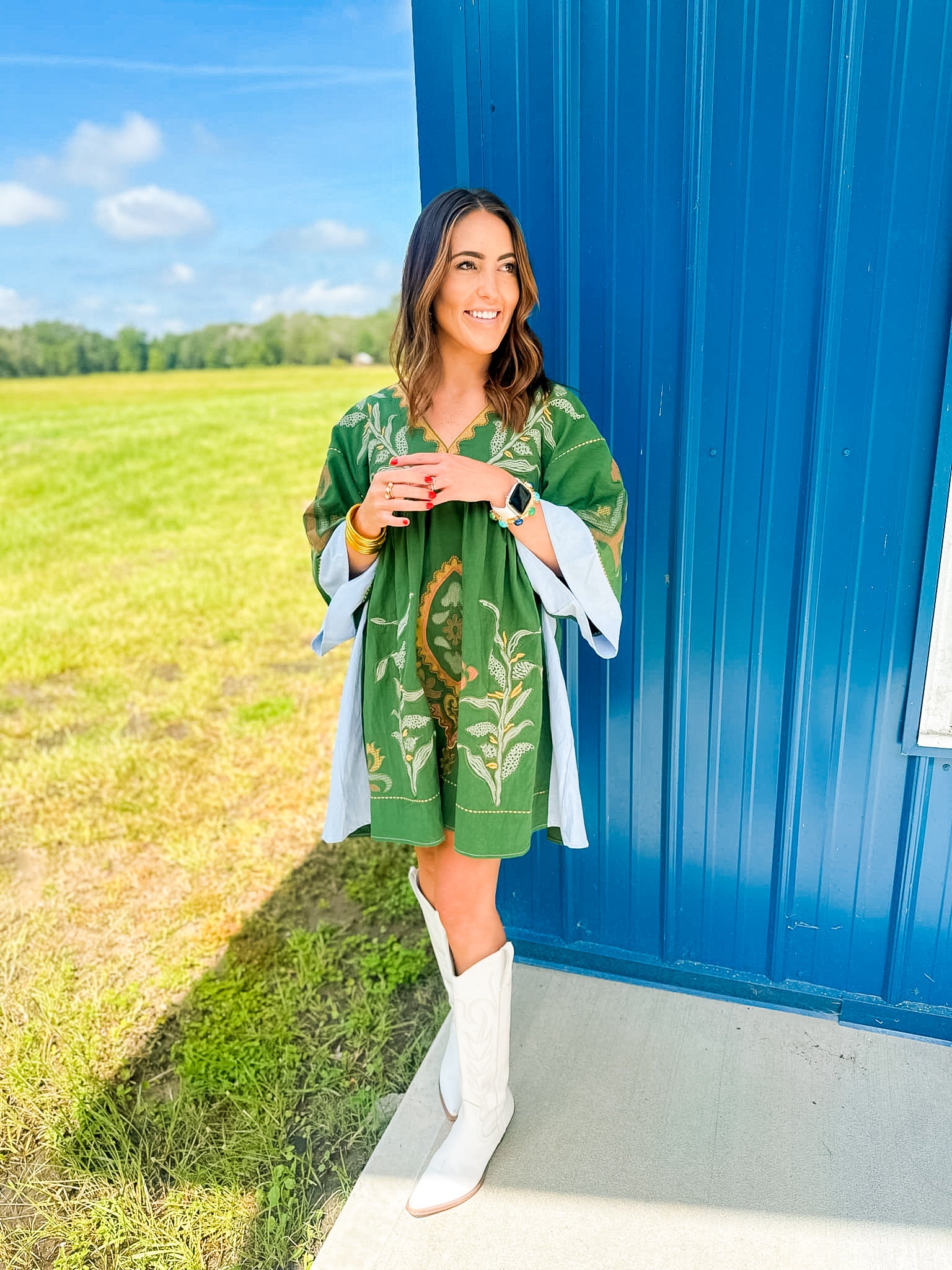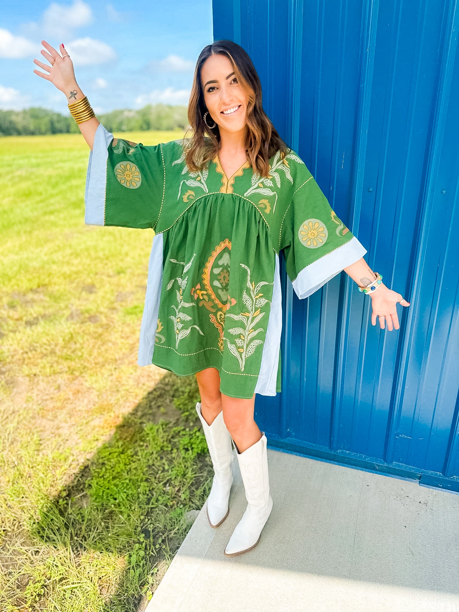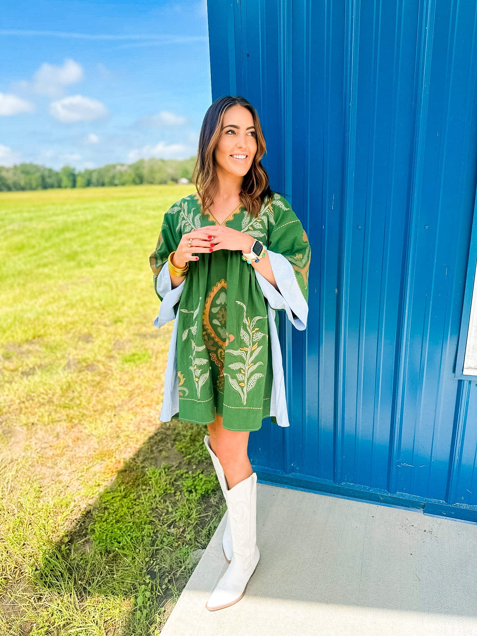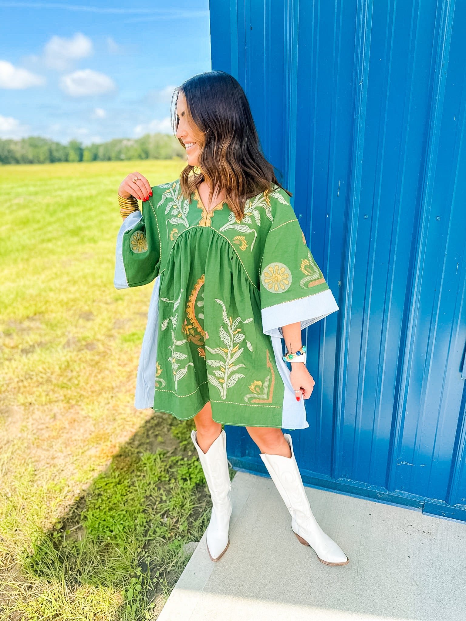 Introducing the Loved By You Embroidered Dress. This oversized, bright and colorful dress is perfect for embracing a fun and trendy boho style.