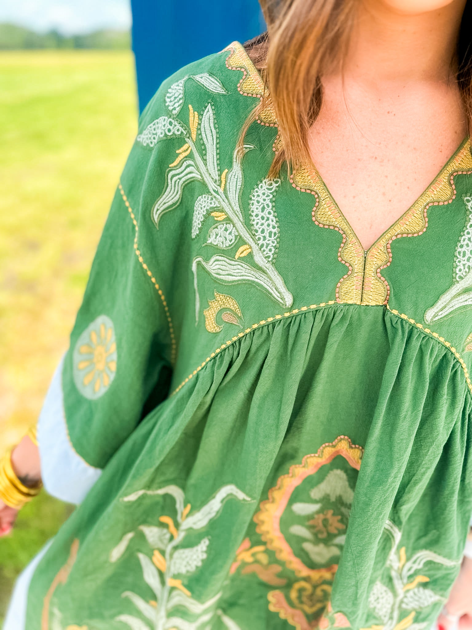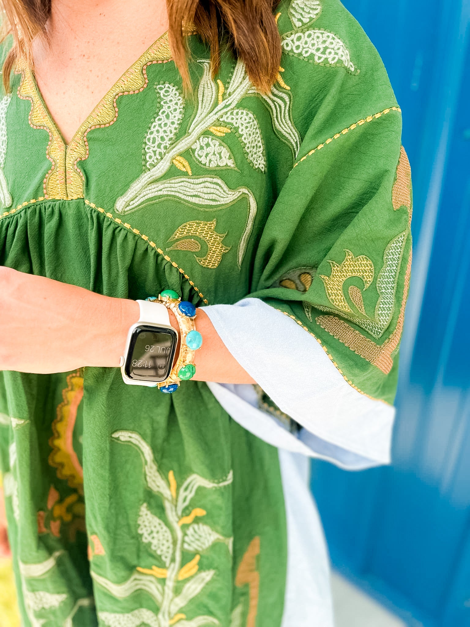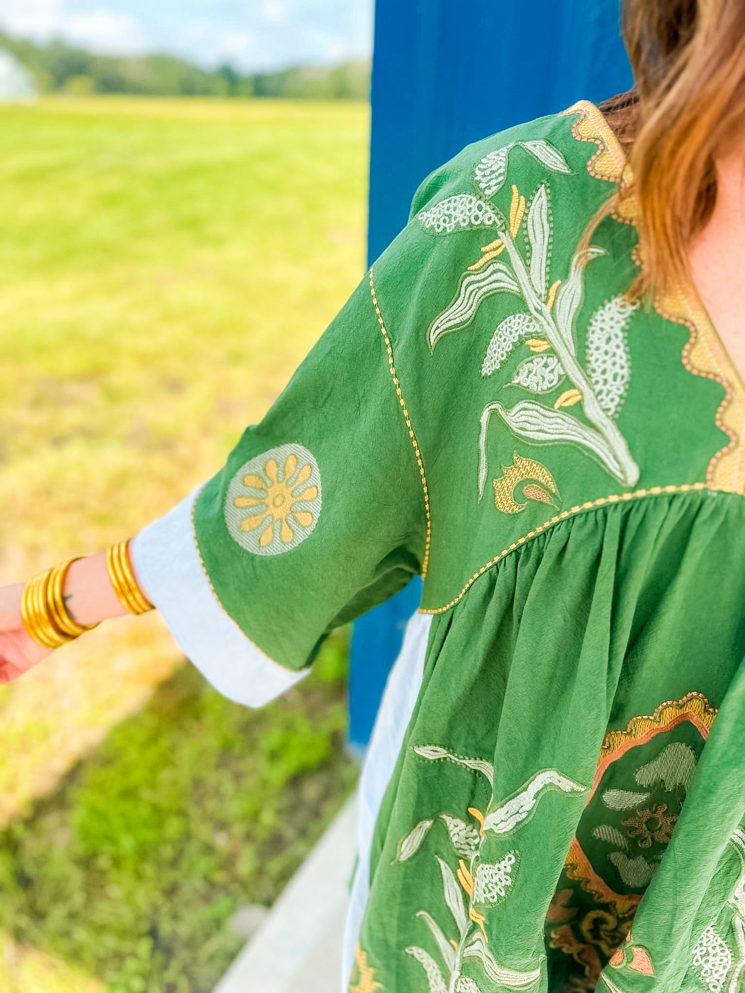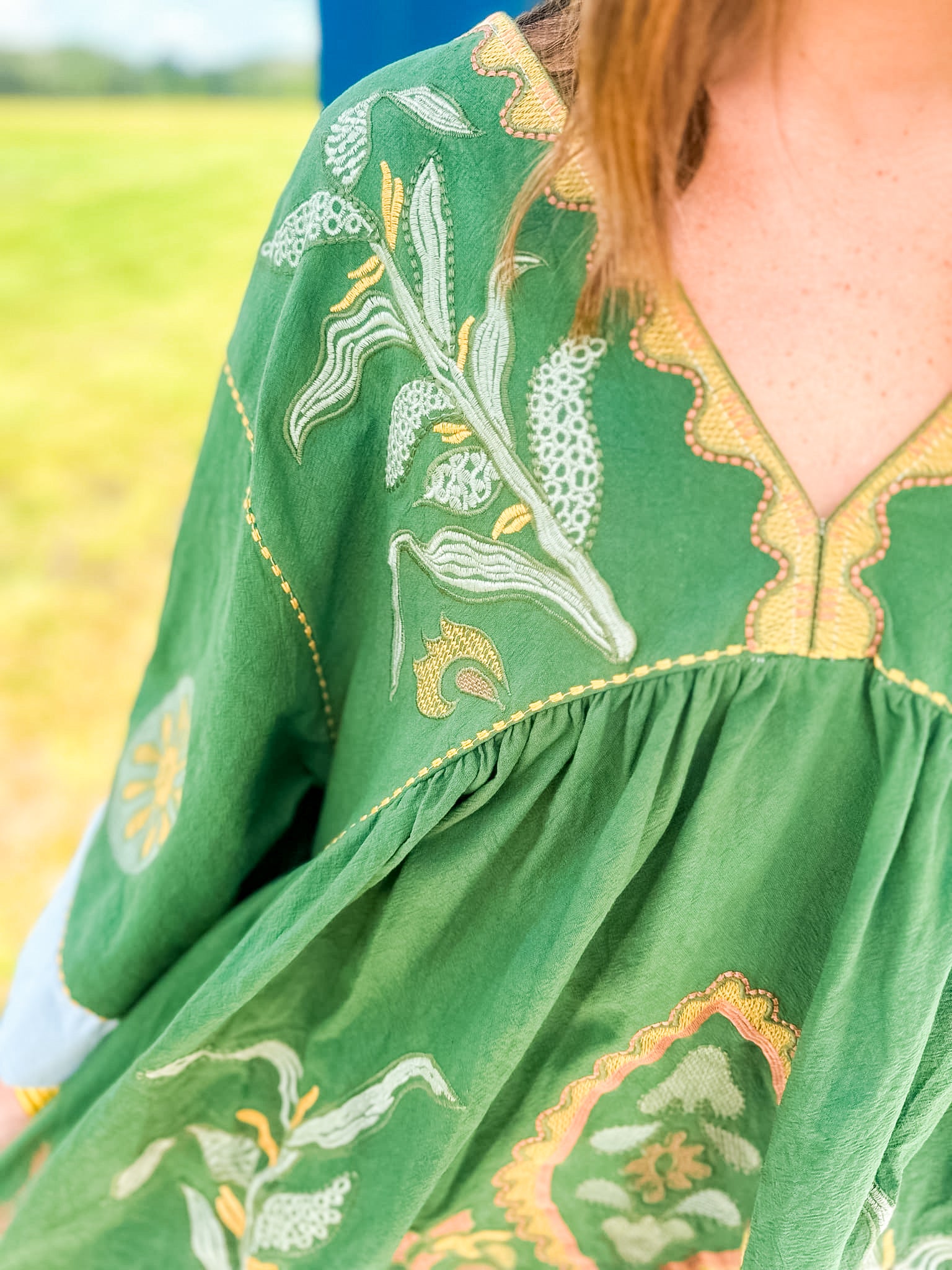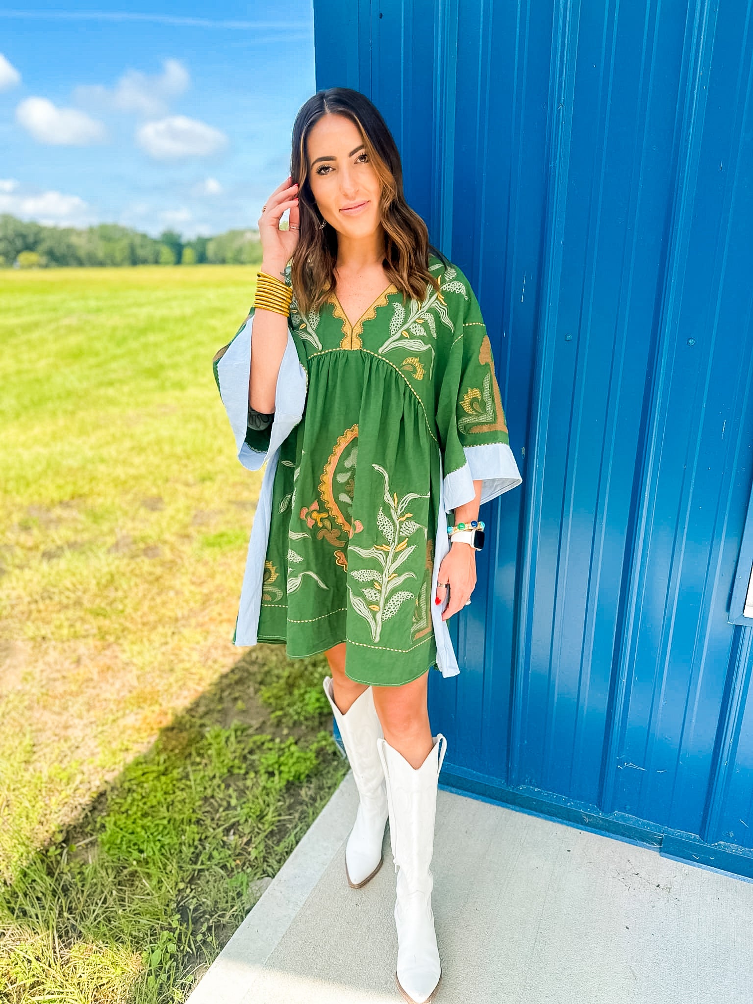 Introducing the Loved By You Embroidered Dress. This oversized, bright and colorful dress is perfect for embracing a fun and trendy boho style.