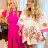 Loved By You Embroidered Dress - Hot Pink