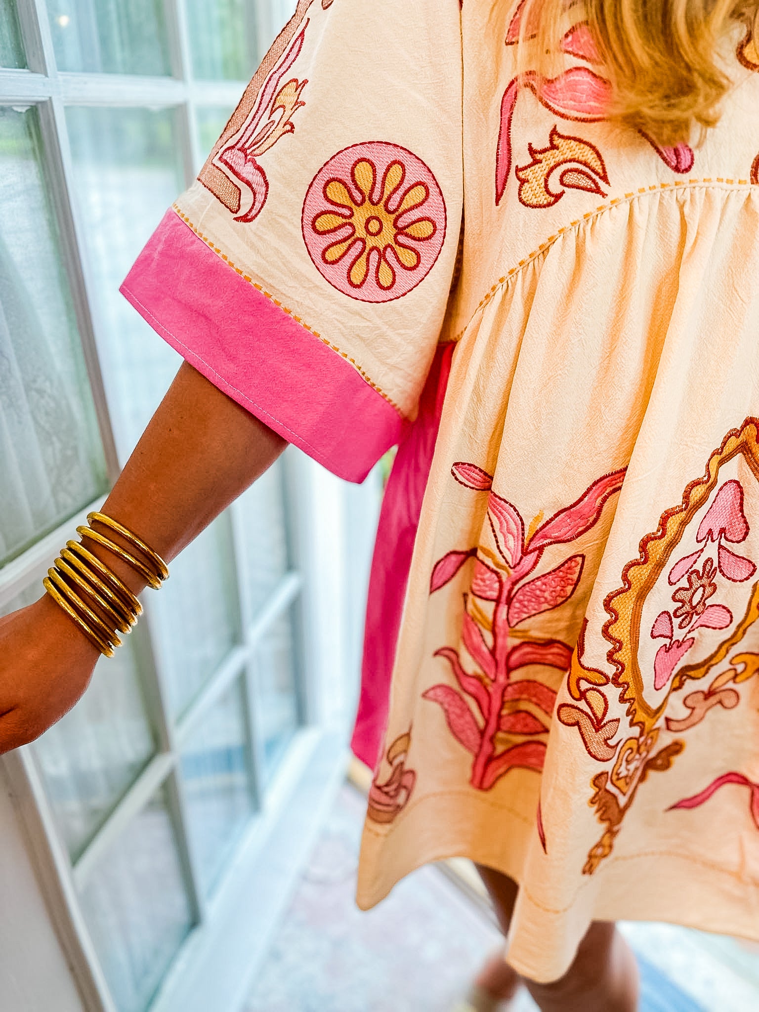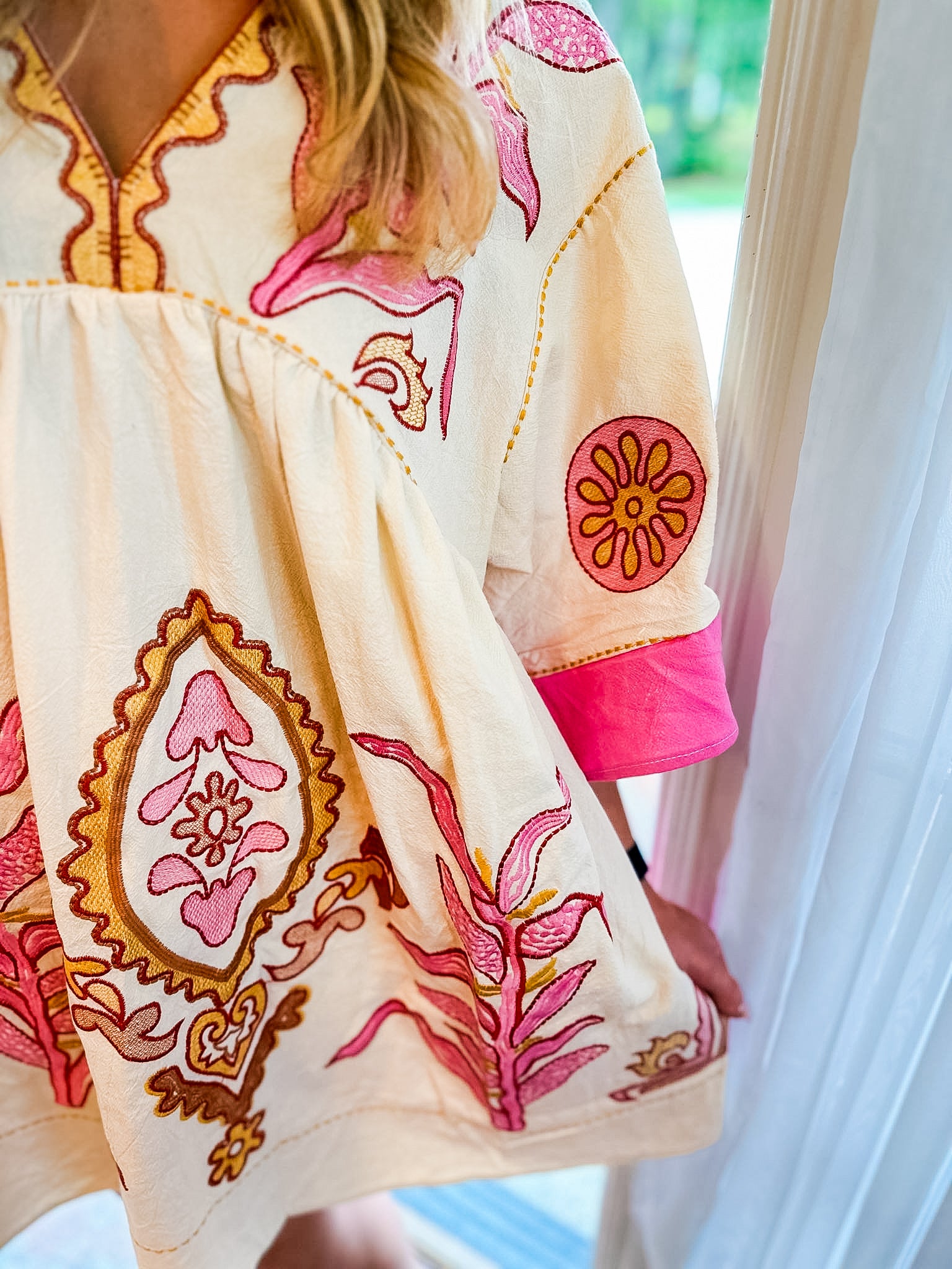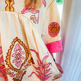 Introducing the Love By You Embroidered Dress. This oversized/relaxed fit, bright and colorful dress is perfect for embracing a fun and trendy boho style.