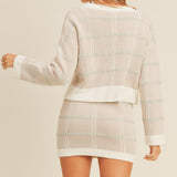 The Plaid Button Down Sweater Cardigan and Mini Skirt Set combines classic patterning with modern style. The long sleeve sweater cardigan, featuring a timeless plaid print, adds a sophisticated touch to your wardrobe while the button-down front enhances its versatile appeal. The set includes a matching mini skirt with a stylish side slit detail, crafted from the same cozy sweater fabric for a seamless look. Together, this ensemble offers a chic, coordinated outfit that balances classic elegance with contemporary flair, making it a perfect choice for both casual outings and more polished occasions.