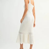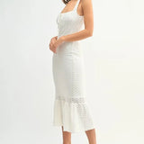 MABLE Ruffled Hem Sleeveless Crochet Knit Midi Dress