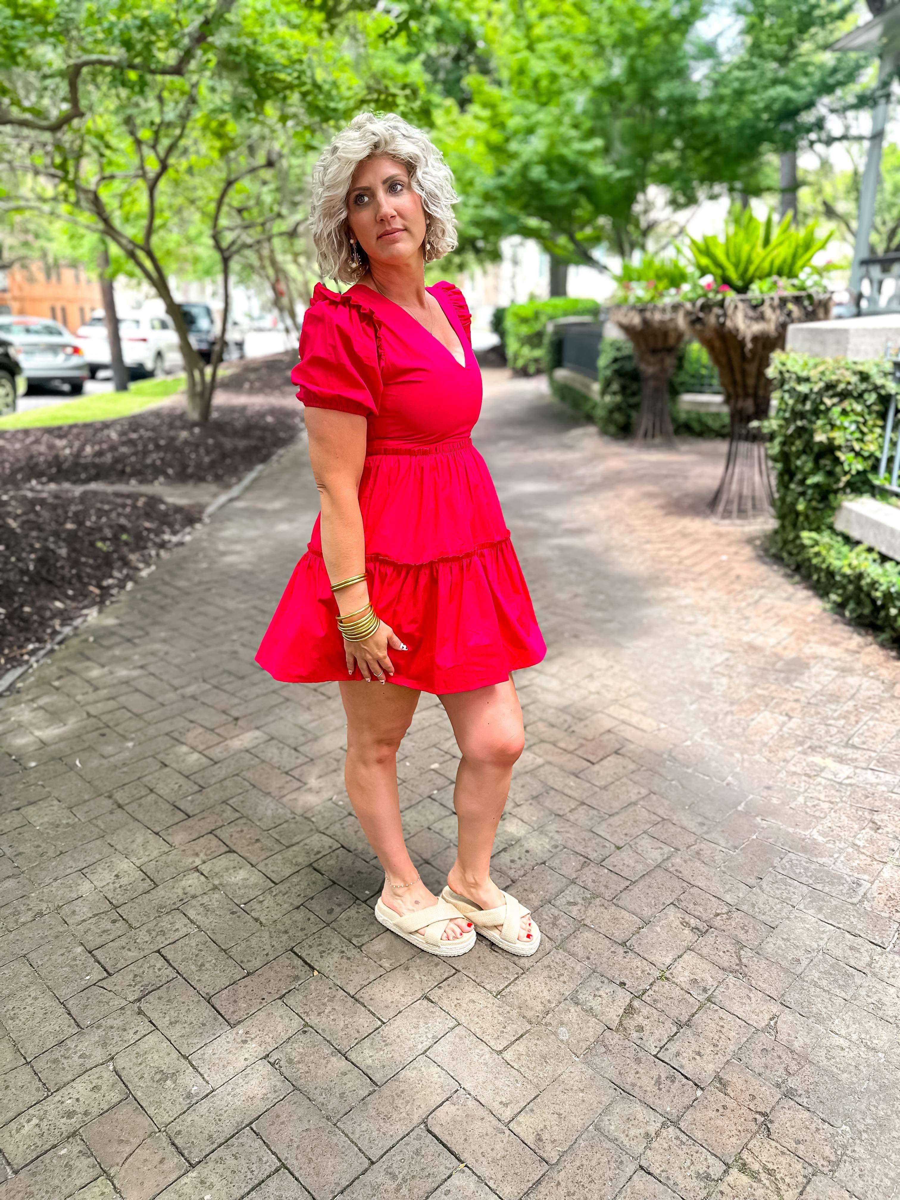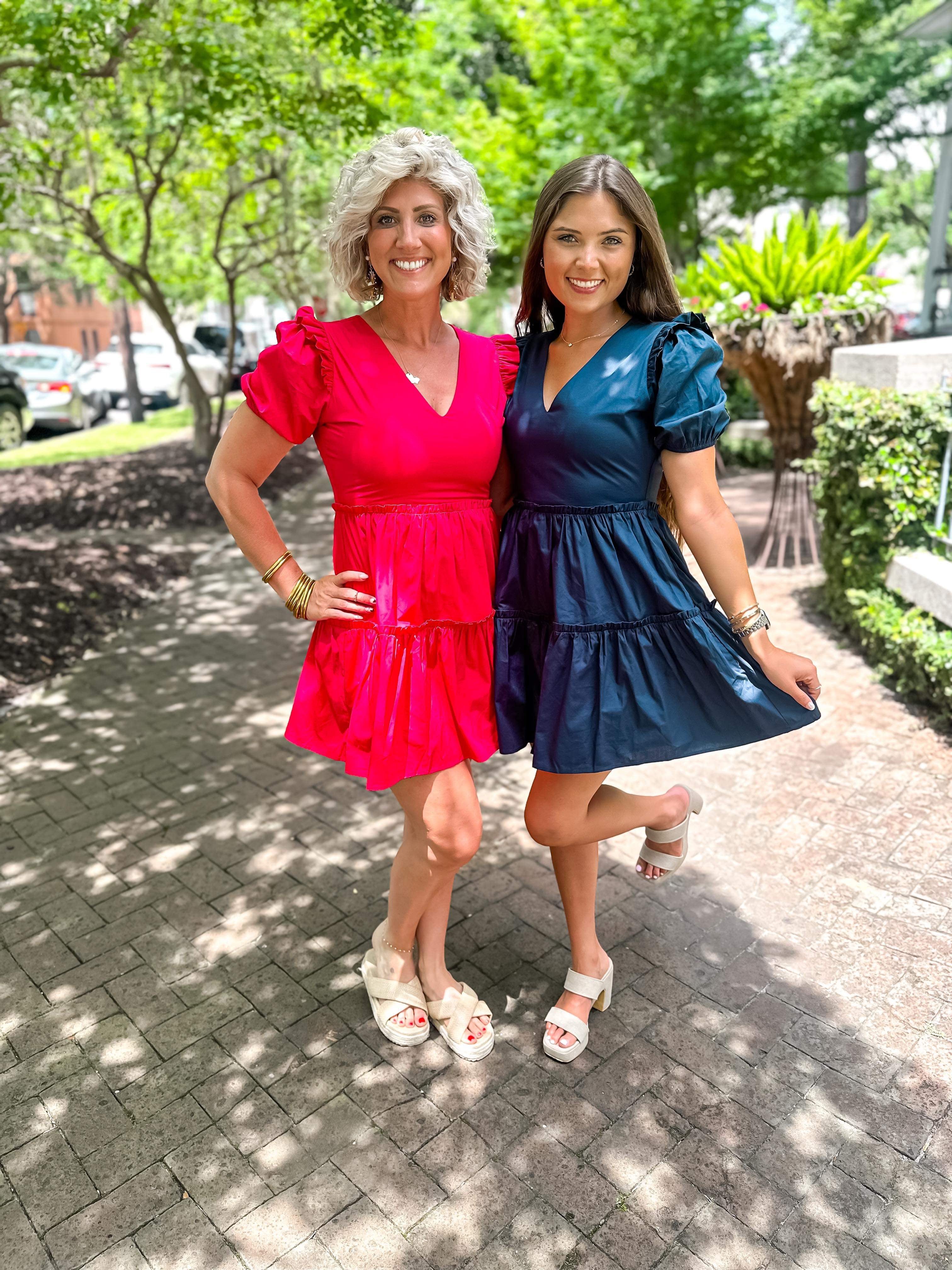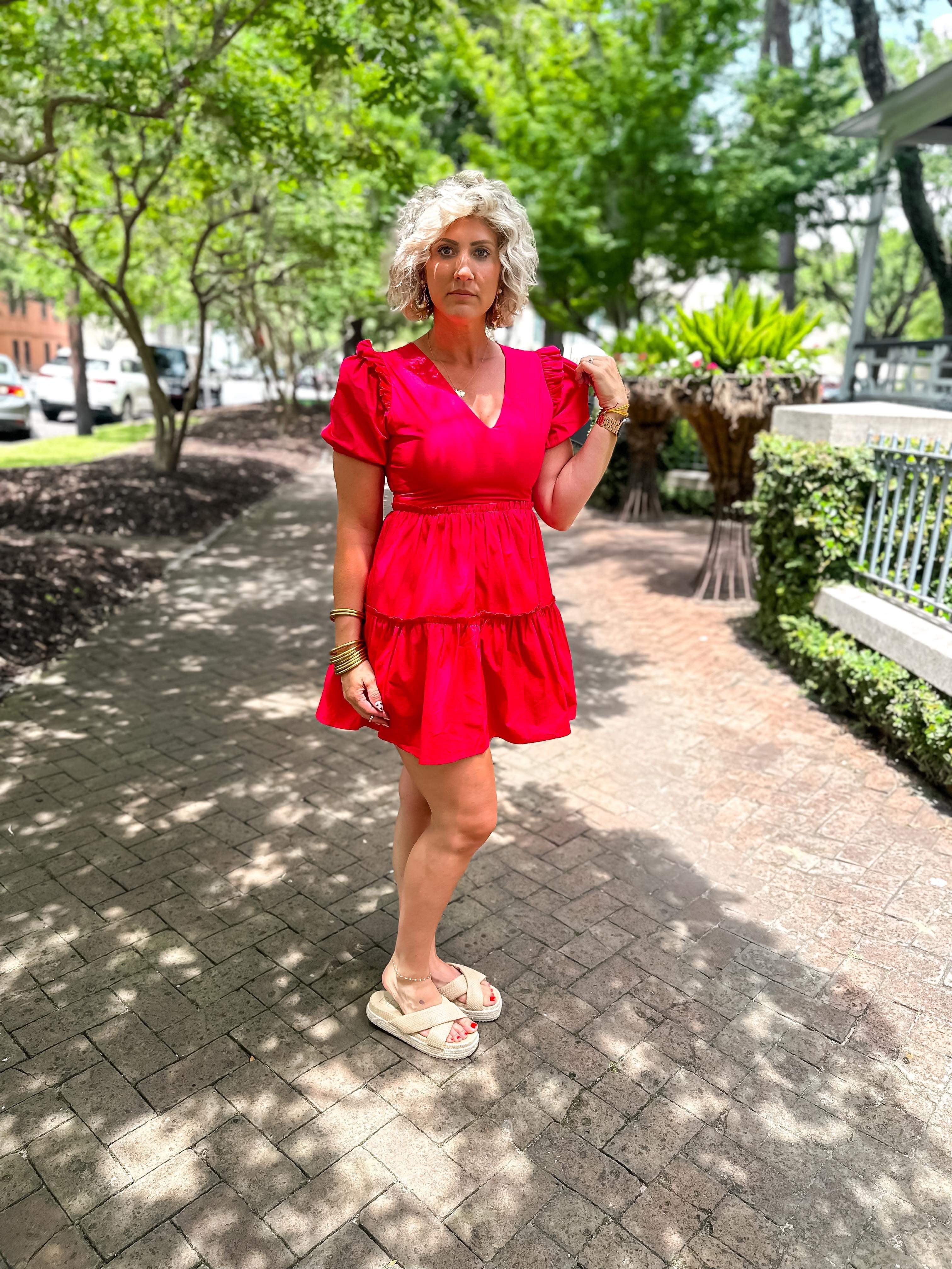 Madrigal Poplin Tiered Mini Dress- Fuschsia