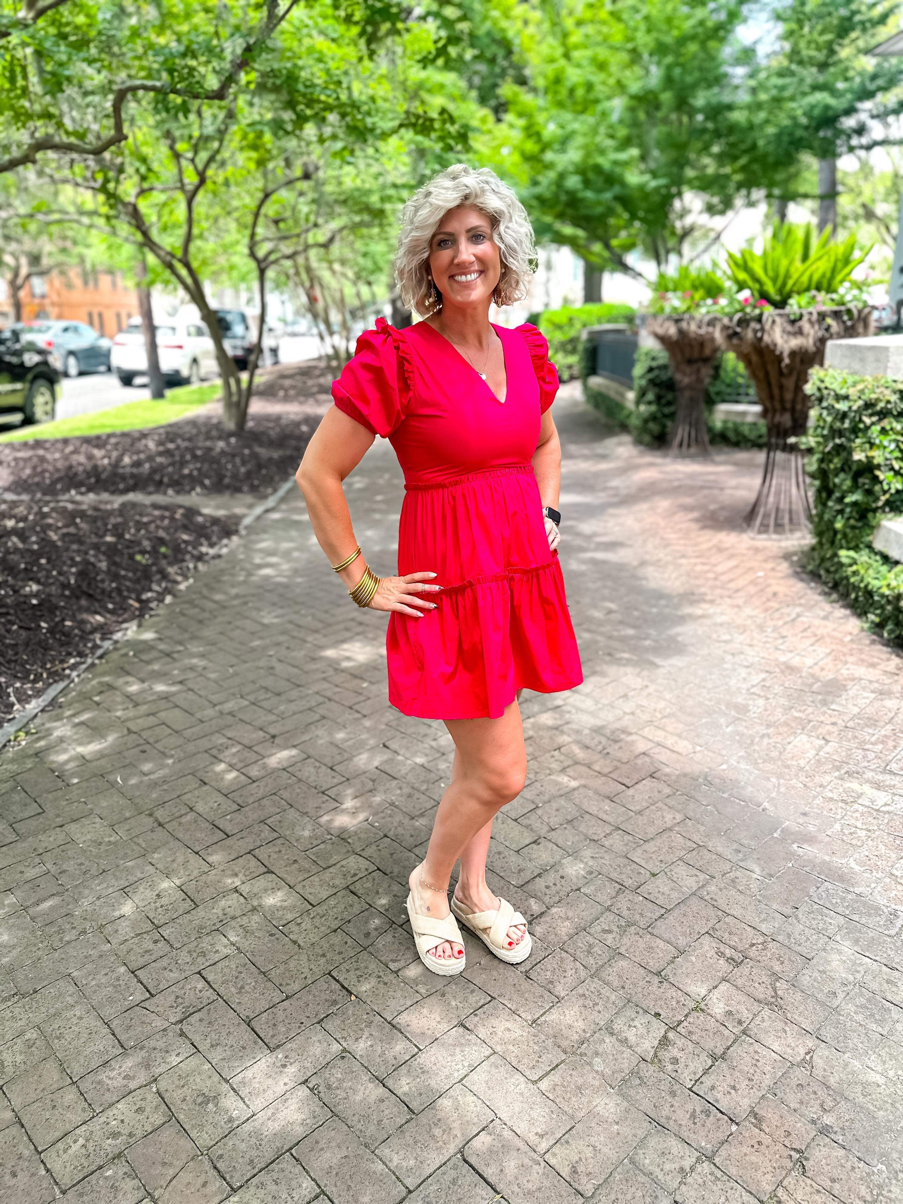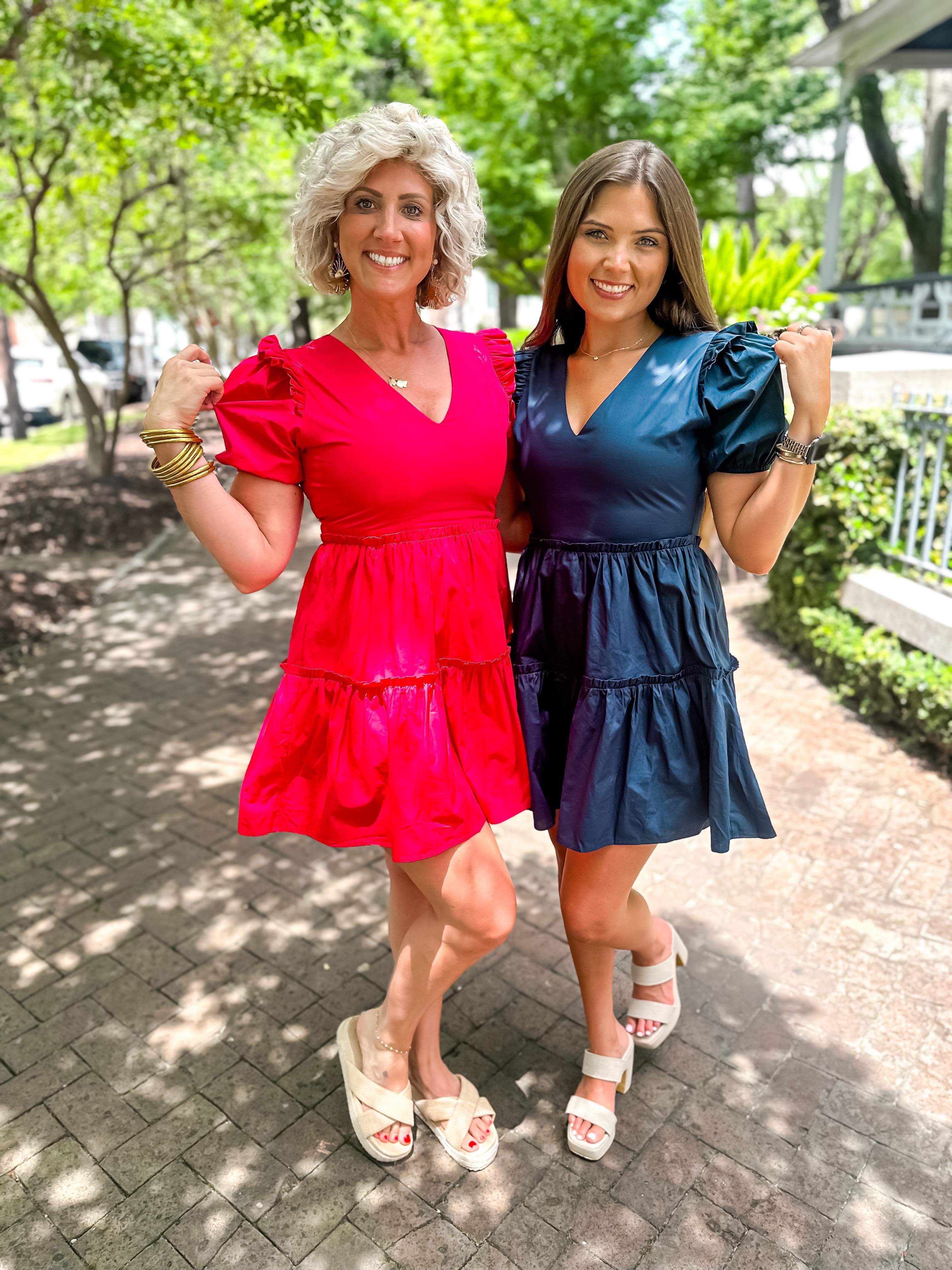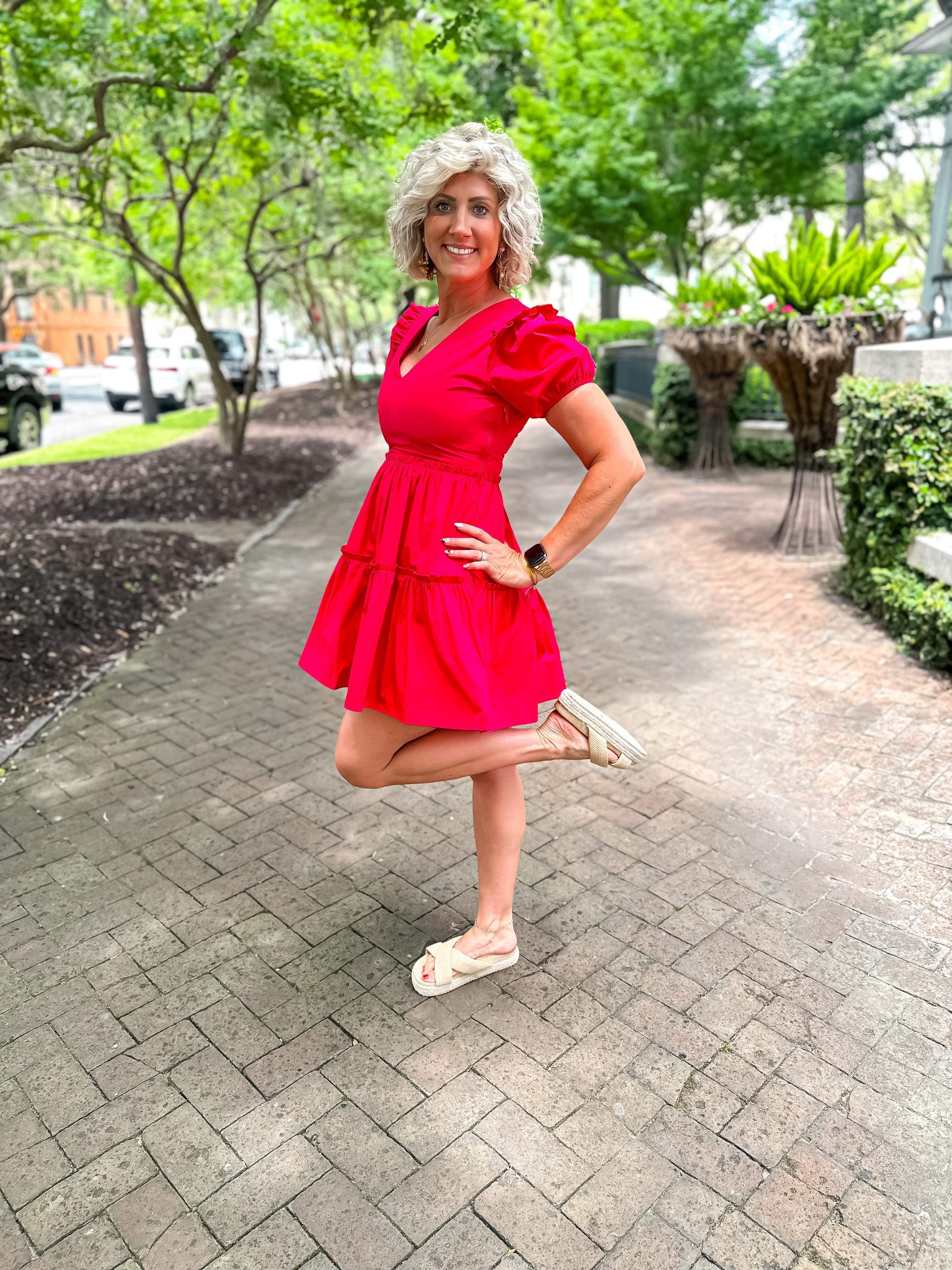 Madrigal Poplin Tiered Mini Dress- Fuschsia