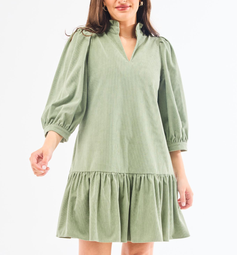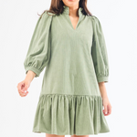 Effortlessly chic and endlessly versatile, the Naomi Dress is a perfect blend of sophistication and charm. Featuring a romantic ruffle V-neckline and 3/4 sleeves with elegant puff shoulders, this dress brings timeless femininity to your wardrobe. The contrast trim details add a modern, polished touch, while the functional pockets combine style with everyday practicality.