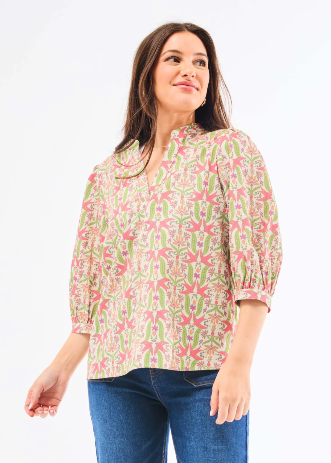 The Tamryn Top combines ease and elegance with its three-quarter sleeves, featuring a slight puff for added shape and cuff detailing for a polished look. The relaxed fit provides comfort and versatility, making it a go-to piece for both laid-back days and dressed-up moments.