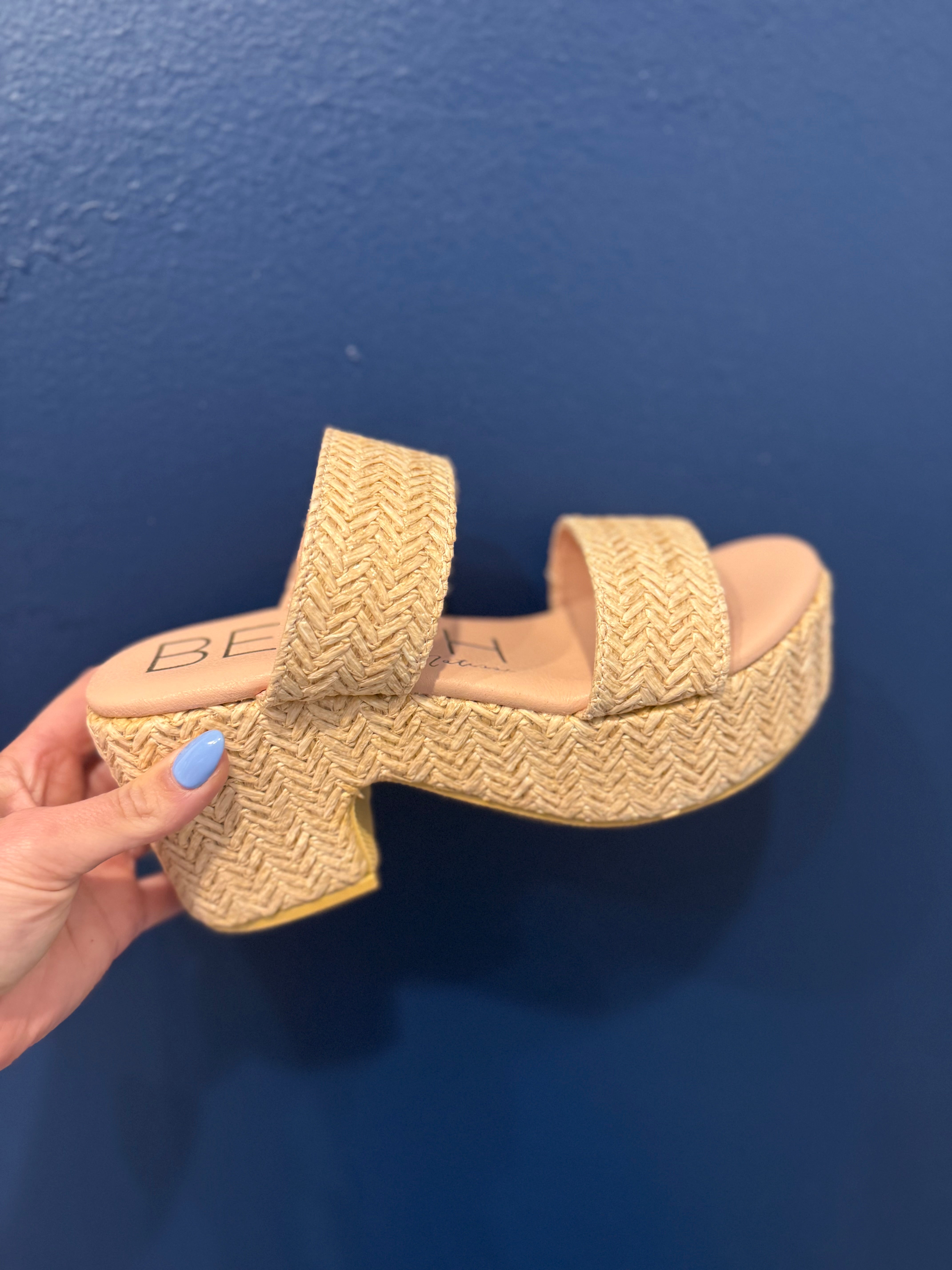 Step out this summer with the Beach By Matisse Ocean Ave platform sandal. This padded sandal features all-over raffia material for complementing your summer style, while the platform and block heel offer elevated fashion.