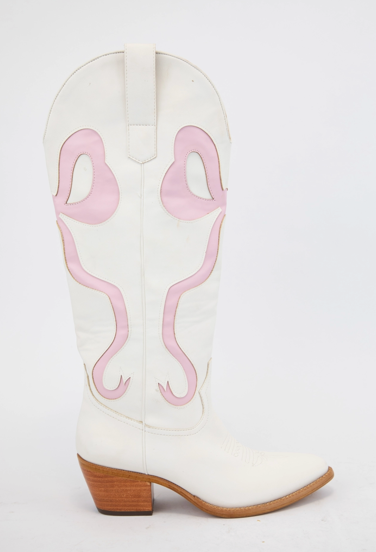 BOW SWIRLING PATTERNED WESTERN BOOTS POINTED TOE WOODEN HEEL SOFT PU HEEL HEIGHTS: 2.25" SHAFT HEIGHTS: 15.5"