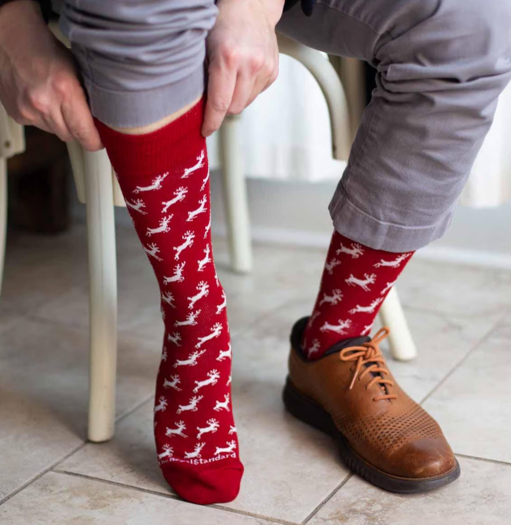 Men's Red/White Leaping Deer Socks - Final Sale