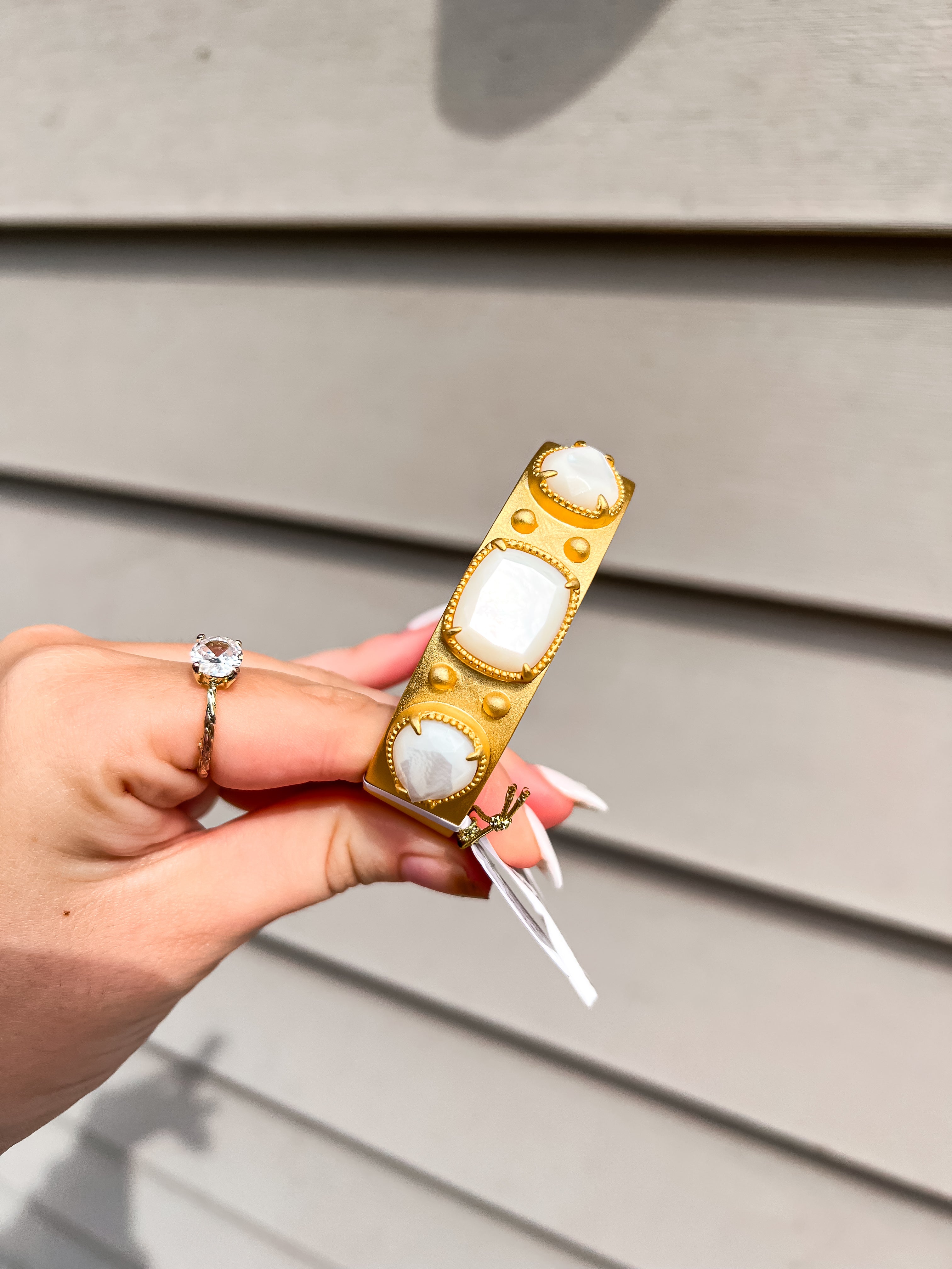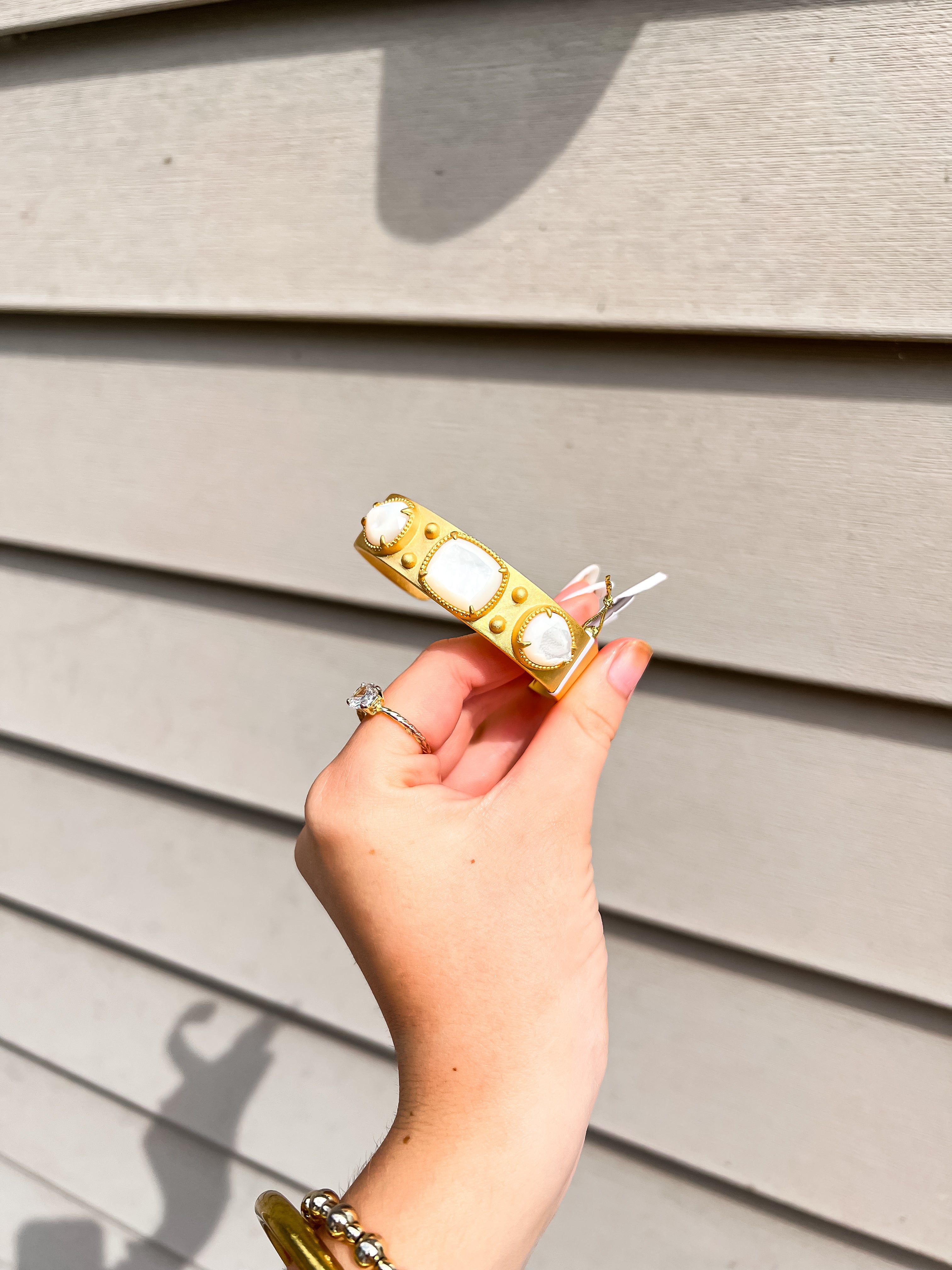 This statement cuff features 3 beautiful large stones! It looks great worn alone or stacked!