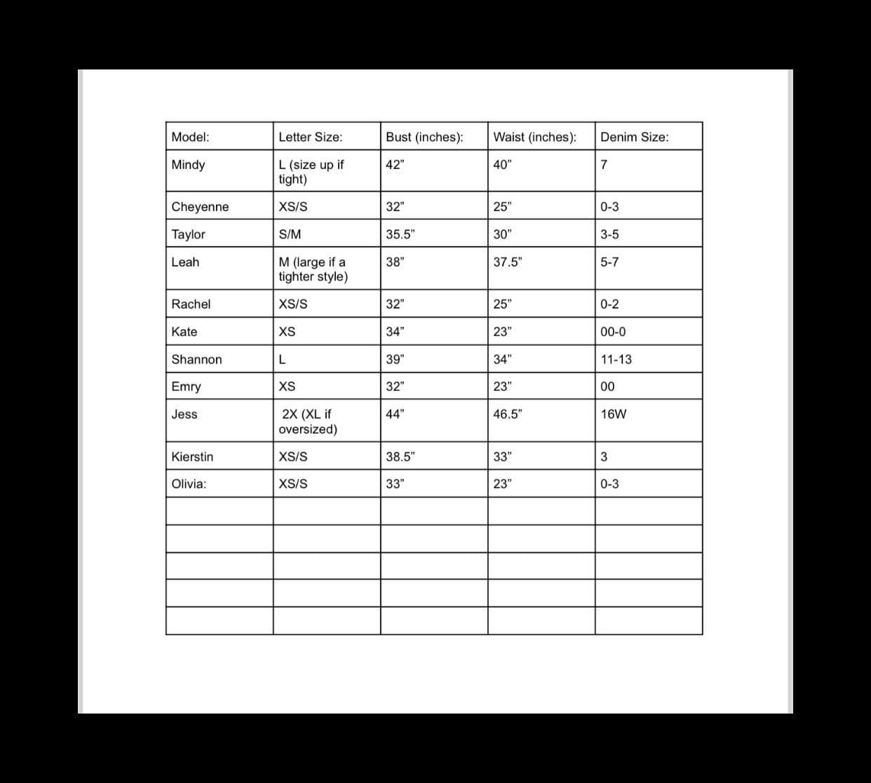 πβ¨ Introducing our adorable size chart featuring all of our lovely employees and their measurements! π From small to extra large, we've got it all covered! You can also find this chart on our app for easy reference during your shopping sprees! π Stay stylish and informed with us! ππ