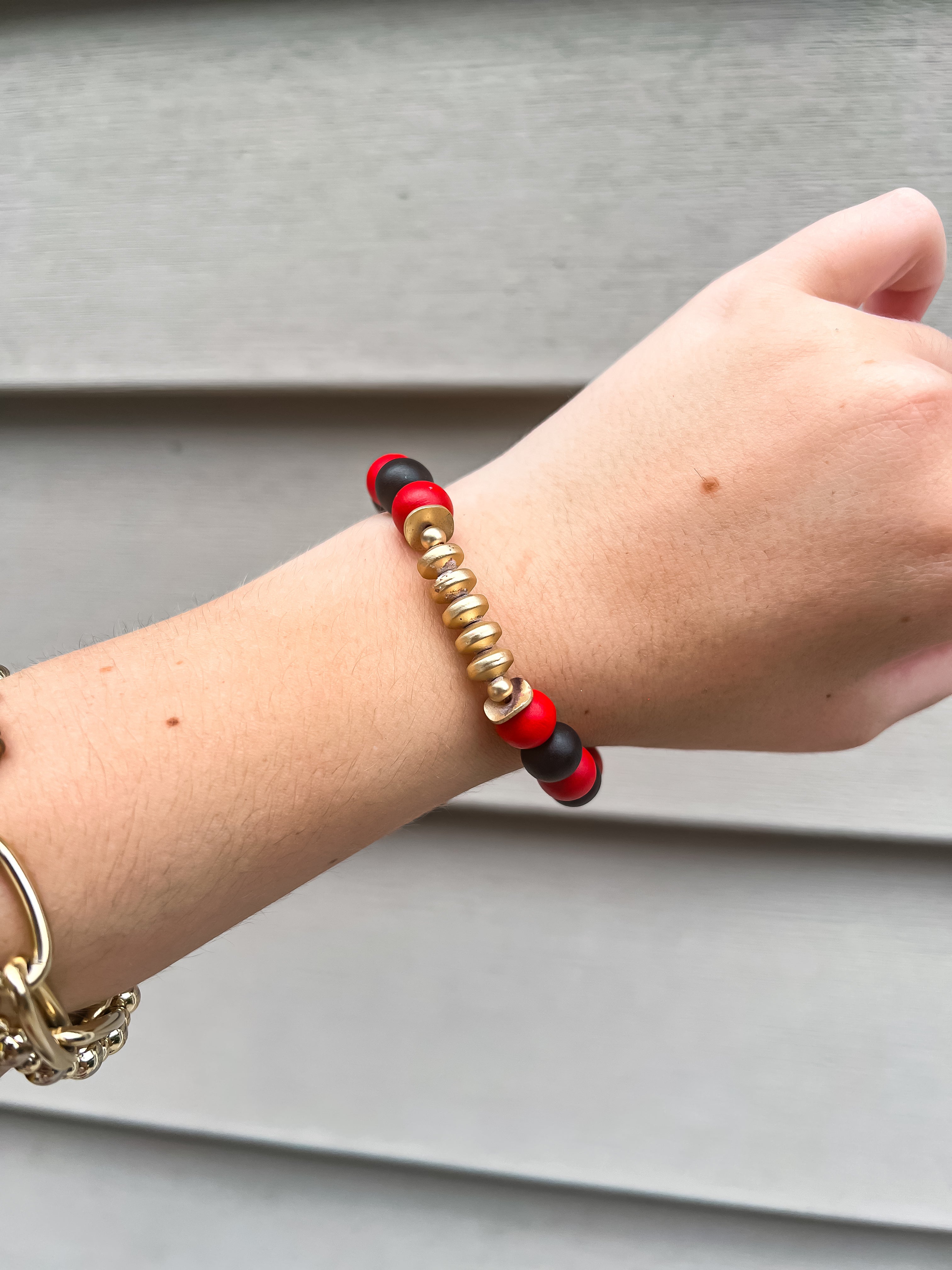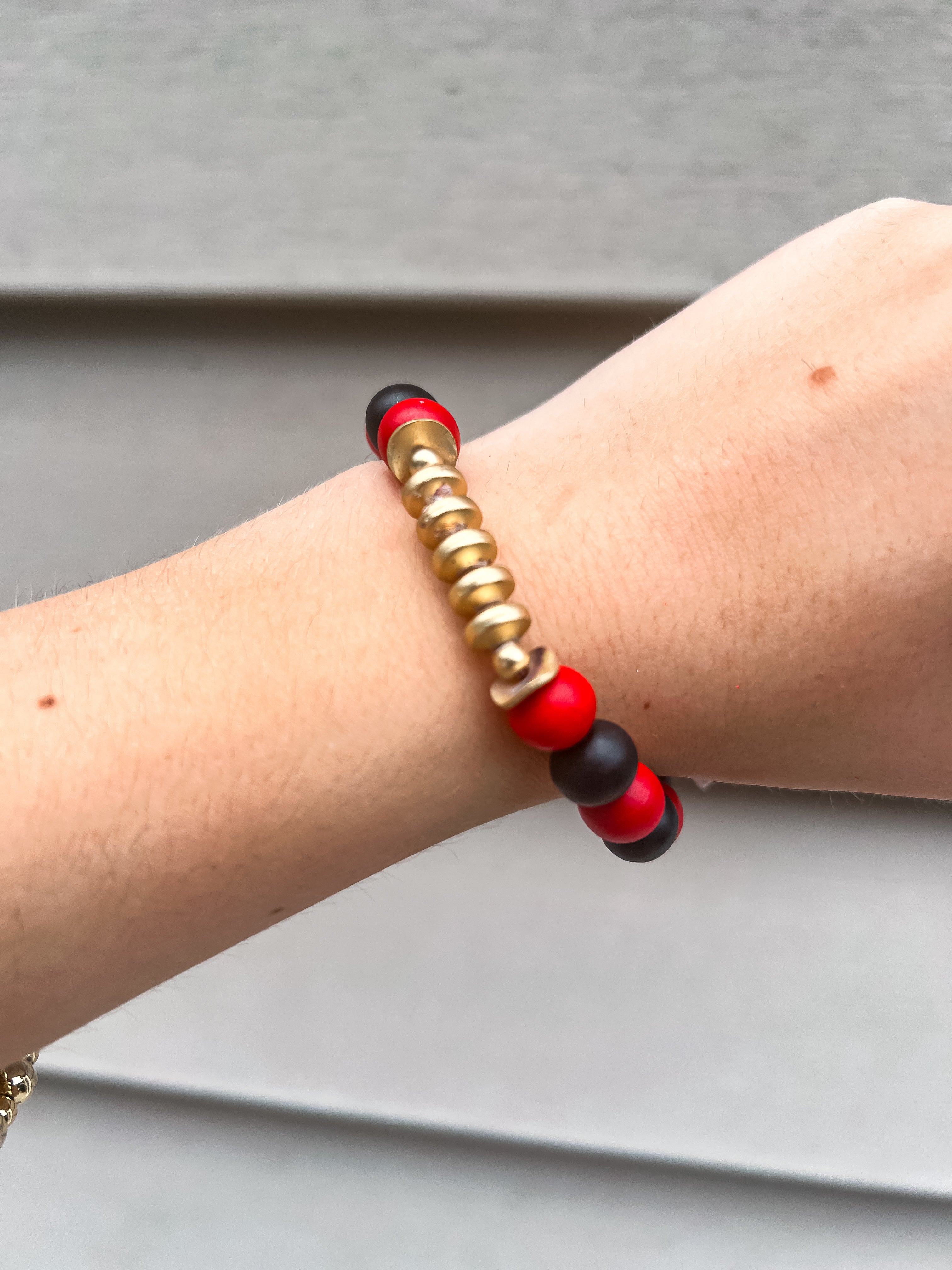 7" Stretch Wood Beaded Bracelets with Gold Accents