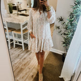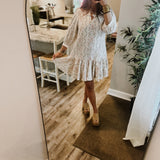 Effortlessly chic and endlessly versatile, the Naomi Dress is a perfect blend of sophistication and charm. Featuring a romantic ruffle V-neckline and 3/4 sleeves with elegant puff shoulders, this dress brings timeless femininity to your wardrobe. The contrast trim details add a modern, polished touch, while the functional pockets combine style with everyday practicality.