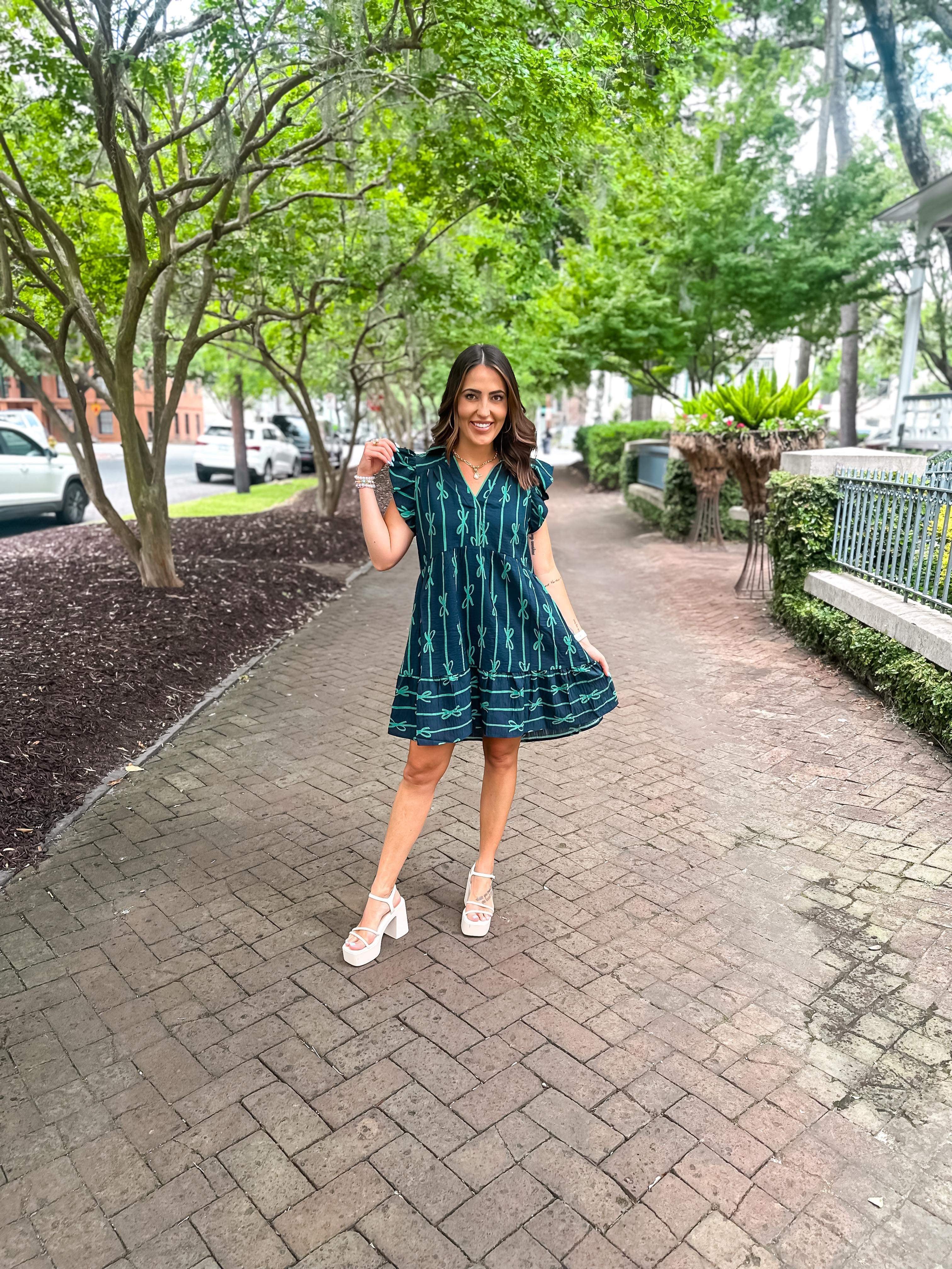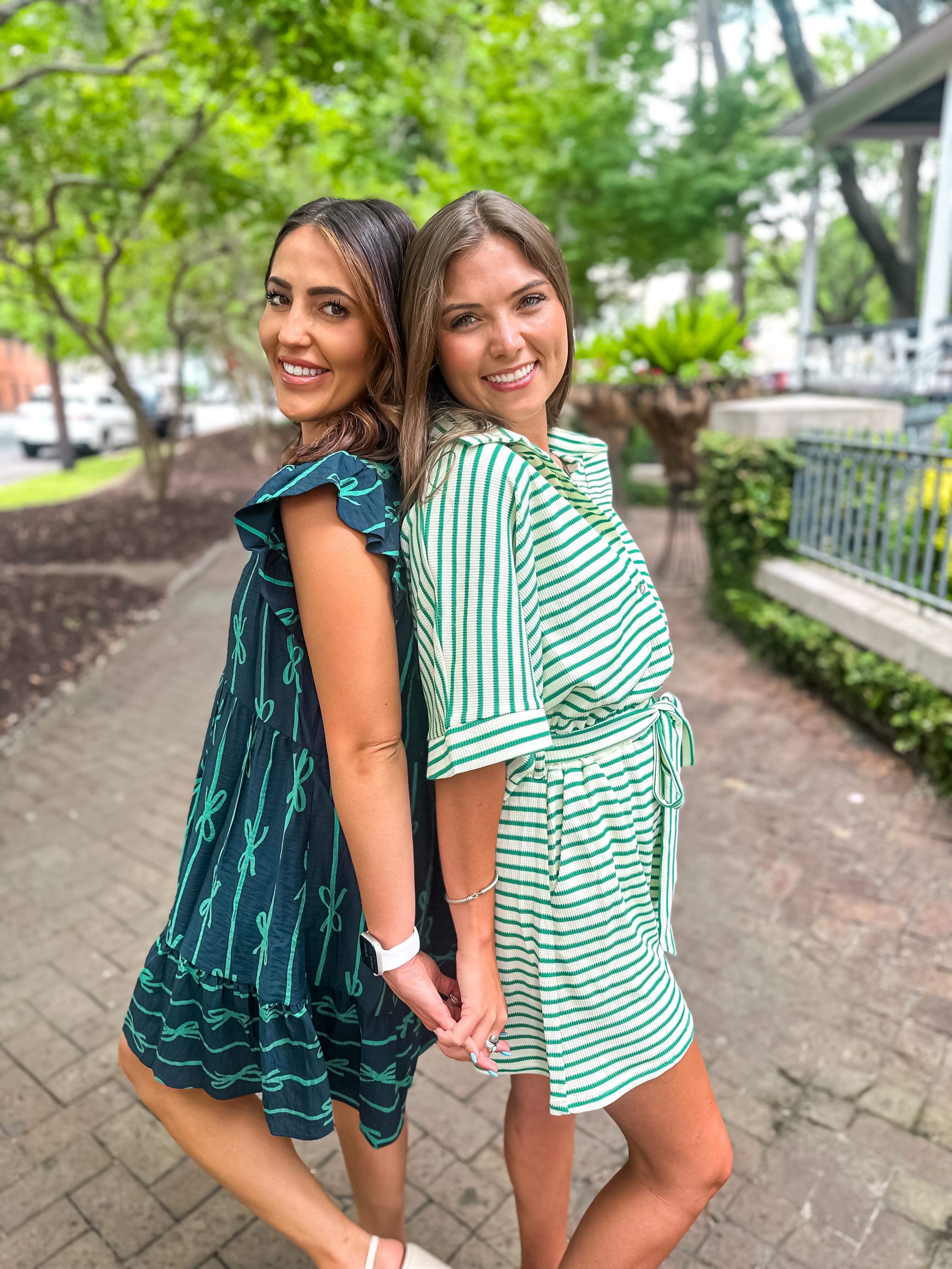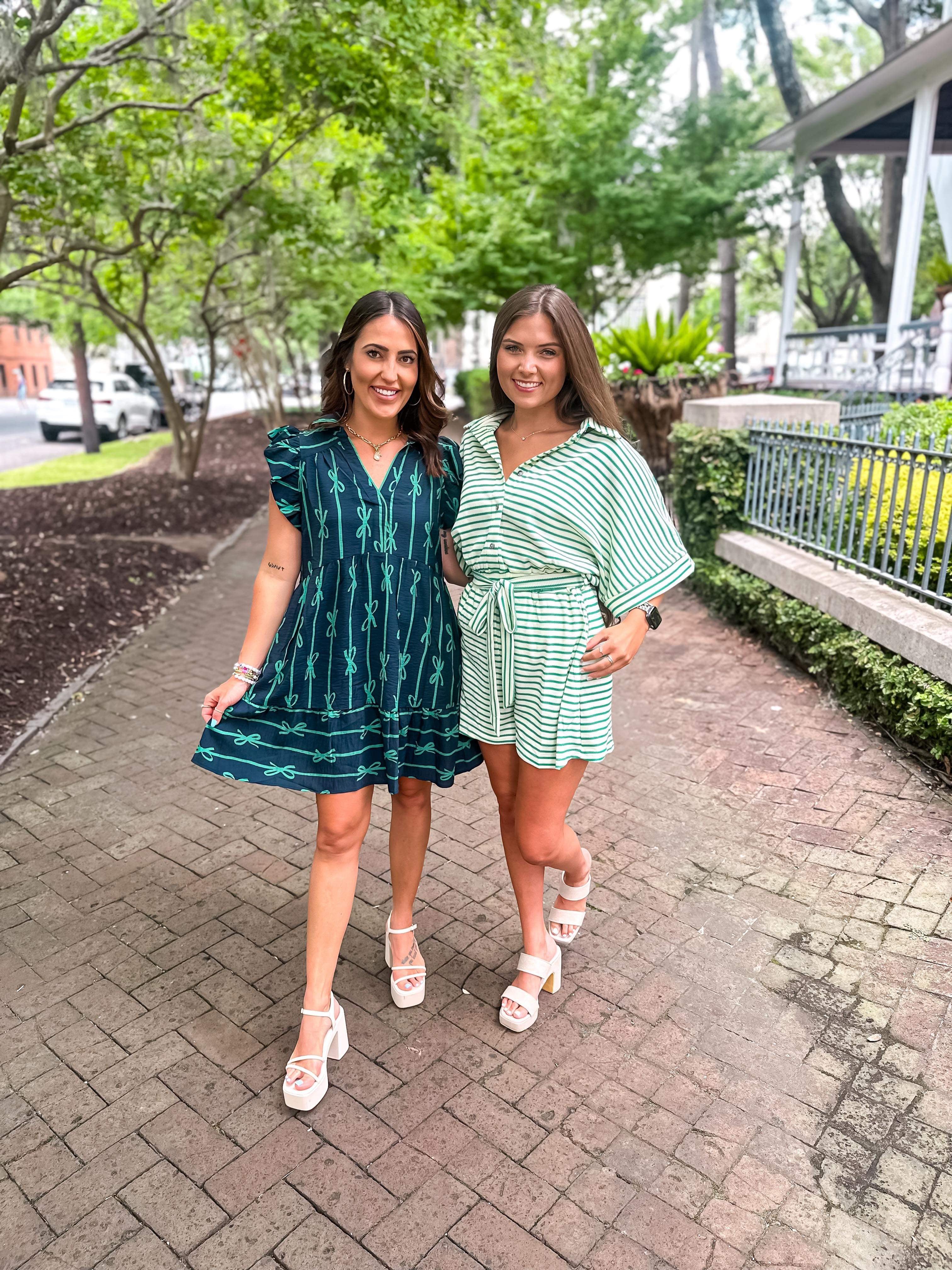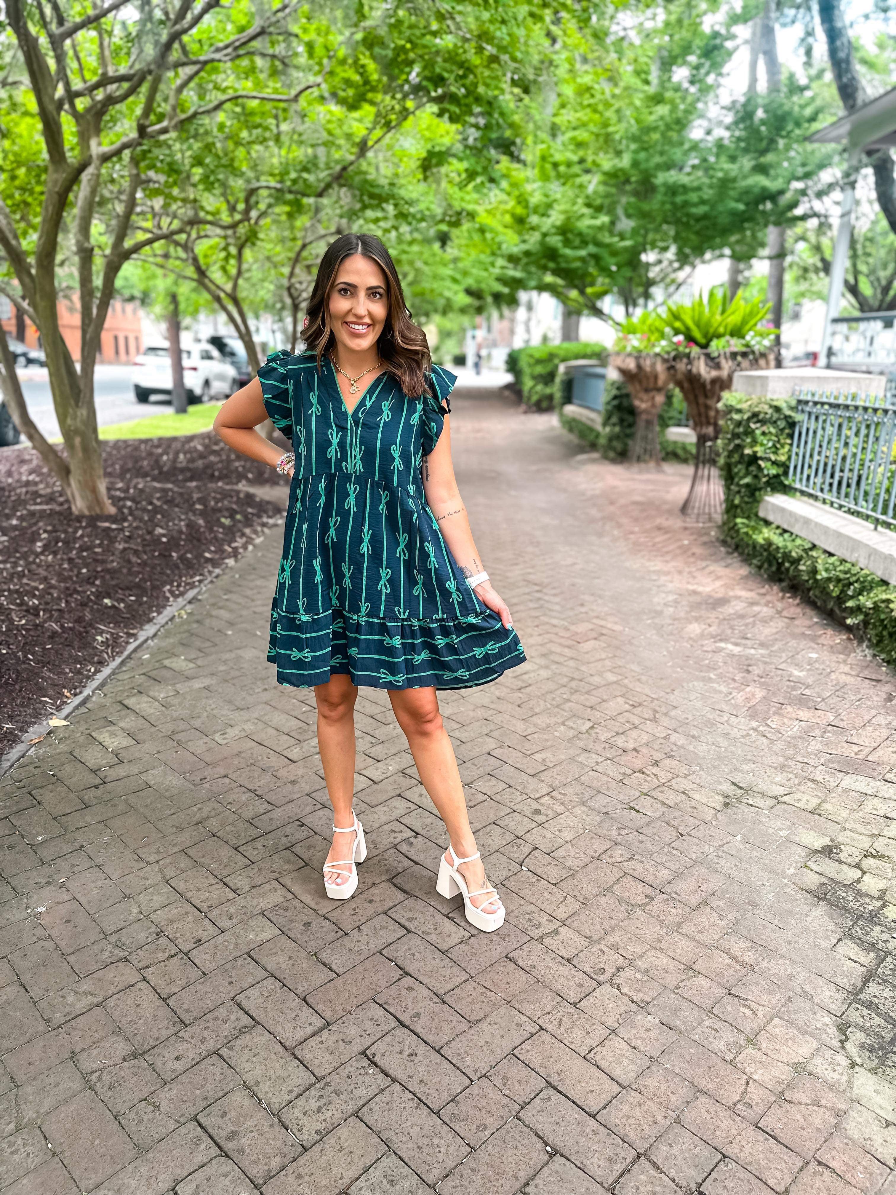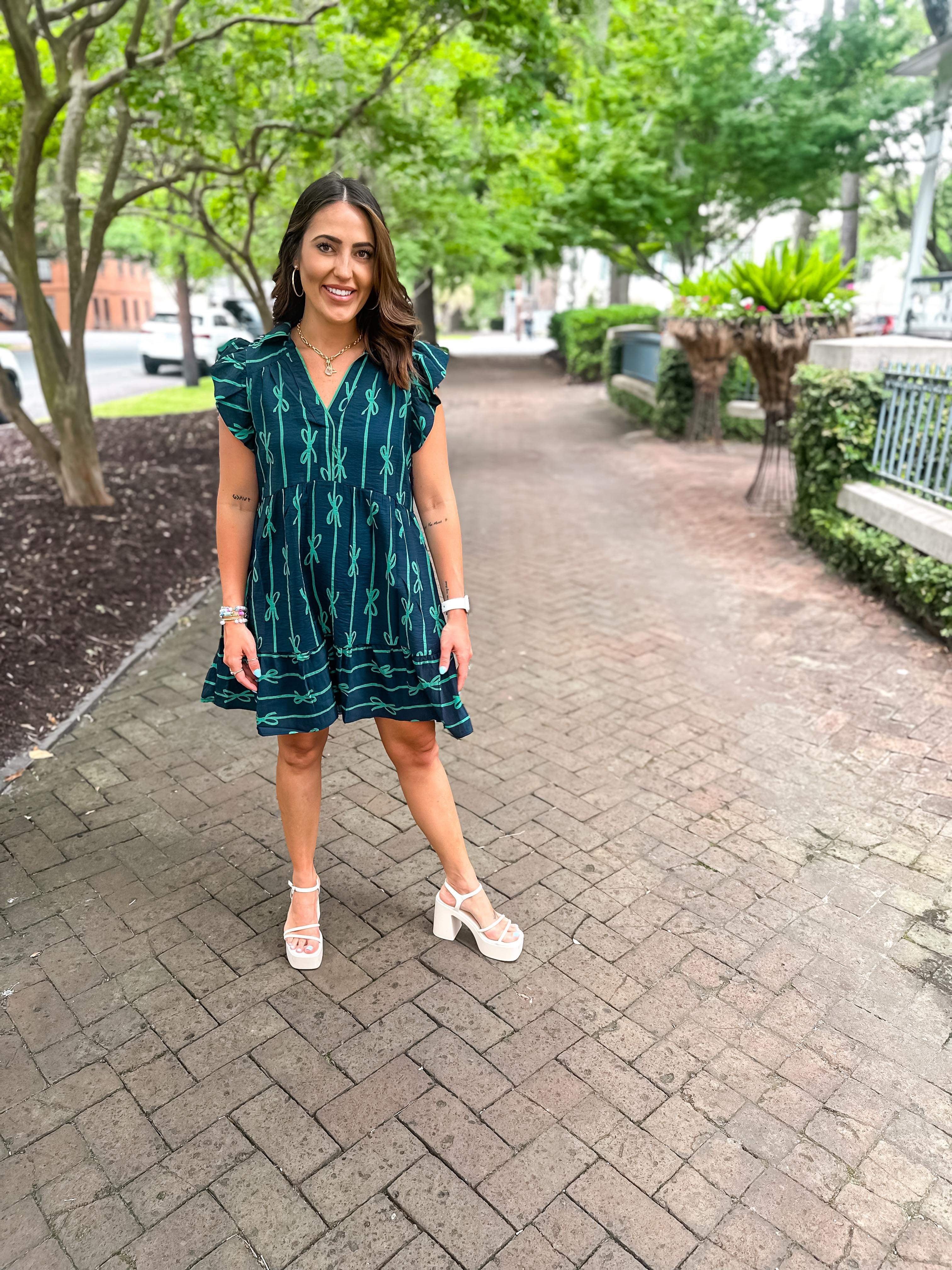 Embrace timeless coastal charm with our beautiful Nautical Noir Dress. It captivates a blend of elegance and nautical flair. Crafted on an off-white base. This dress is adorned with chic black bows throughout adding a touch of whimsy and sophistication. The sleeveless design features delicate ruffle detailing along the sleeves, evoking the gentle look. It features a drop-hem ruffle at the bottom of the dress adds movement and grace, mirroring the fluidity of the sea. Whether you're strolling along the boardwalk or attending a beachside soiree, this dress exudes effortless chic, making it a standout choice for any coastal occasion.