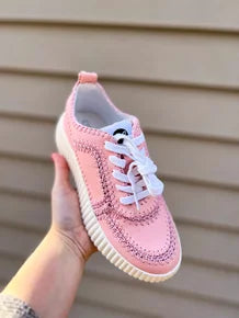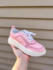Vegan, platform sneaker with patchwork style detail. A HUGE dupe on a designer brand!