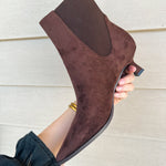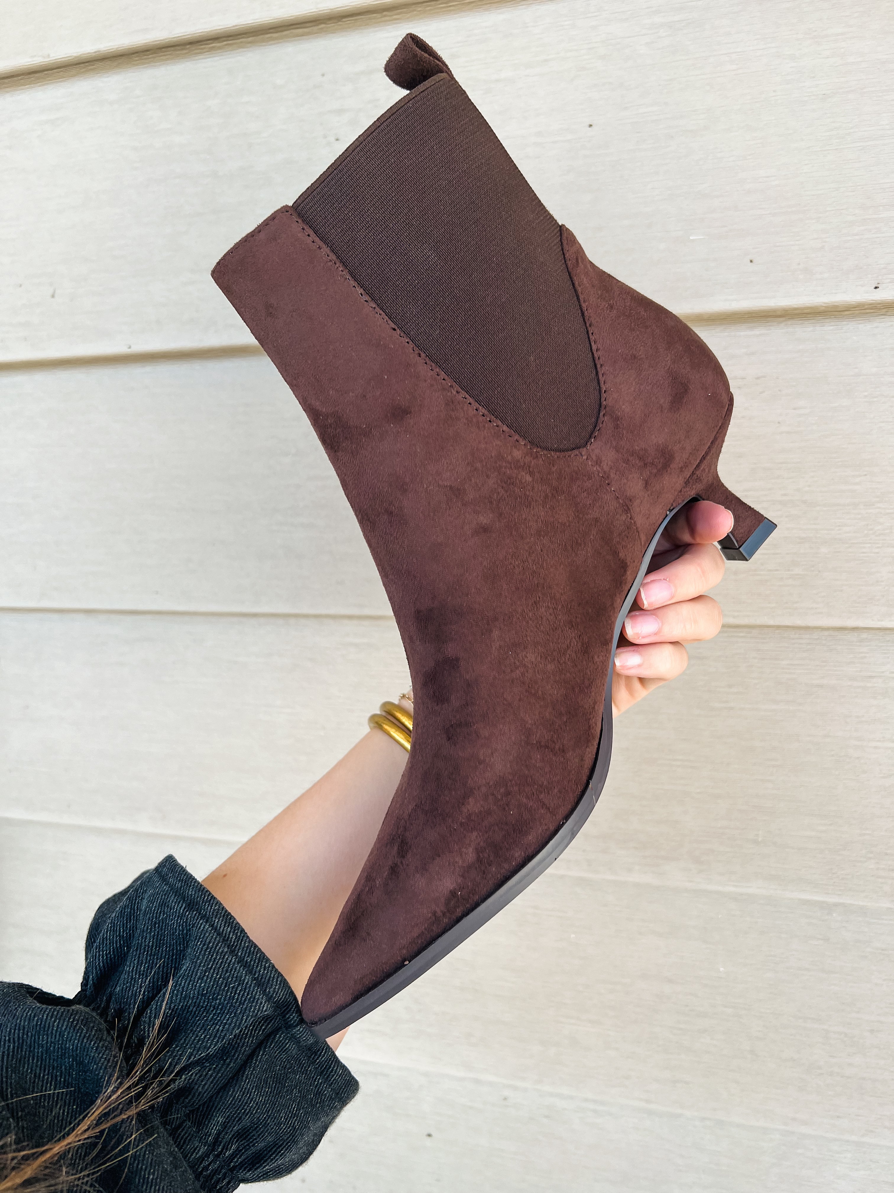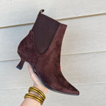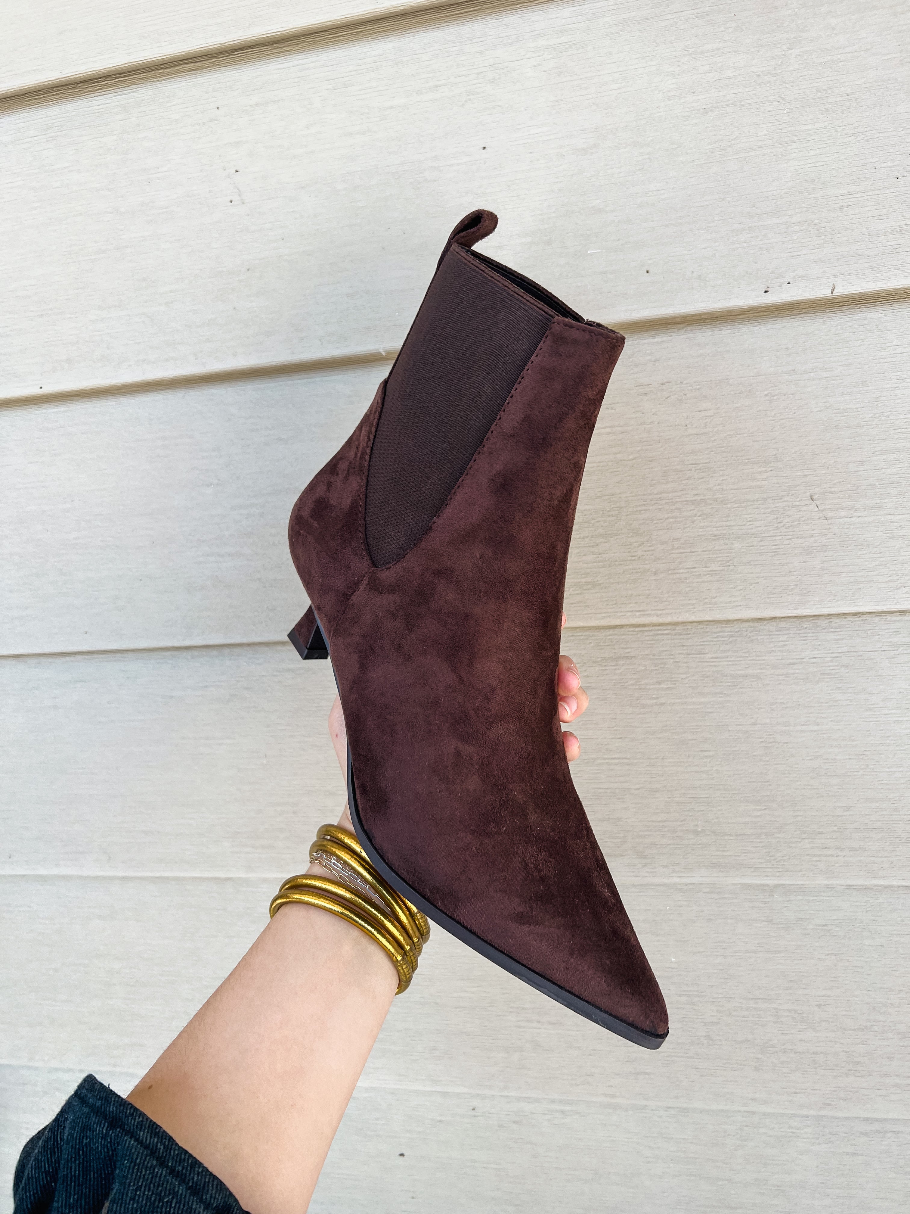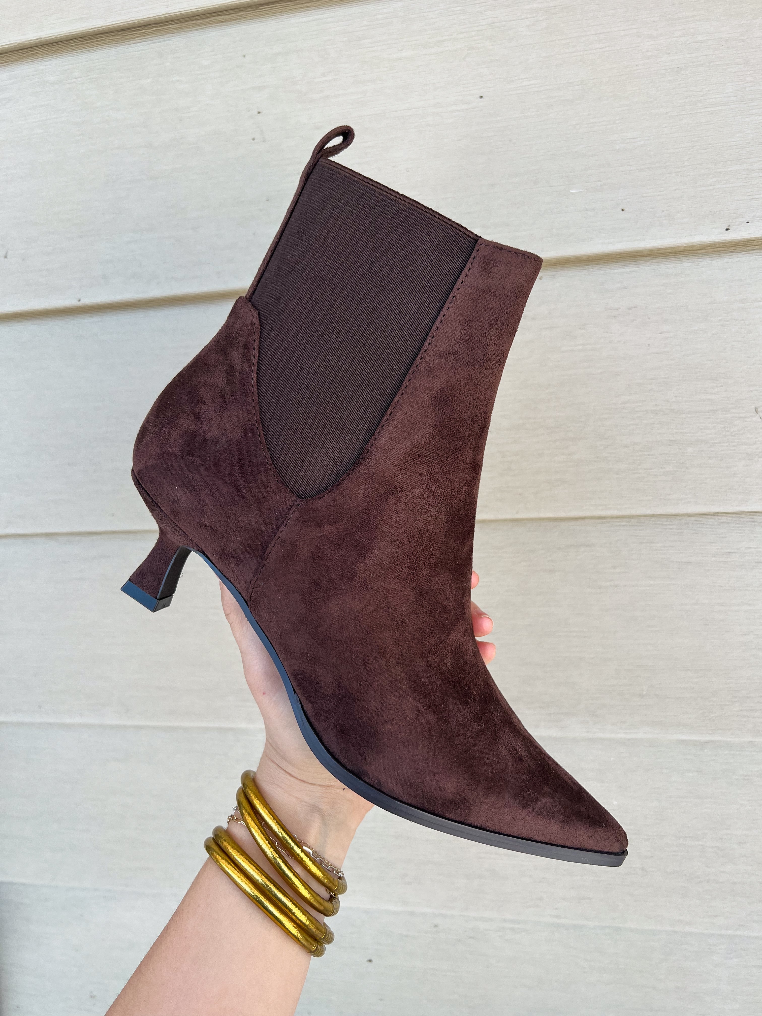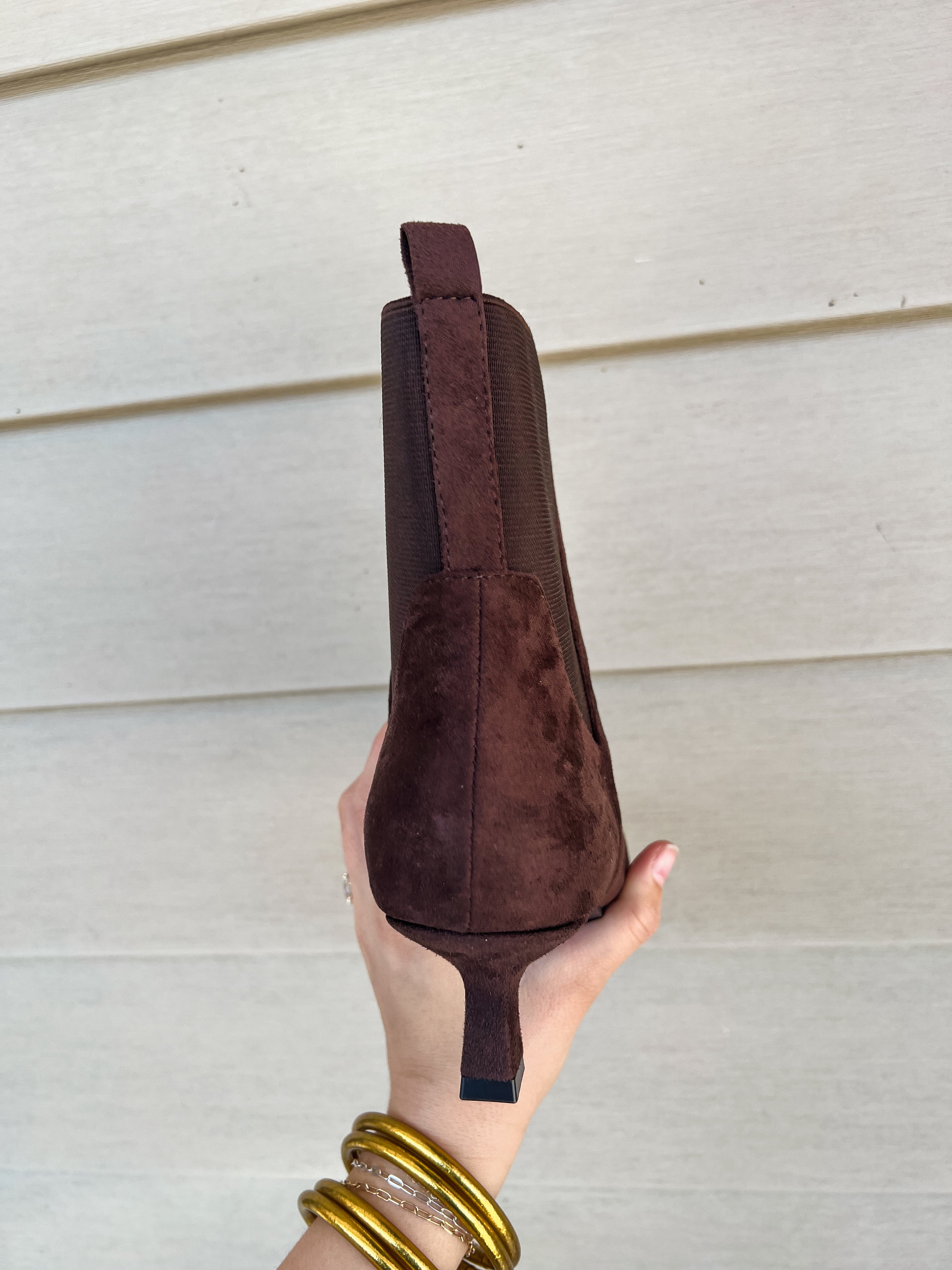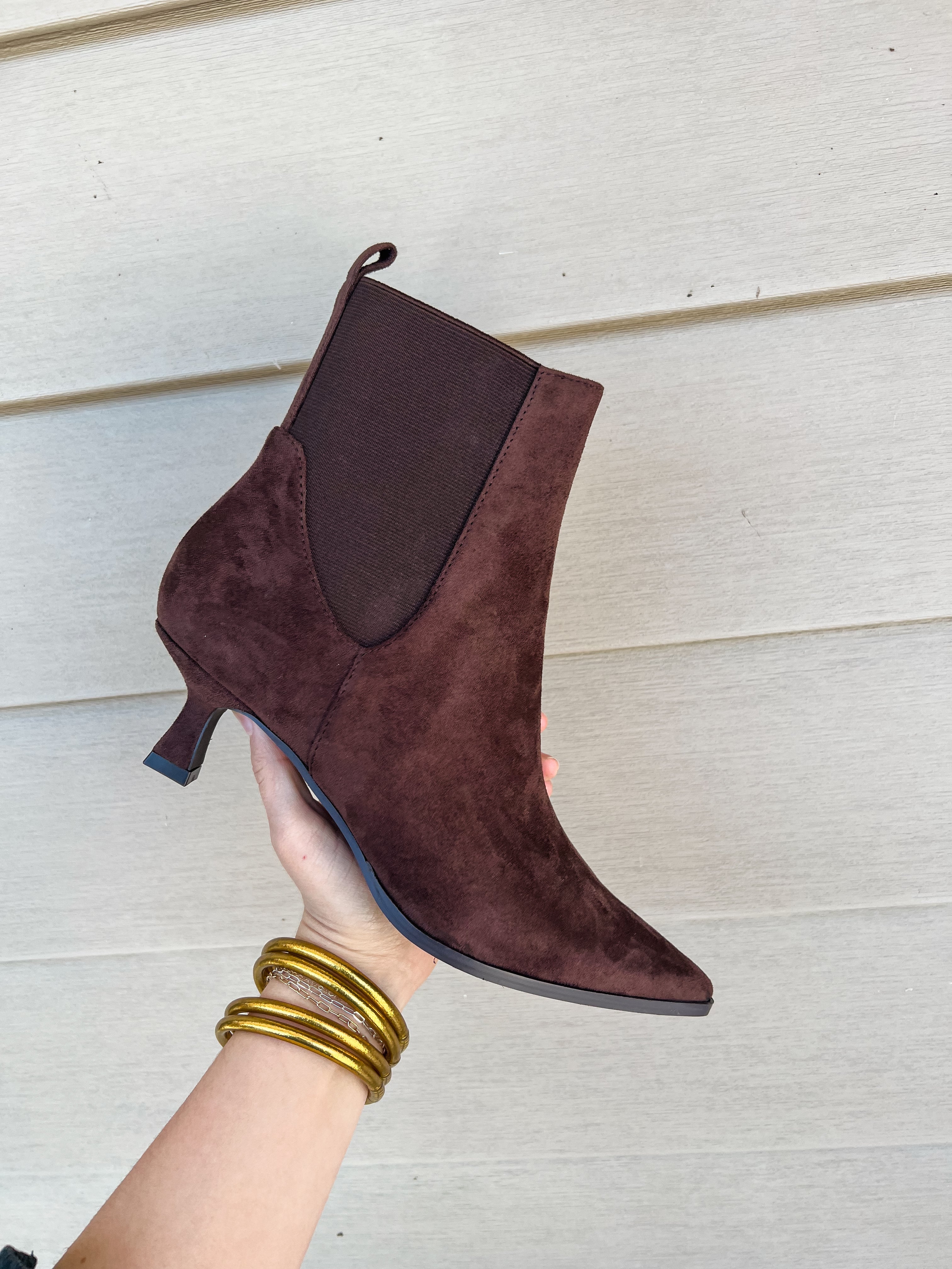 Novva Pointed Toe Kitten Heel Boot- Suedette Brown