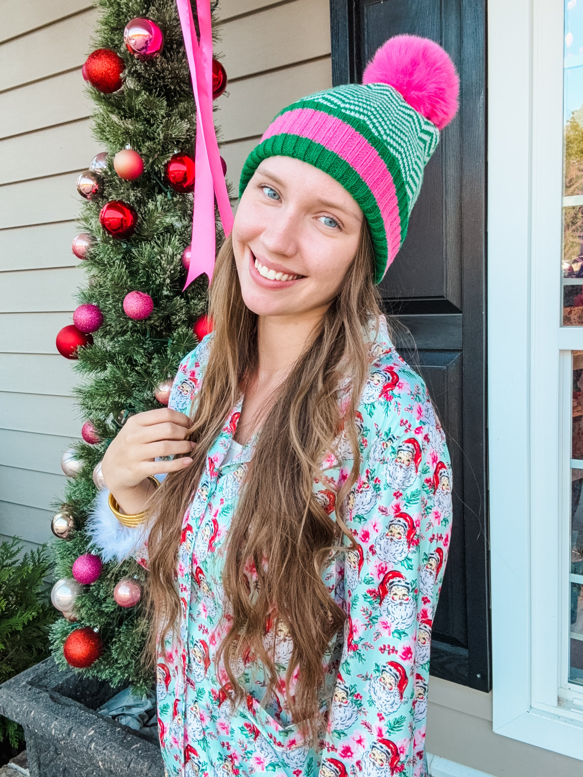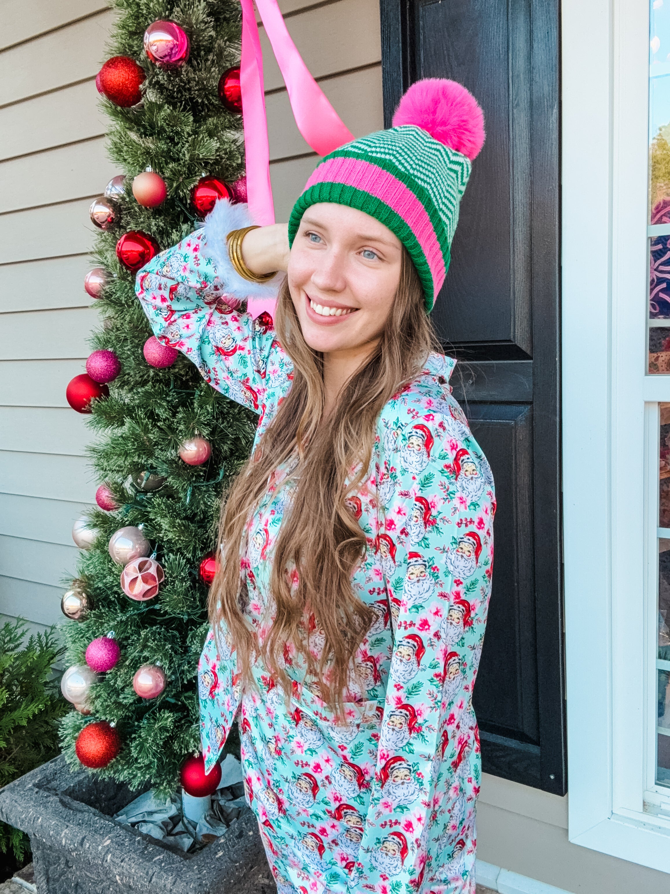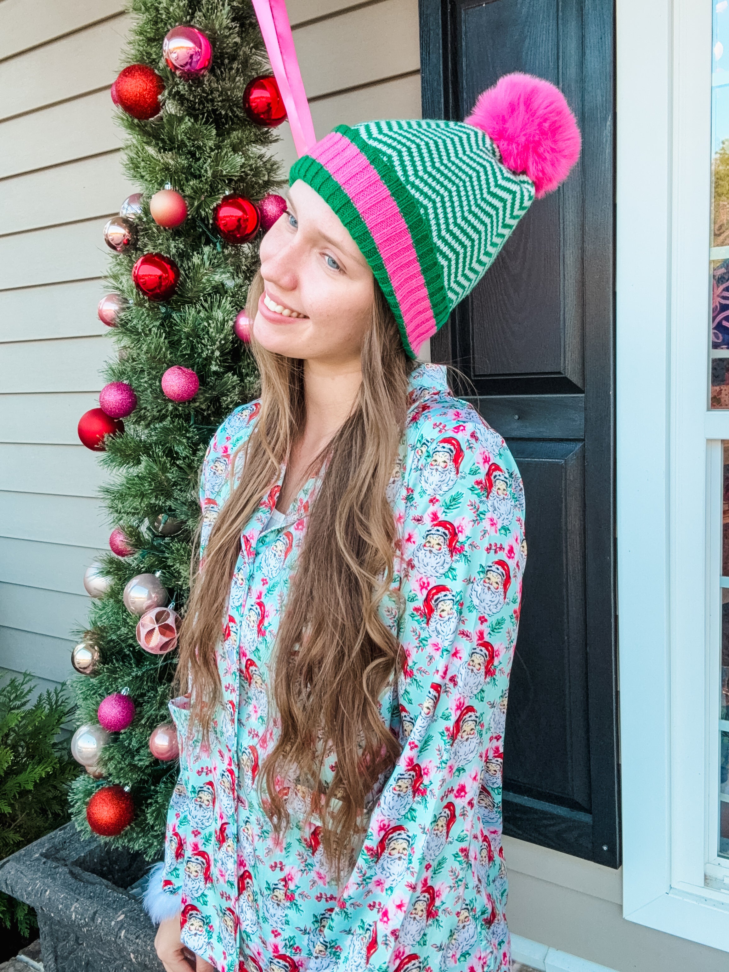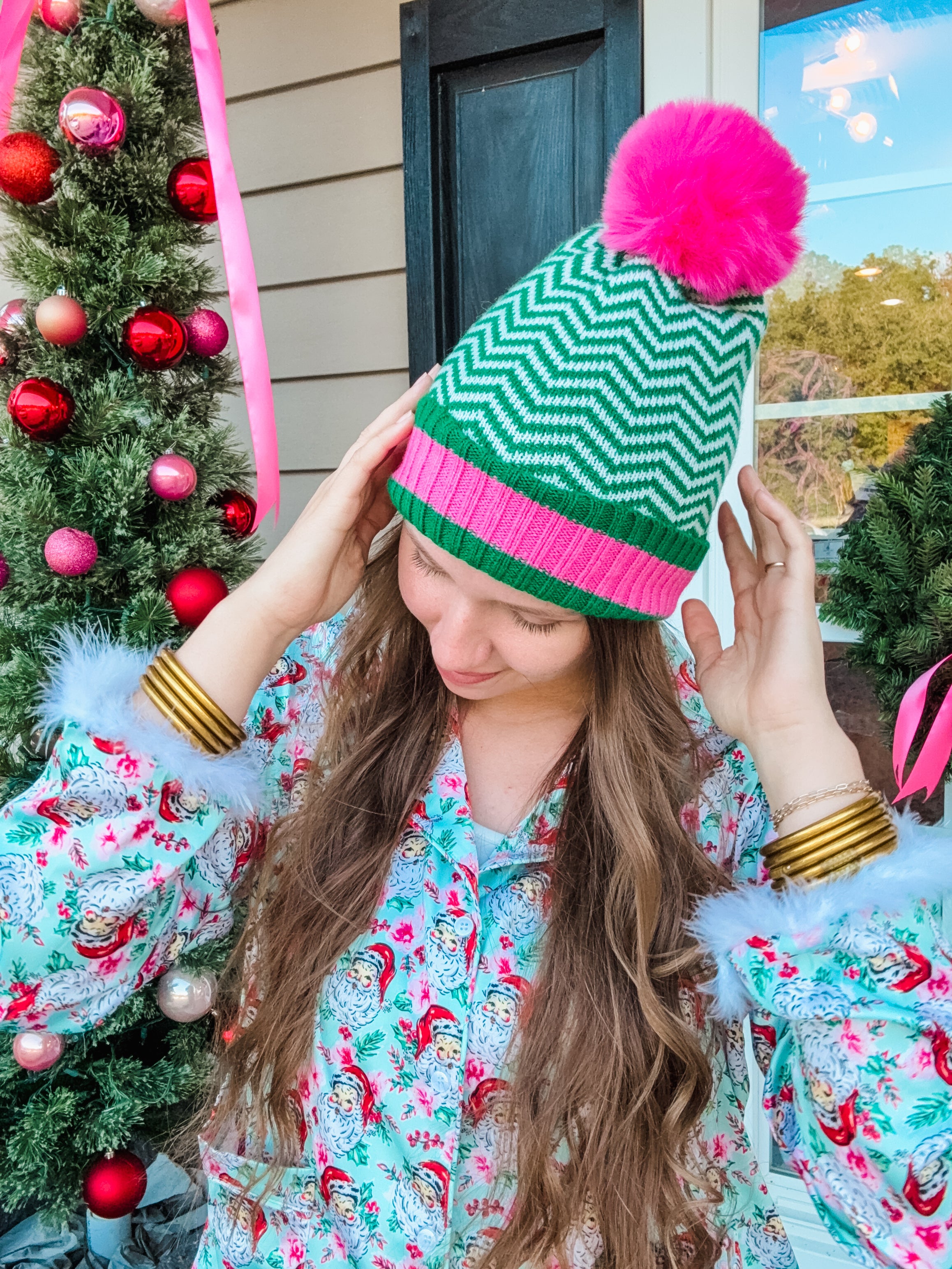 Add a unique blend of color and pattern to your neutral winter outfits with Shiraleah’s Olivia Beanie. Made from a warm wool blend, this trendy pink and green hat is the perfect combination of comfort and style. The green body of the hat features a fun white zig-zag pattern with a thick pink stripe by the hem and a bright pink top pom detail. Pair with the matching Olivia Scarf and Olivia Touchscreen Gloves or with other items from Shiraleah’s collection to complete your cold weather look!
