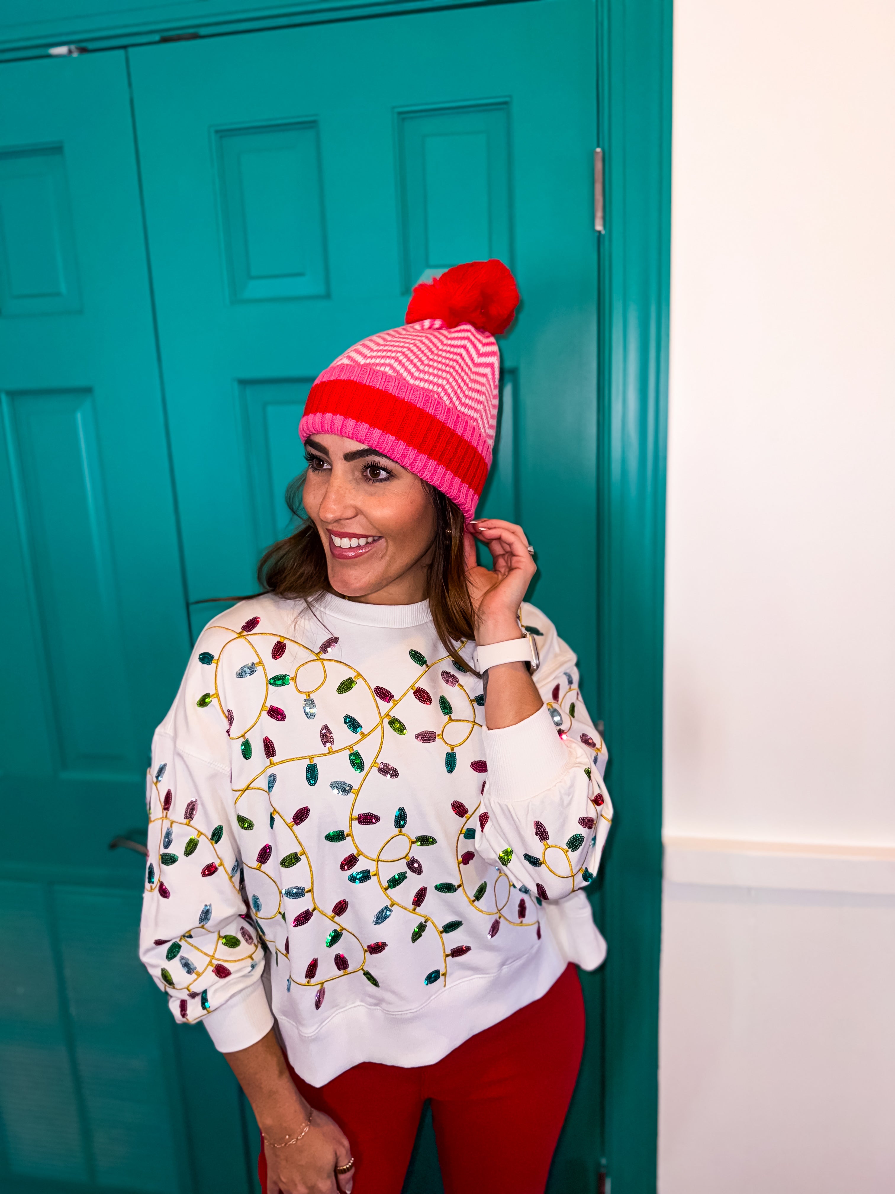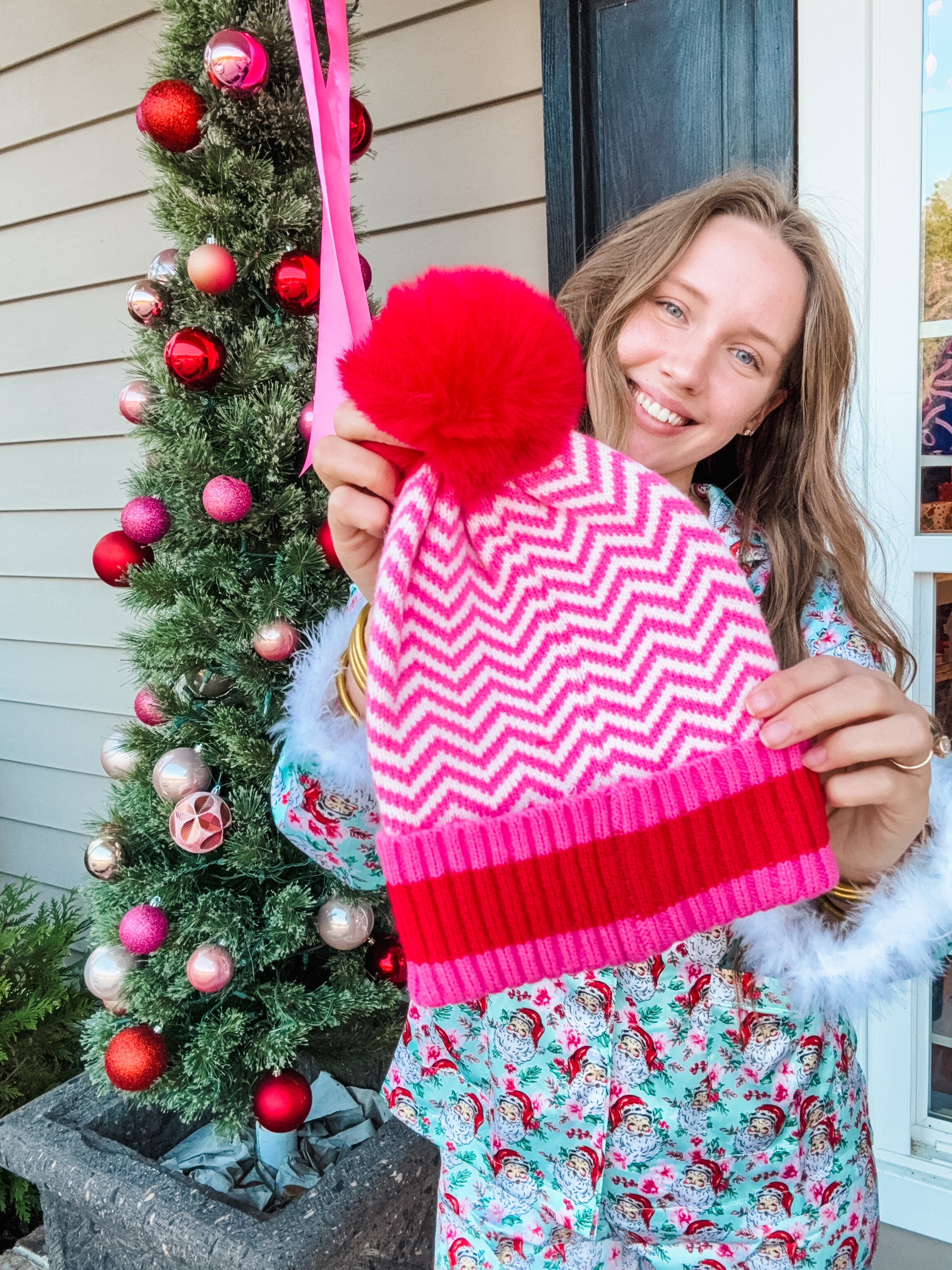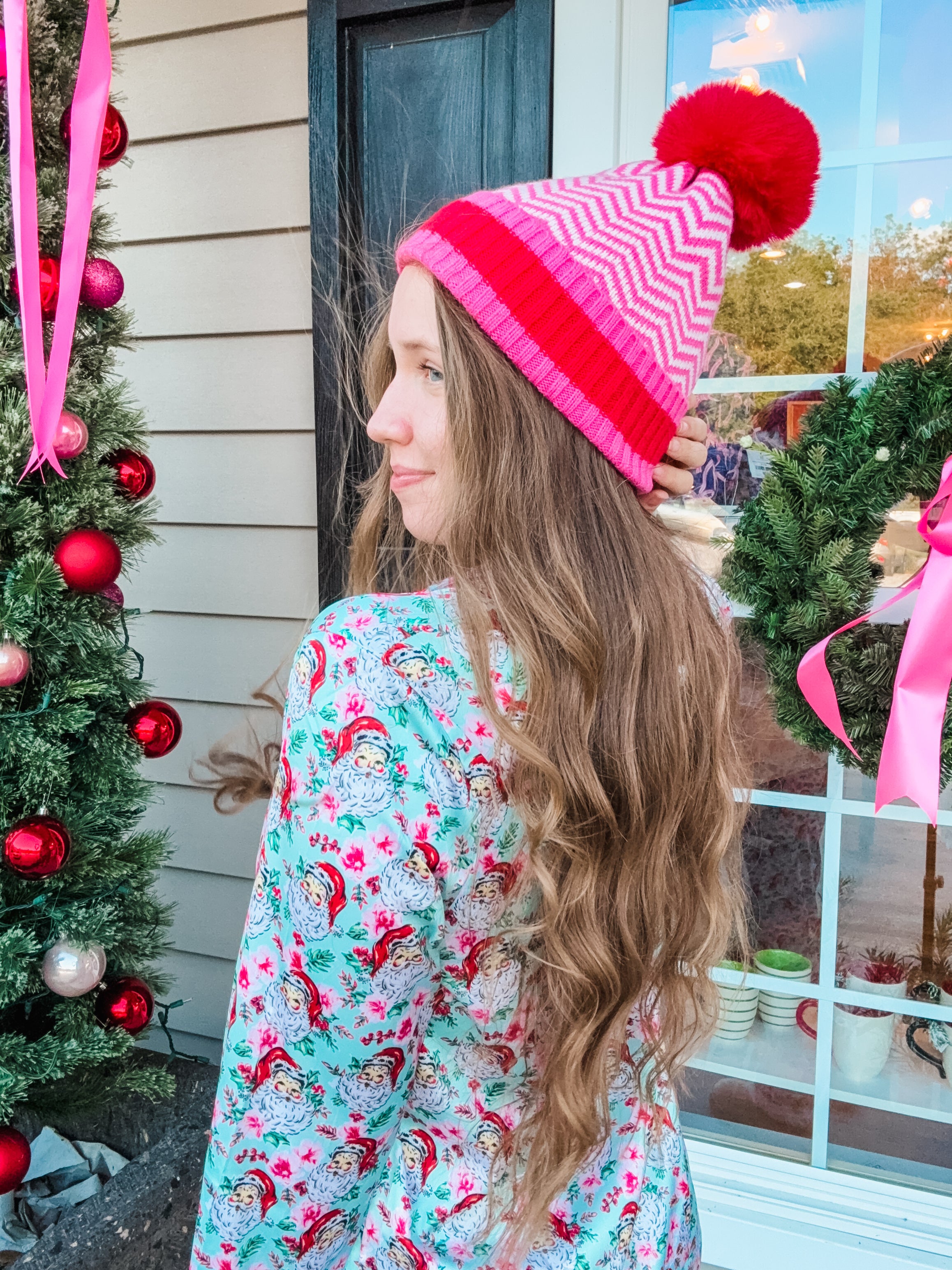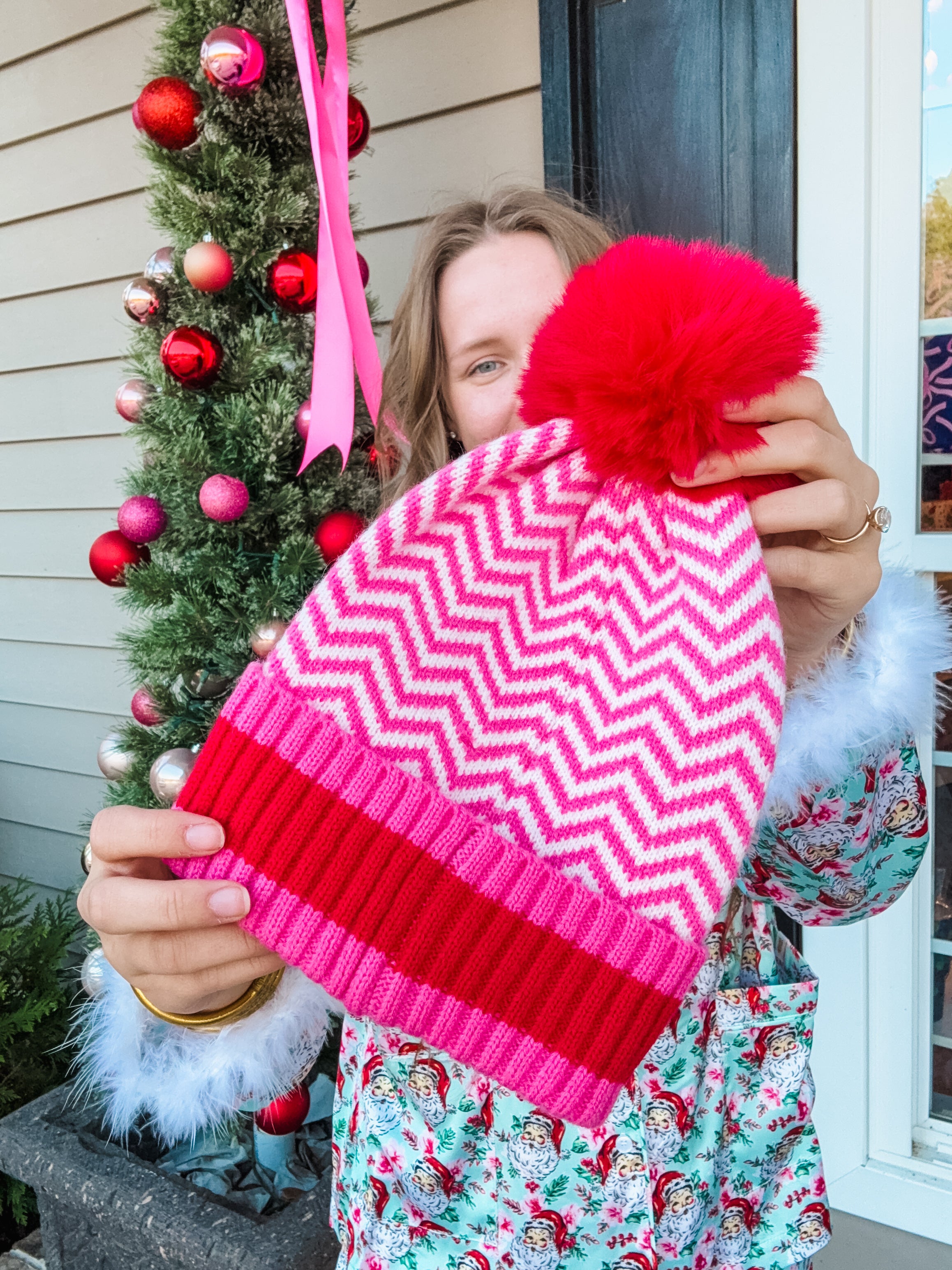 Add a unique blend of color and pattern to your neutral winter outfits with Shiraleah’s Olivia Beanie. Made from a warm wool blend, this trendy pink and red hat is the perfect combination of comfort and style. The pink body of the hat features a fun white zig-zag pattern with a thick red stripe by the hem and a bright red top pom detail. Pair with the matching Olivia Scarf and Olivia Touchscreen Gloves or with other items from Shiraleah’s collection to complete your cold weather look!