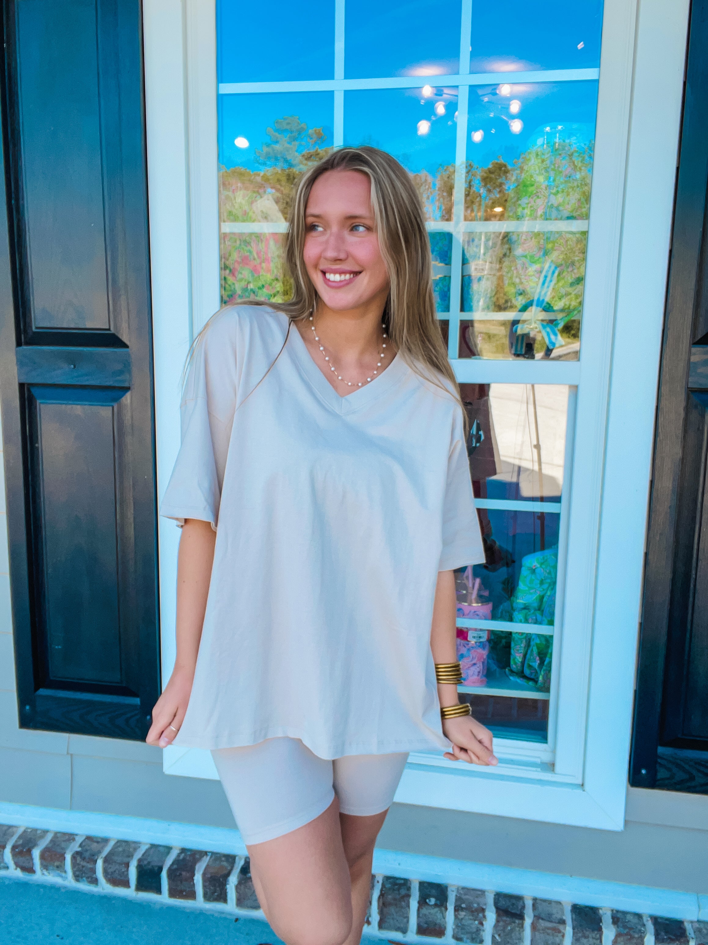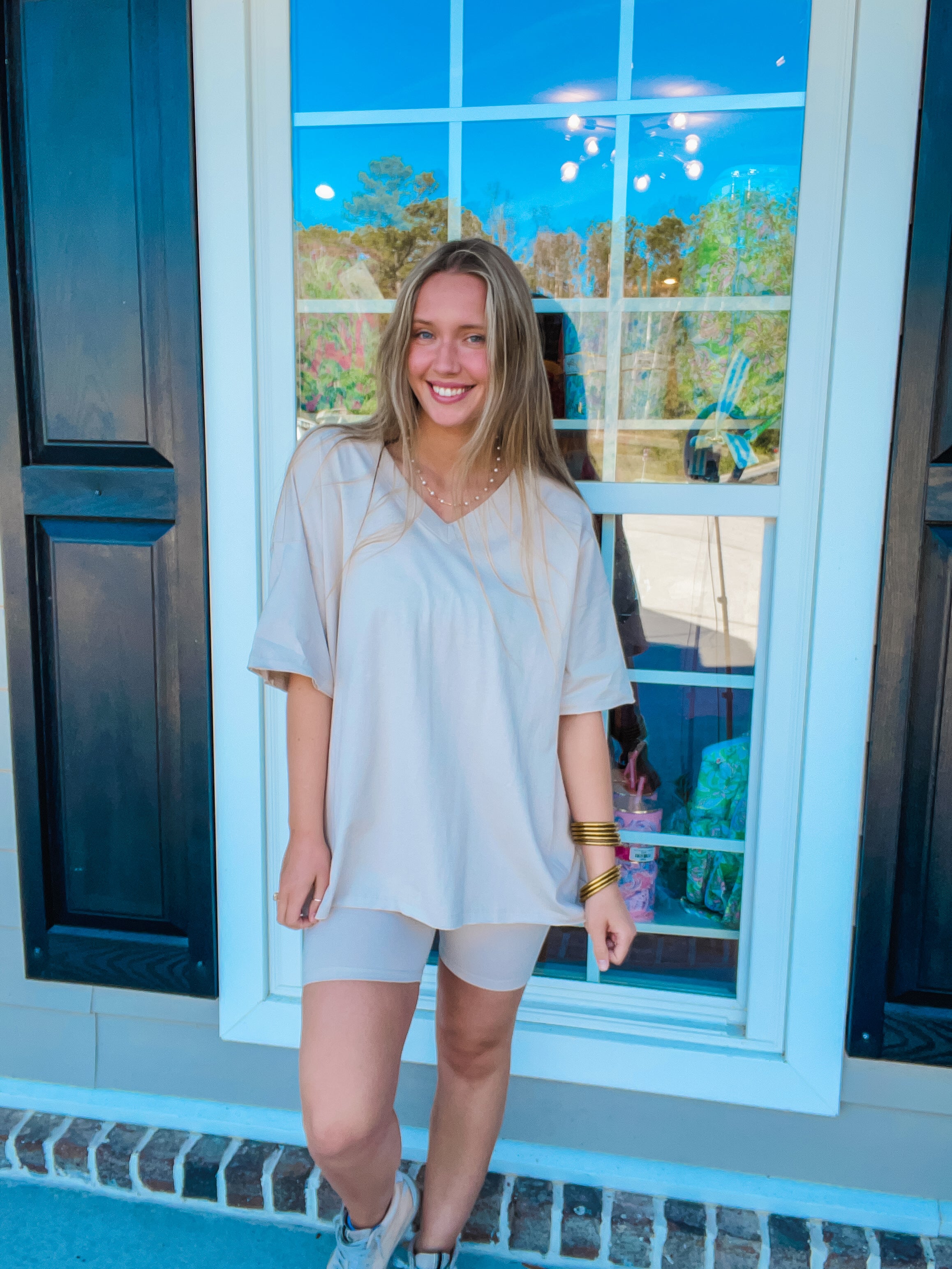 COTTON V-NECK TOP & BIKER SHORTS SET