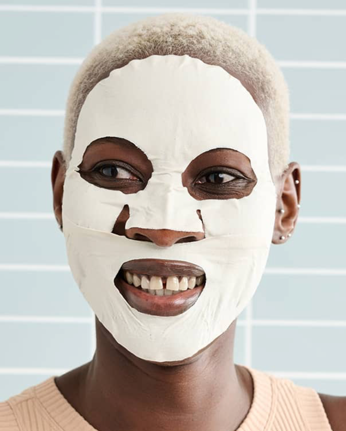 Step 2: Remove the white backing and place this side of the mud mask over your face.
